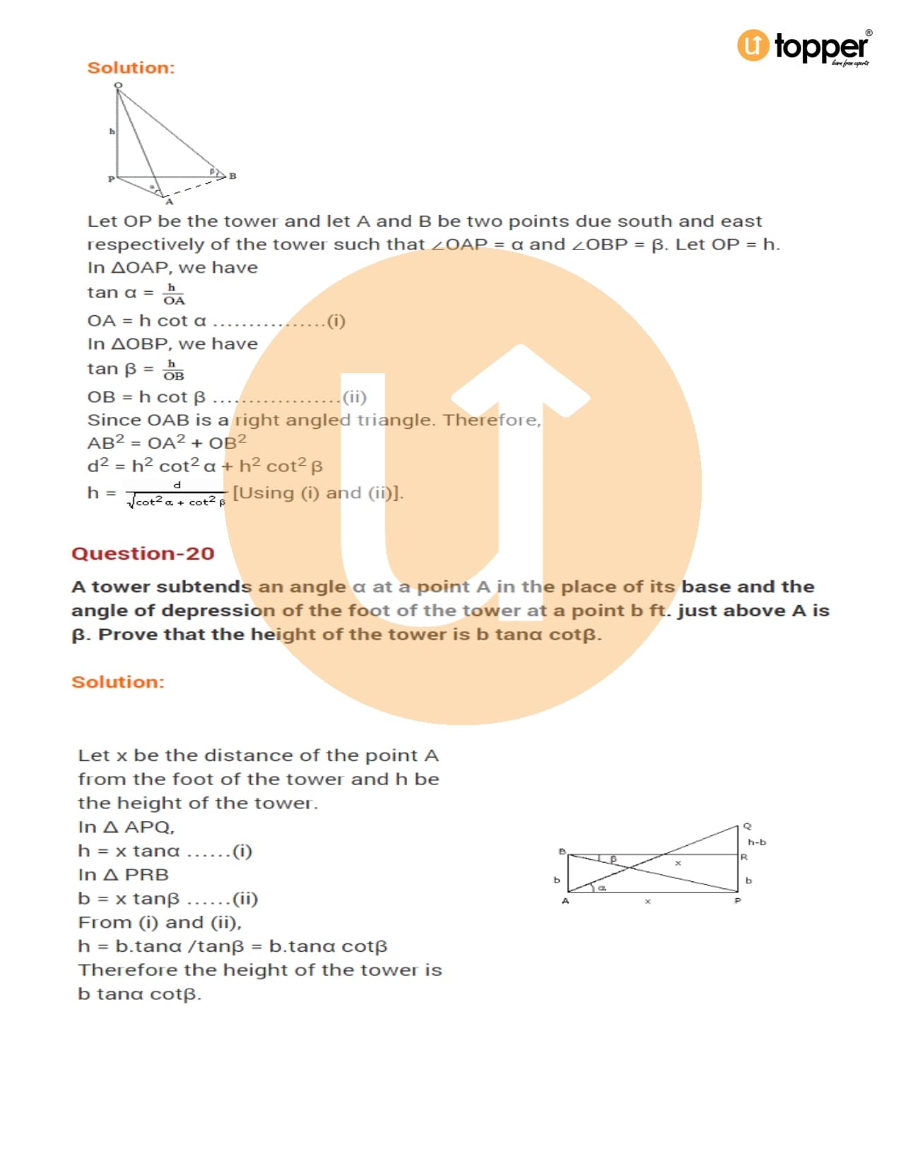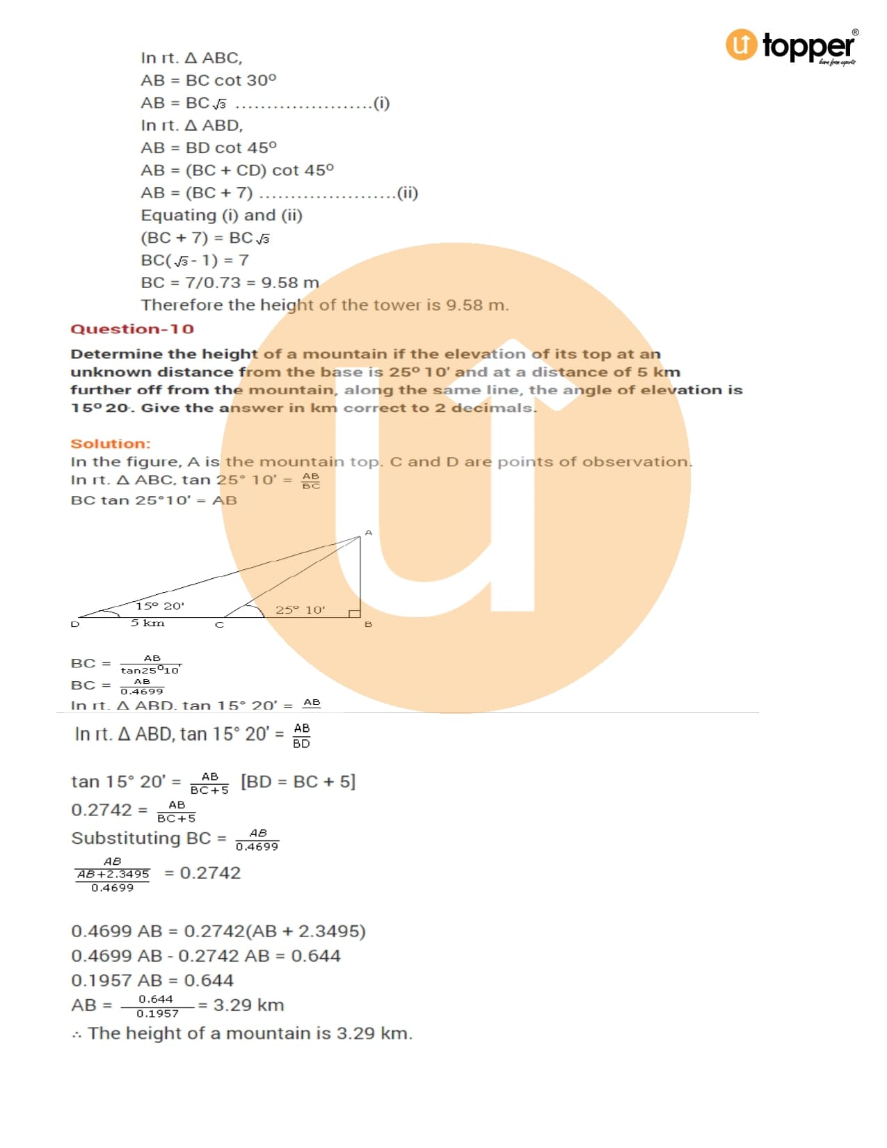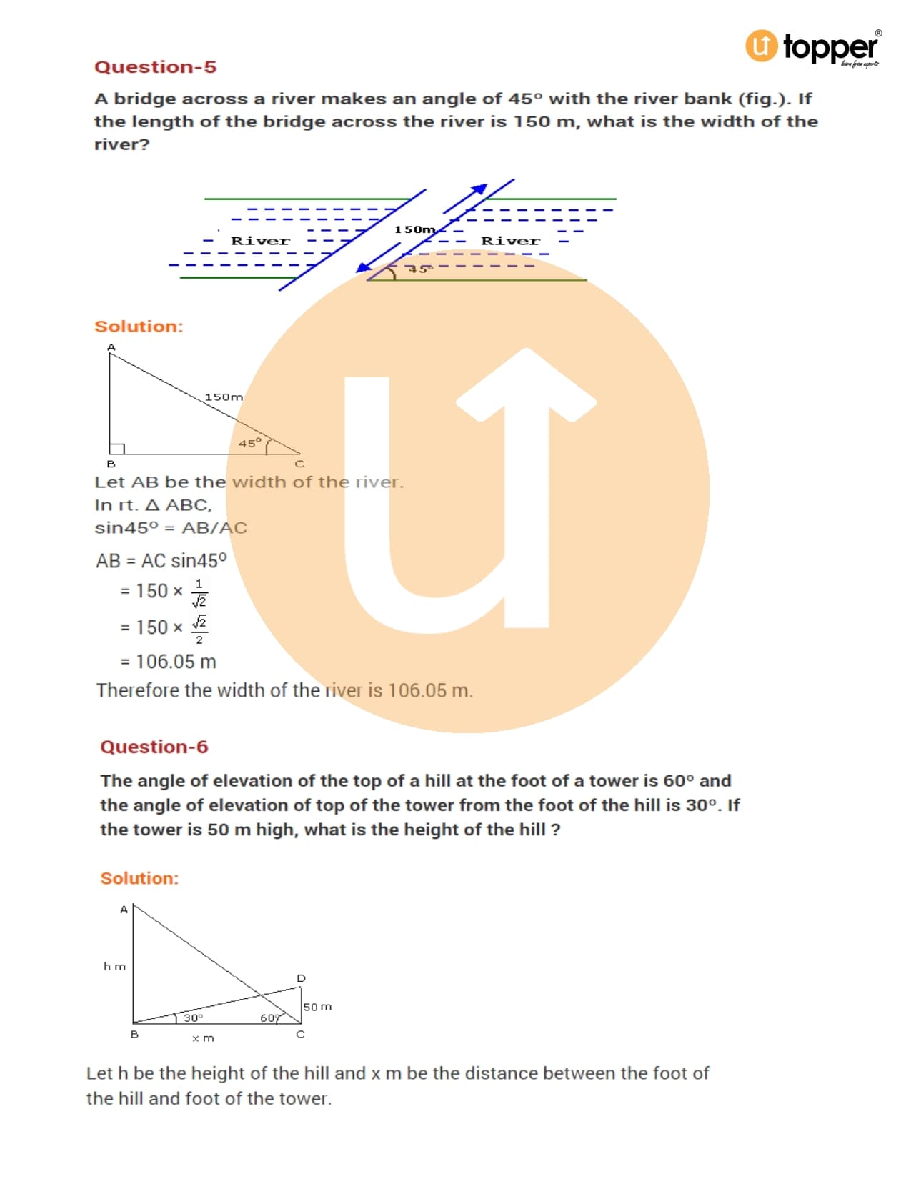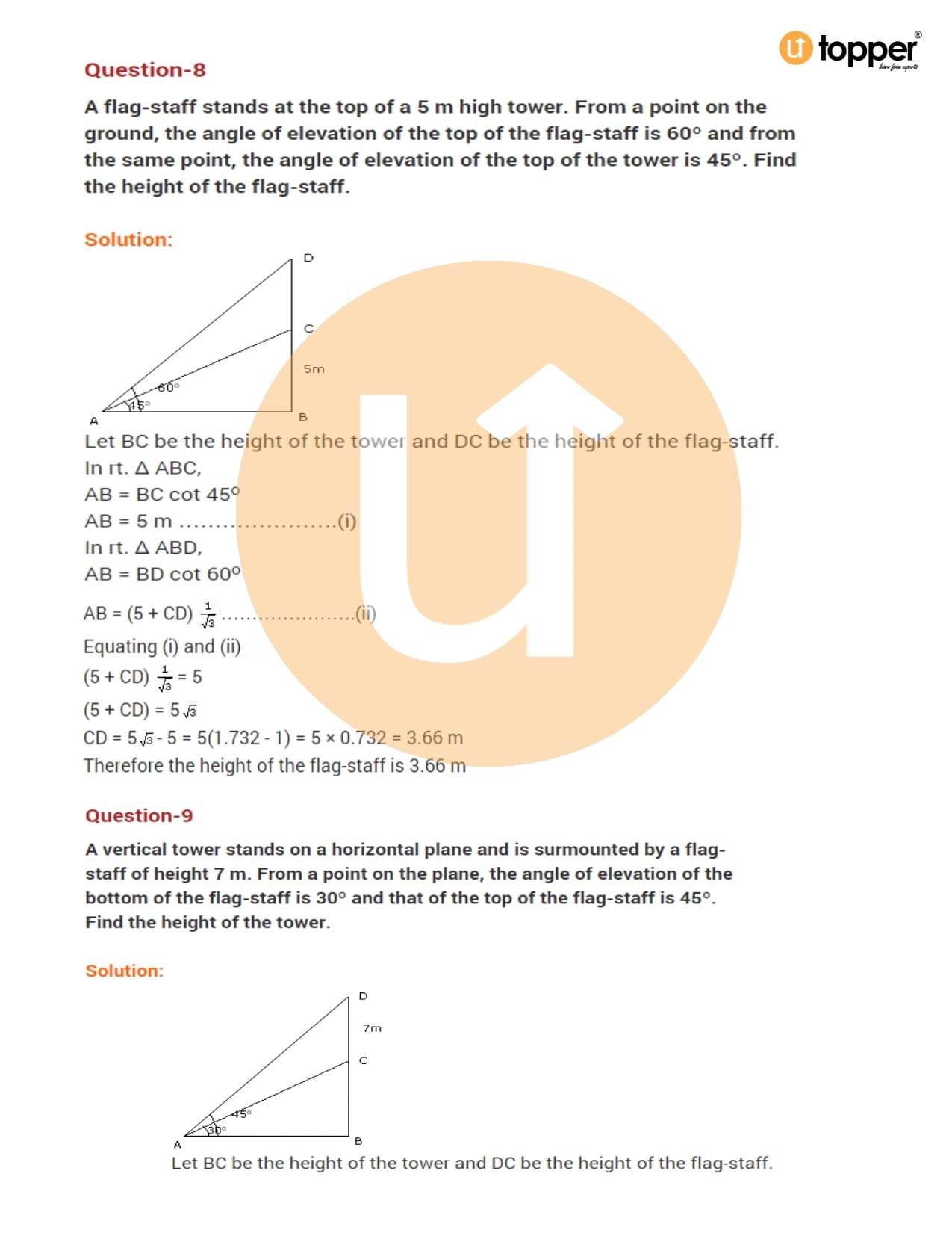 Class 10 Maths Important Question CBSE Chapter 9 – Some Applications of Trigonometry