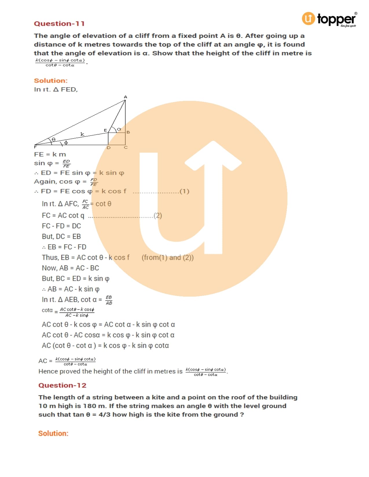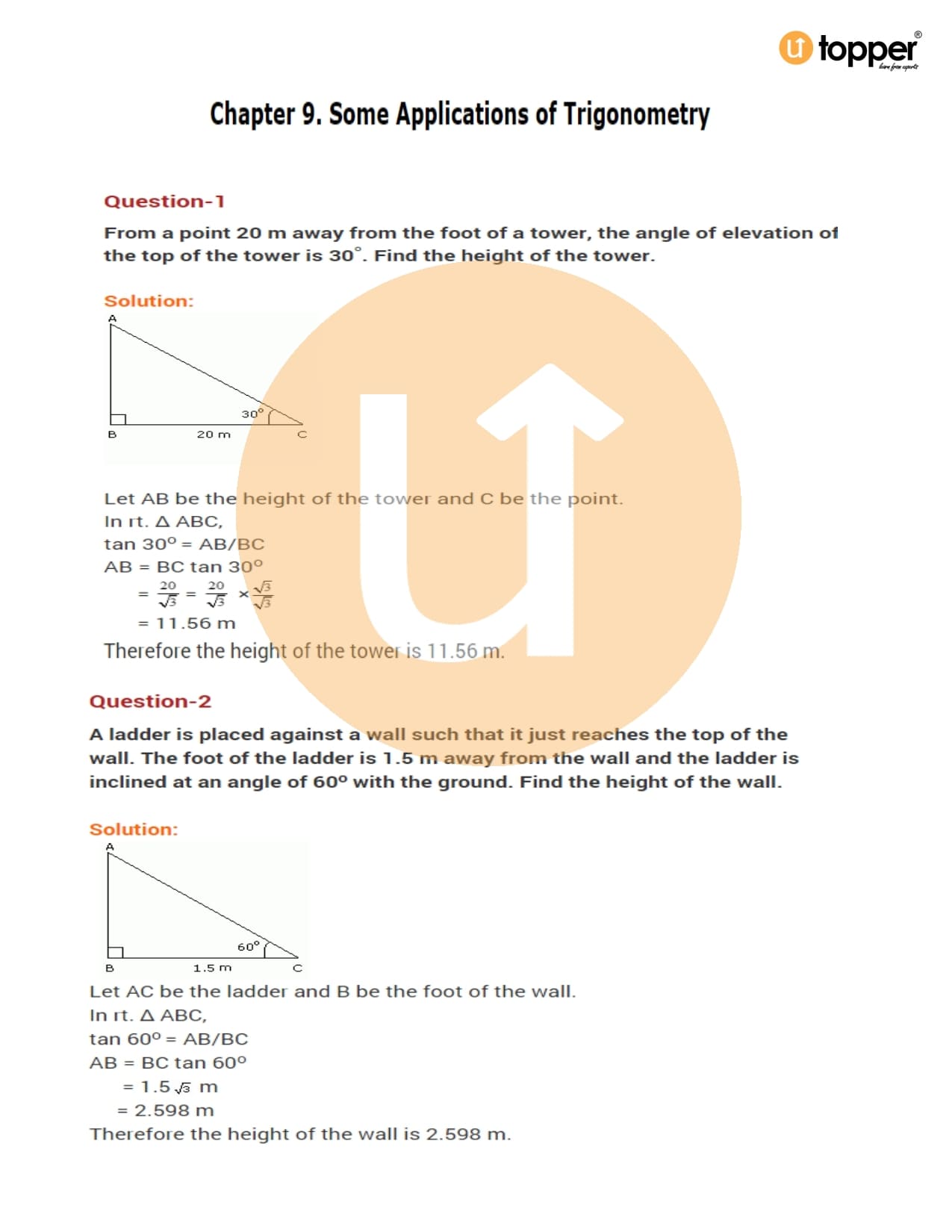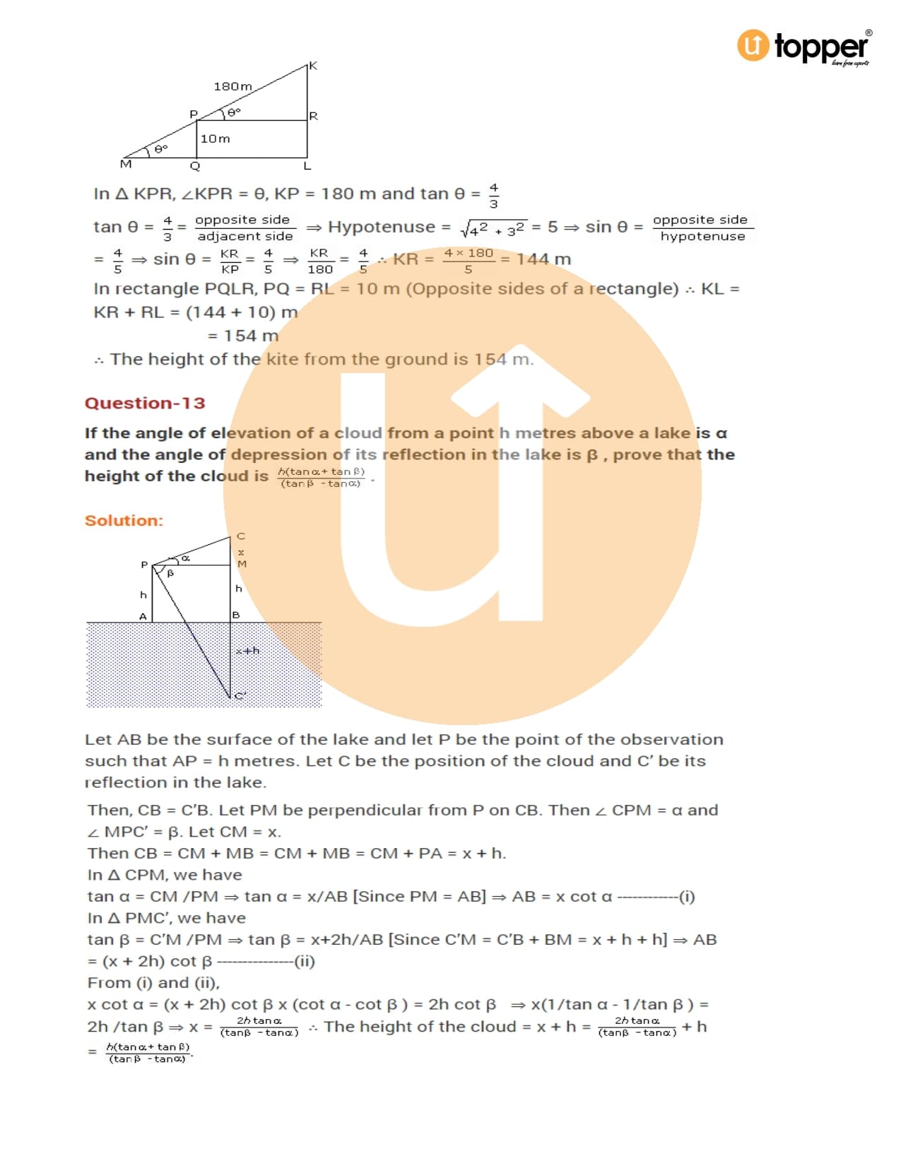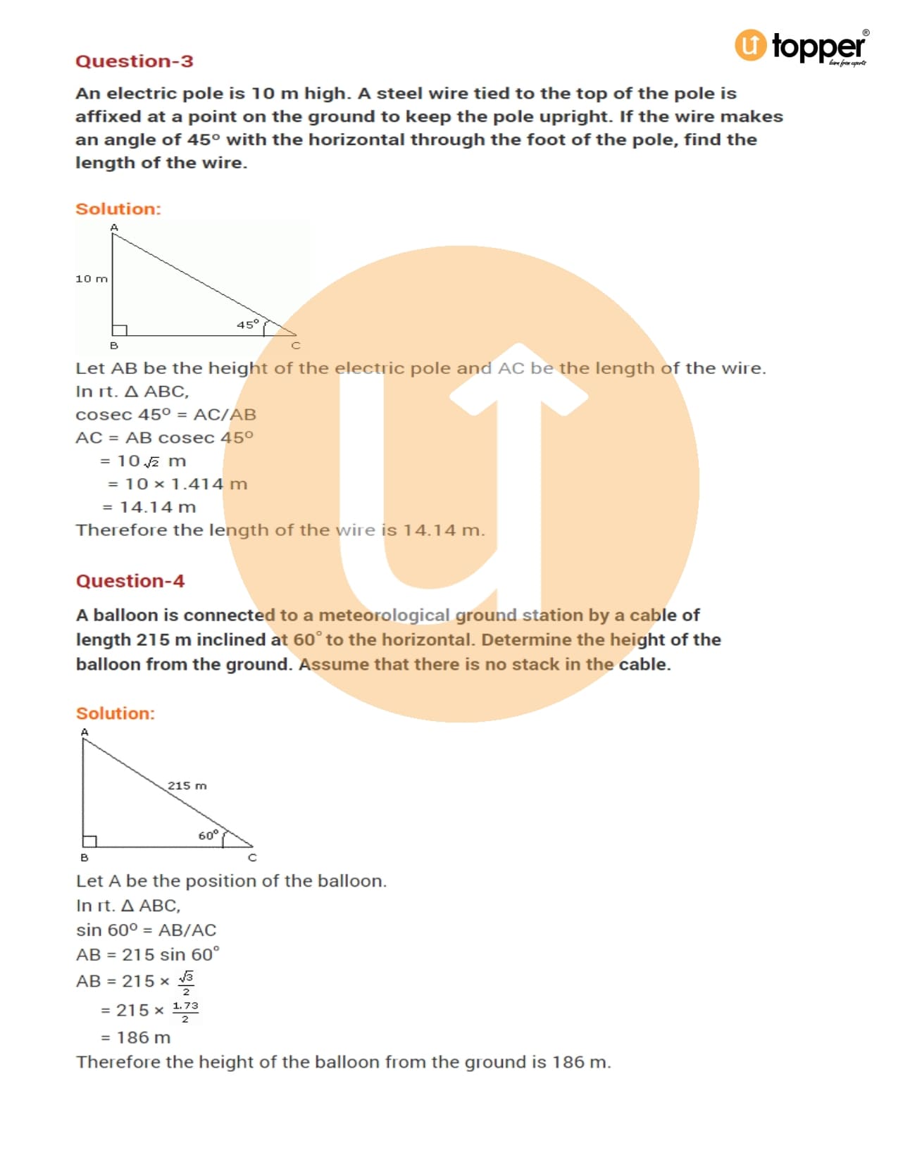 Class 10 Maths Important Question CBSE Chapter 9 – Some Applications of Trigonometry