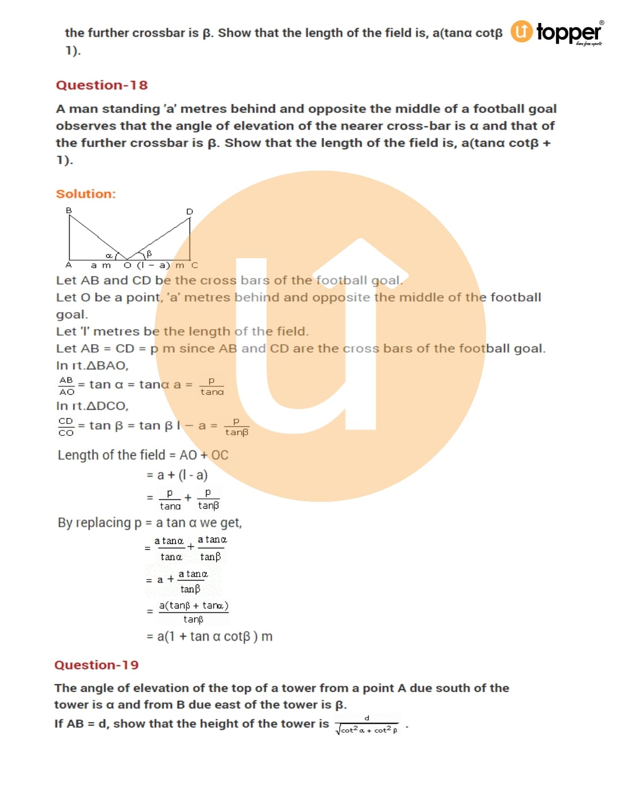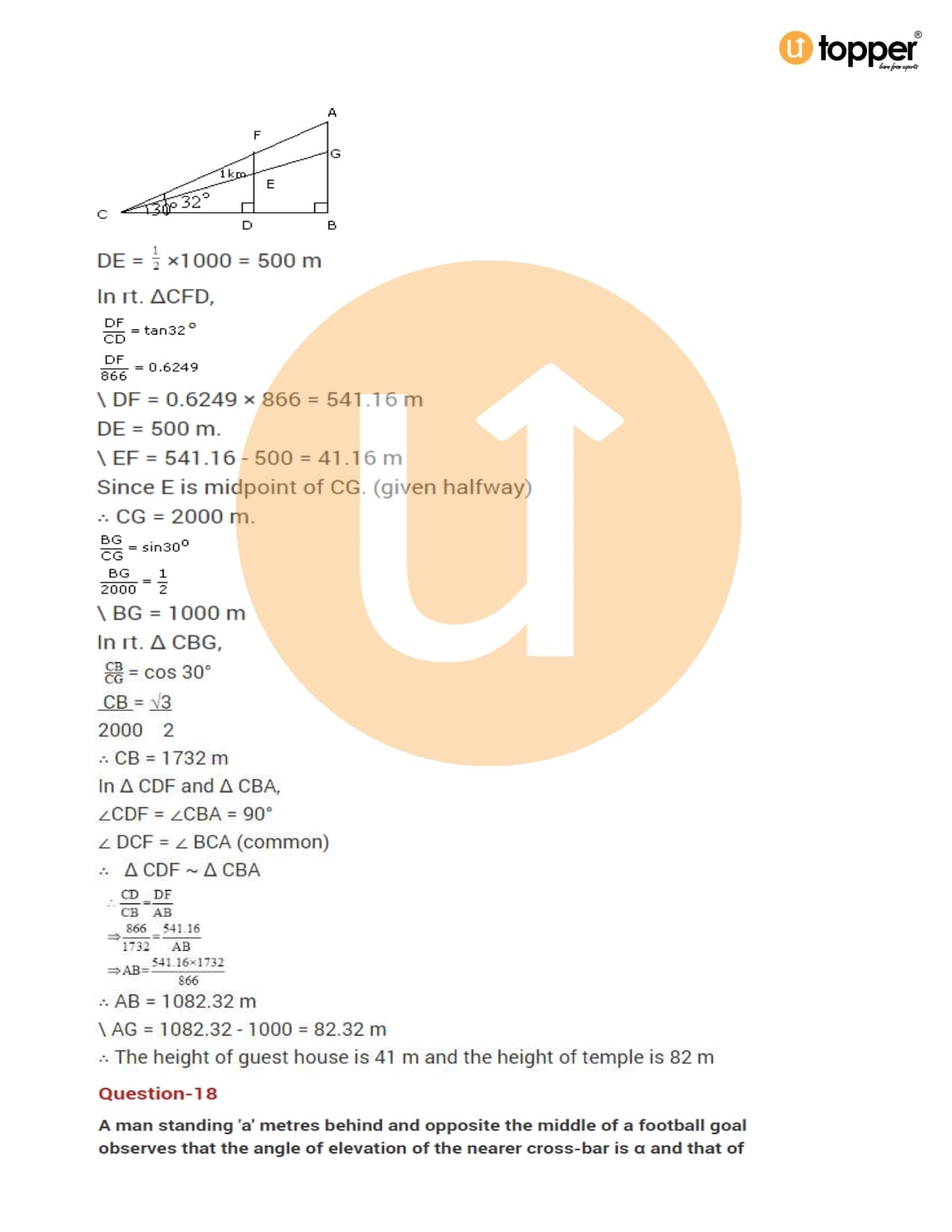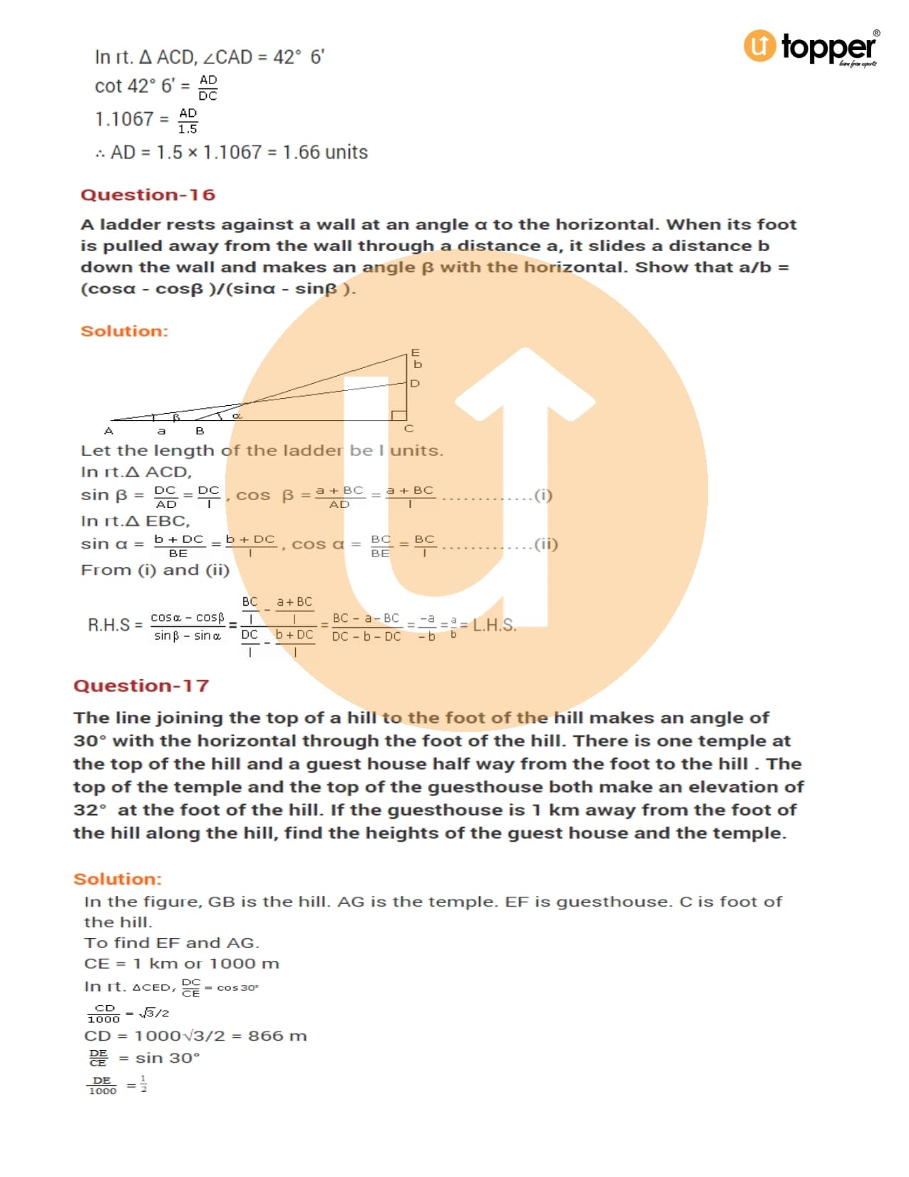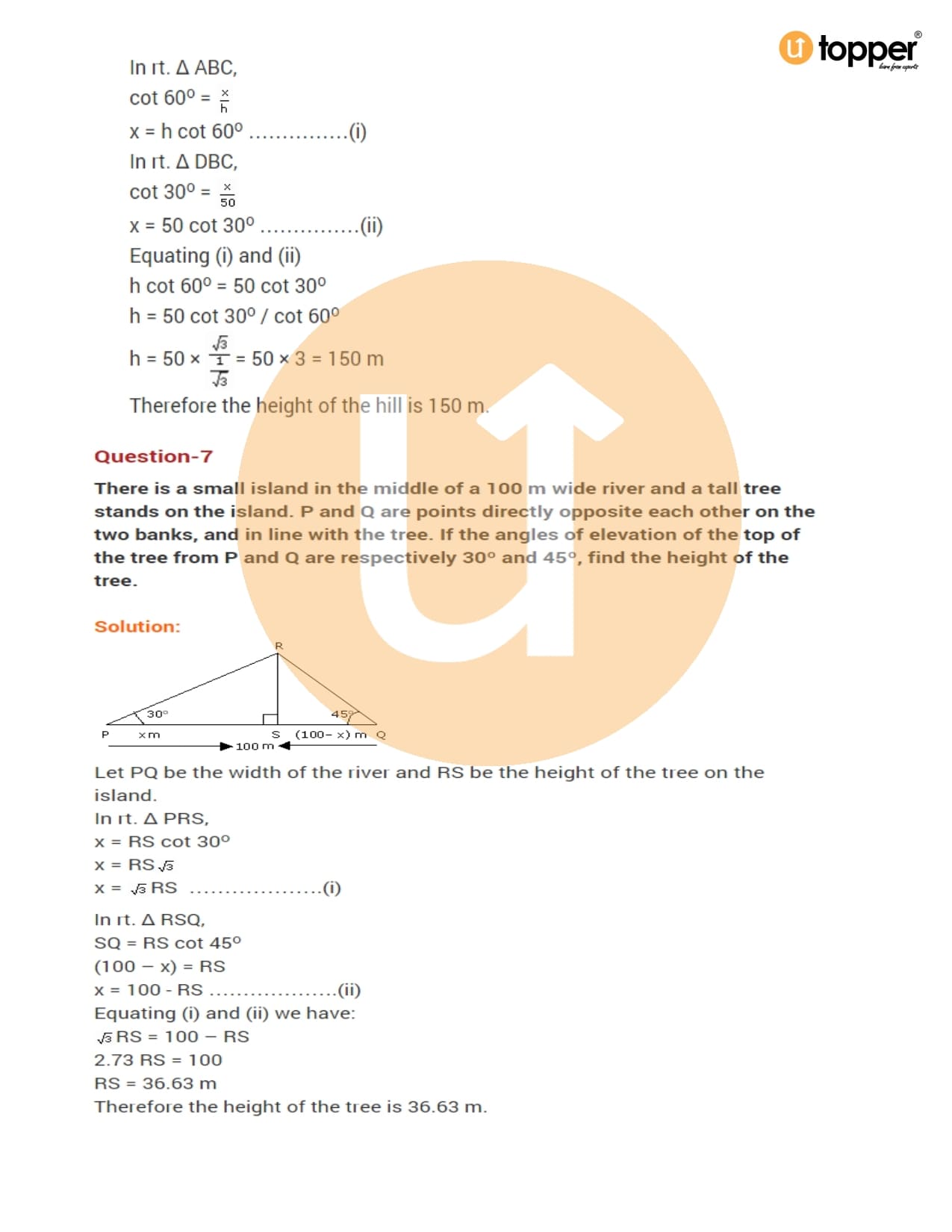 Class 10 Maths Important Question CBSE Chapter 9 – Some Applications of Trigonometry