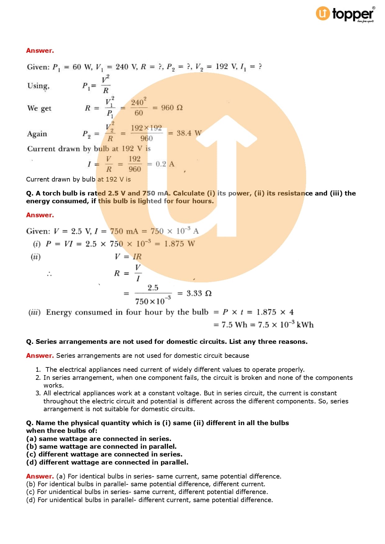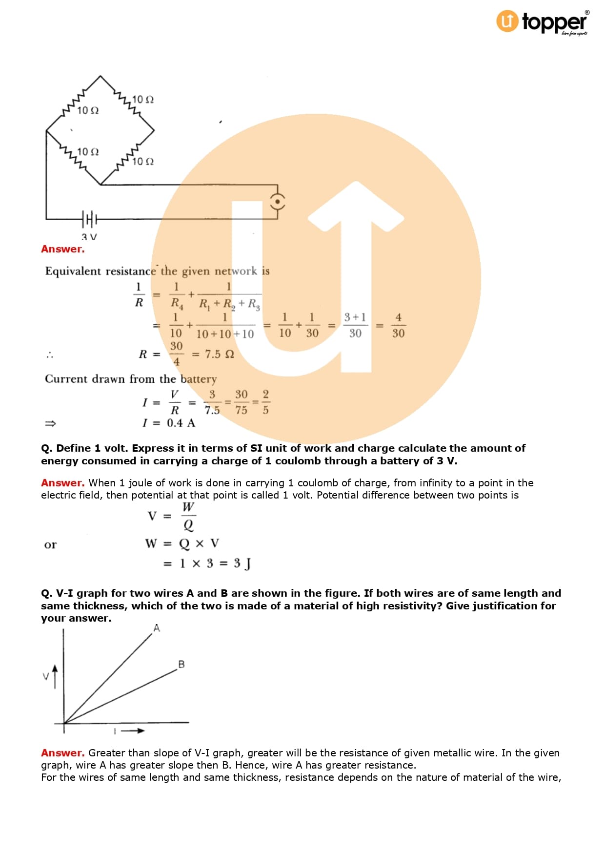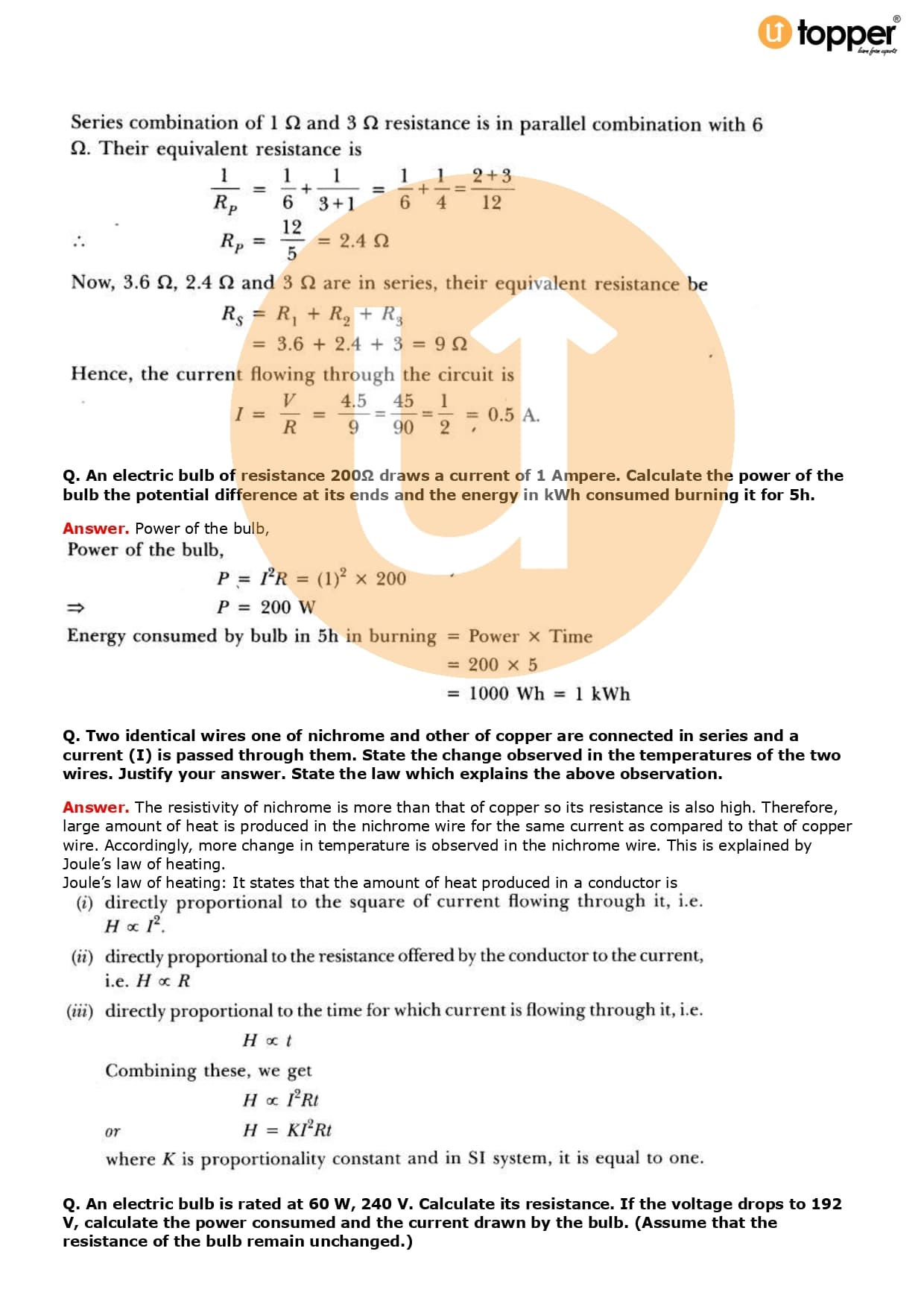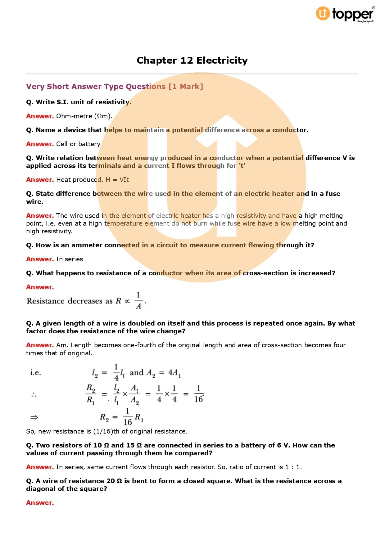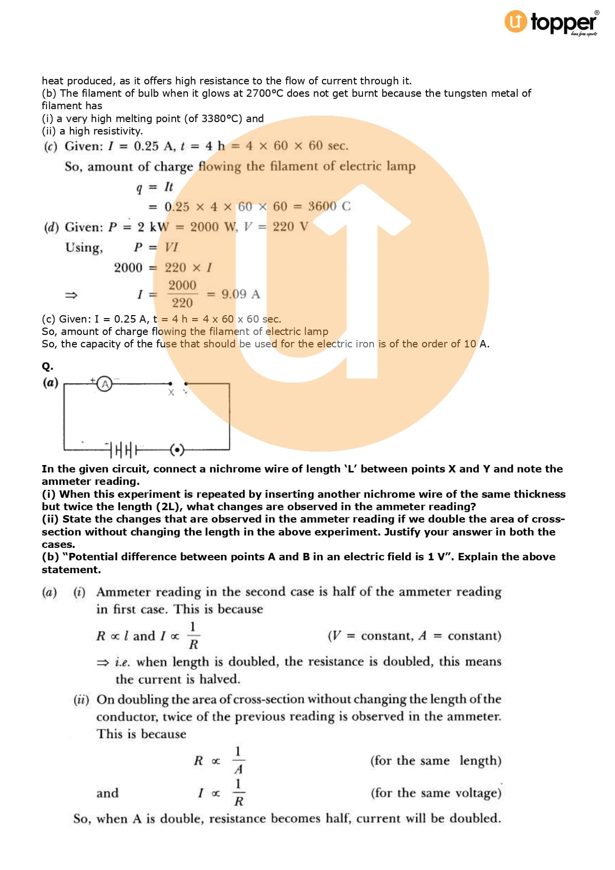 Class 10 Science Important Question CBSE Chapter 12 – Electricity