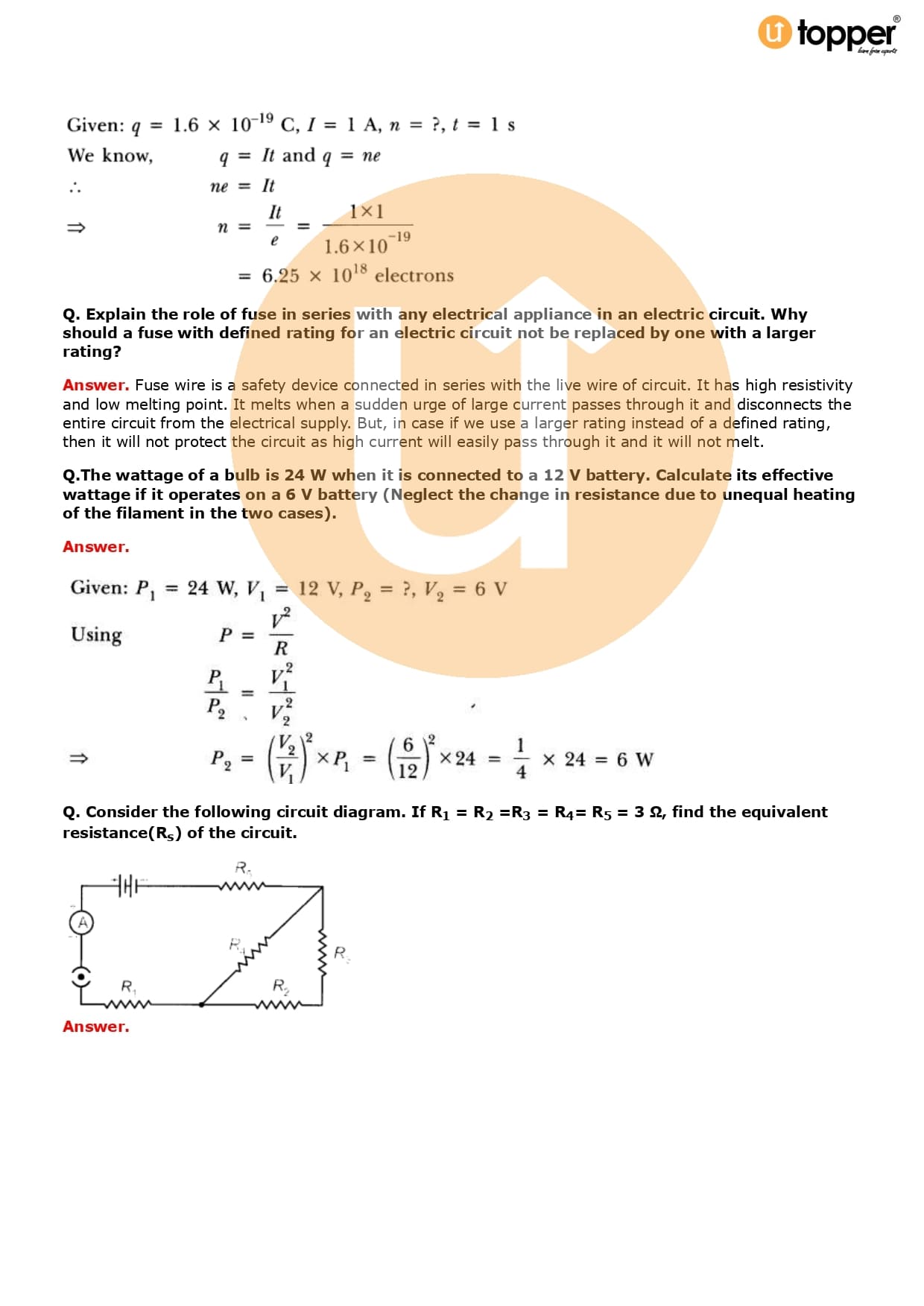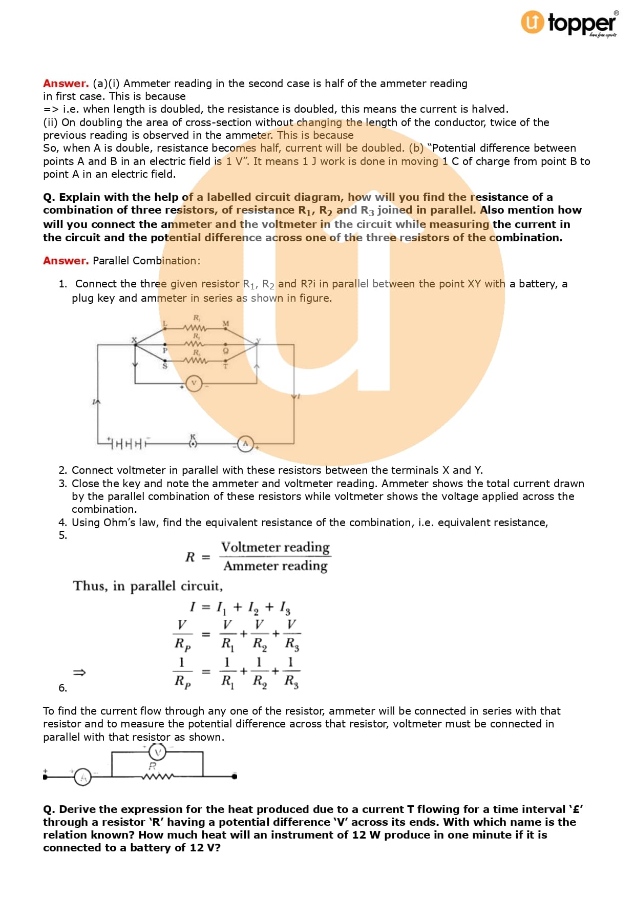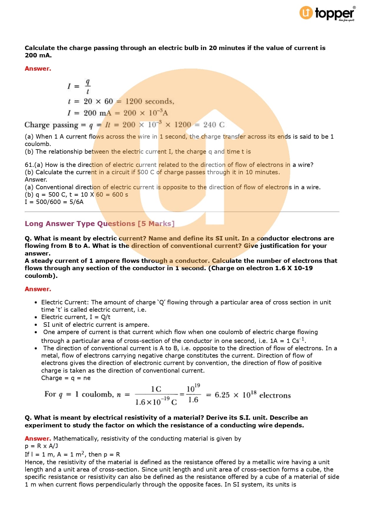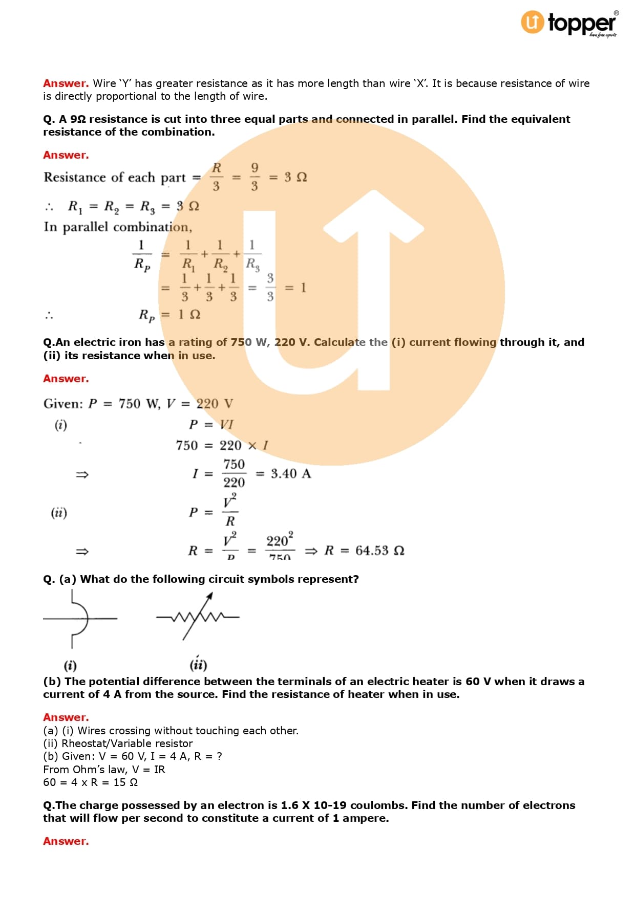 Class 10 Science Important Question CBSE Chapter 12 – Electricity