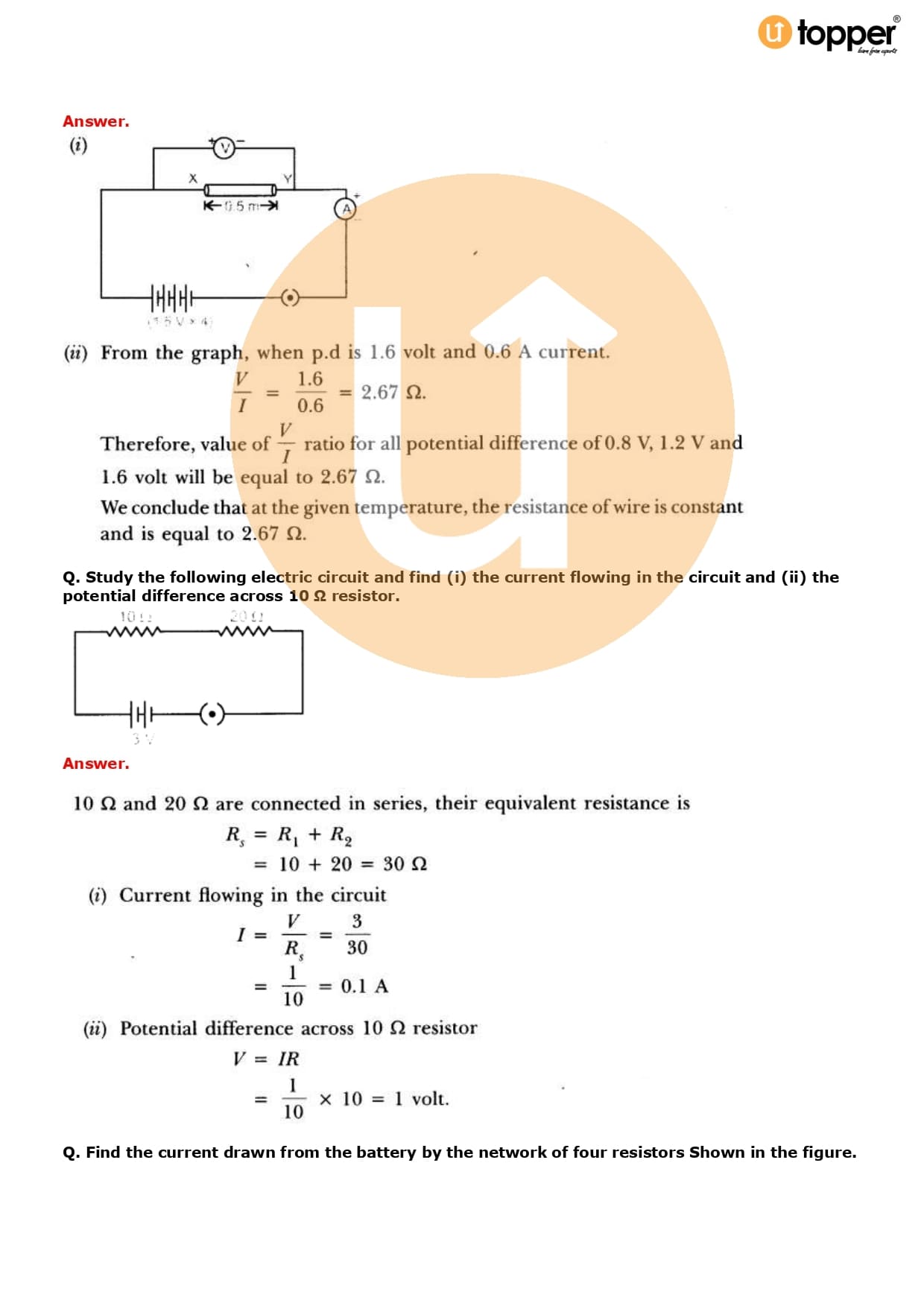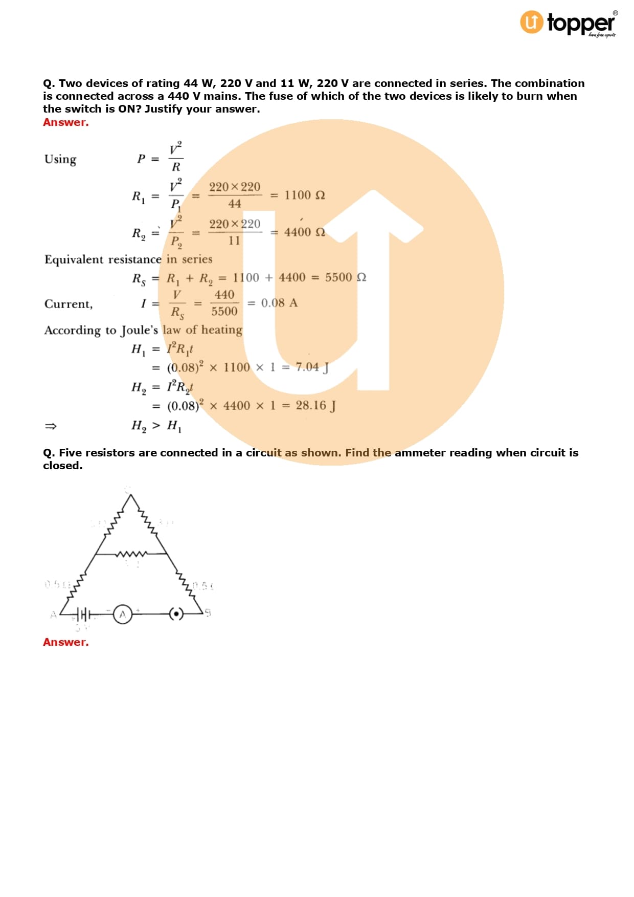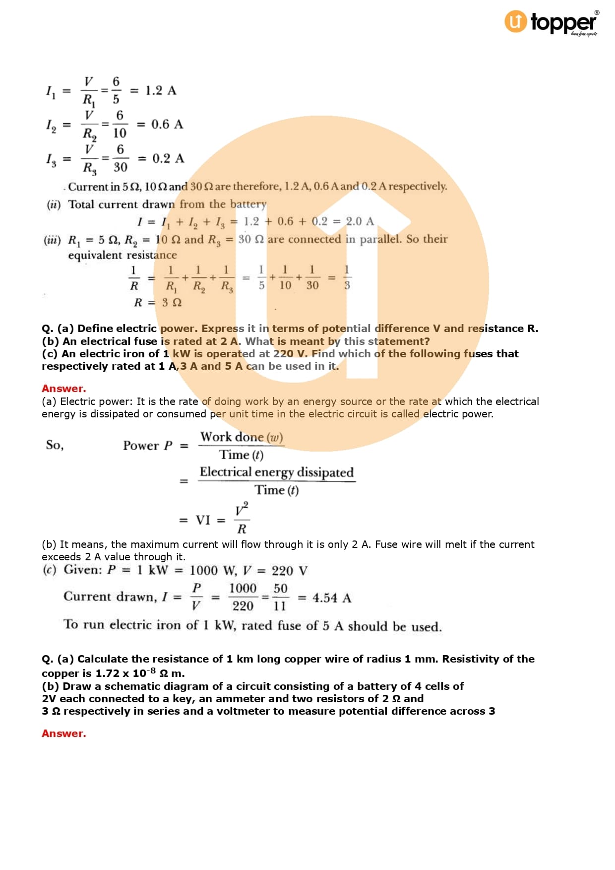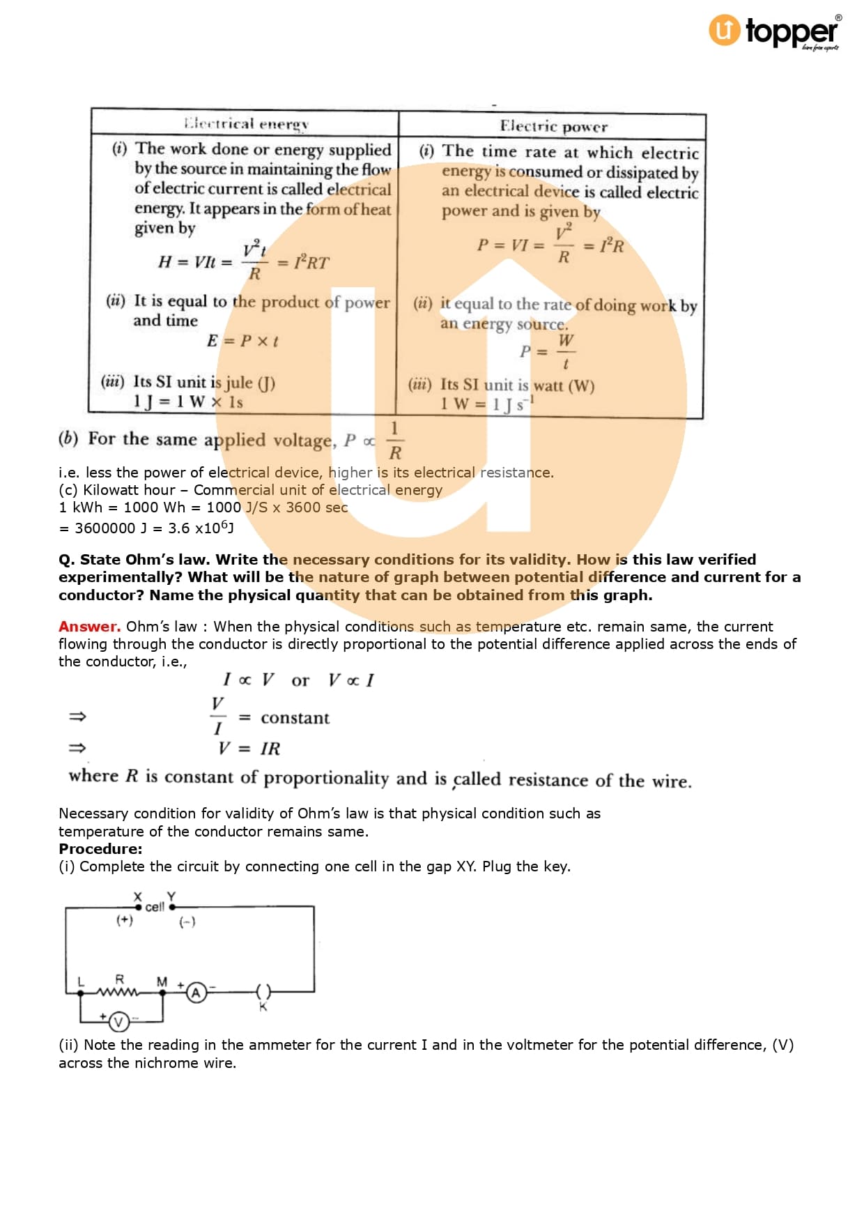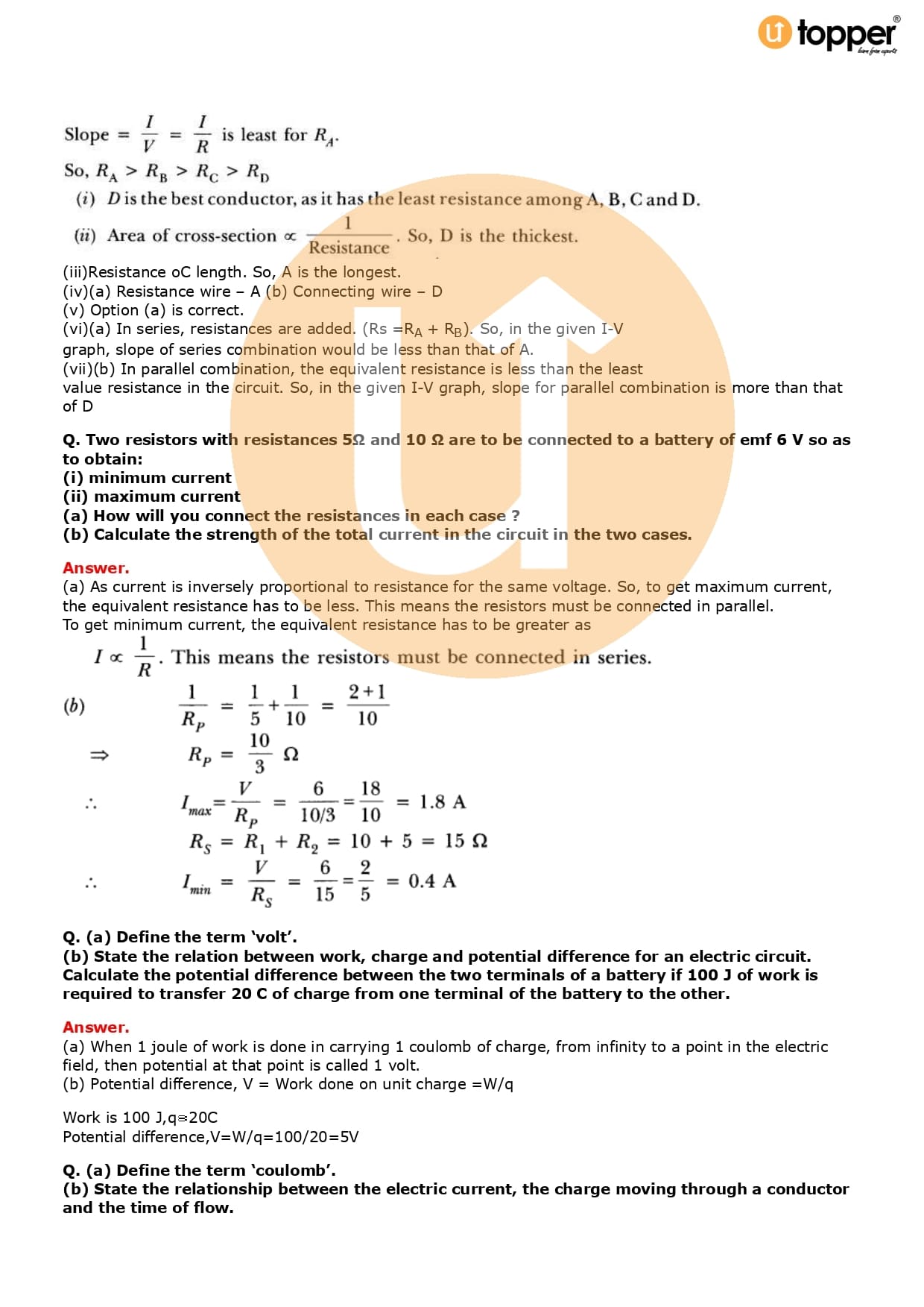 Class 10 Science Important Question CBSE Chapter 12 – Electricity