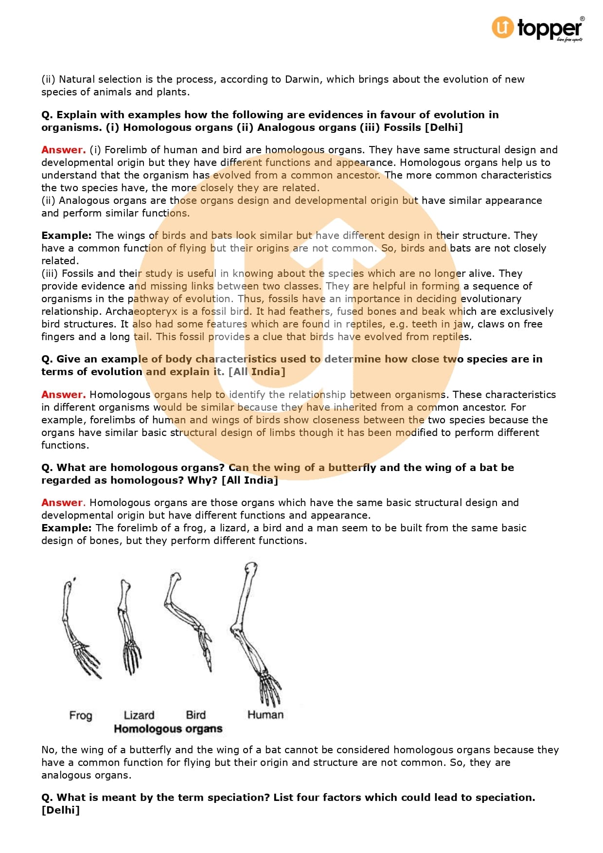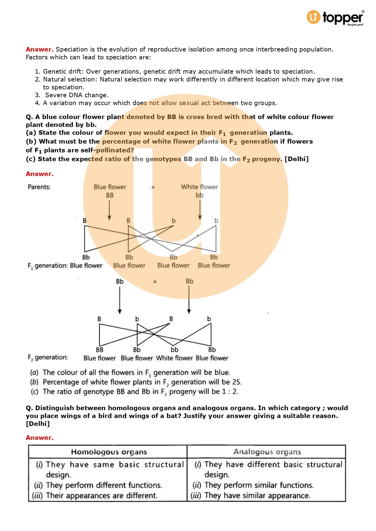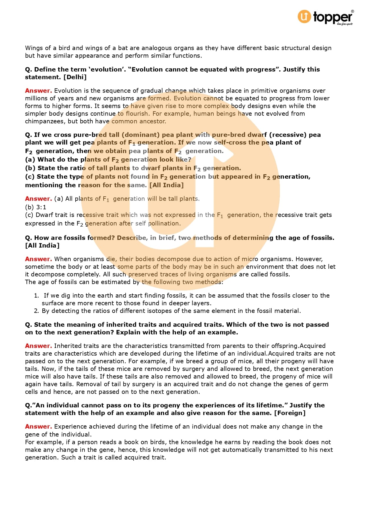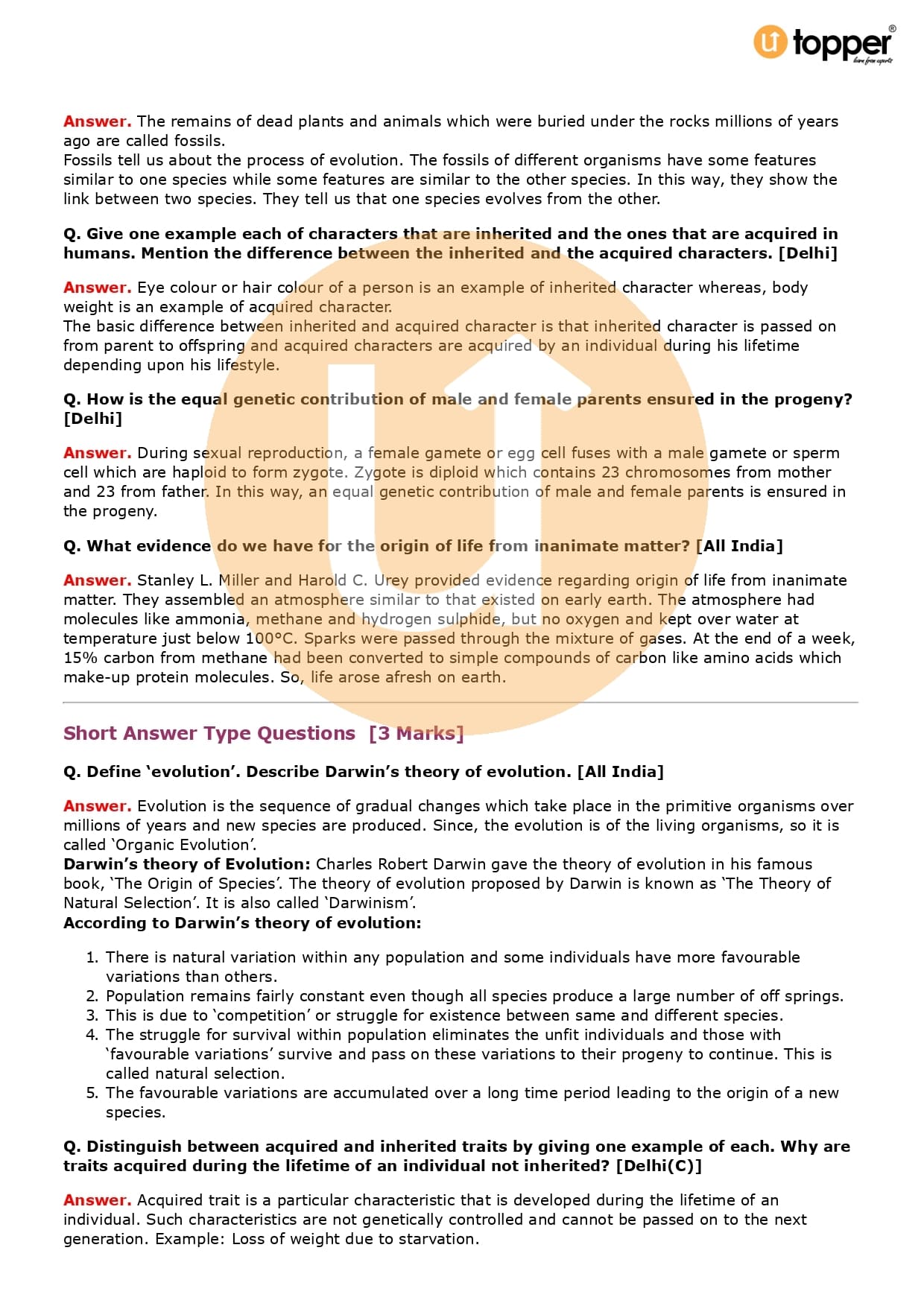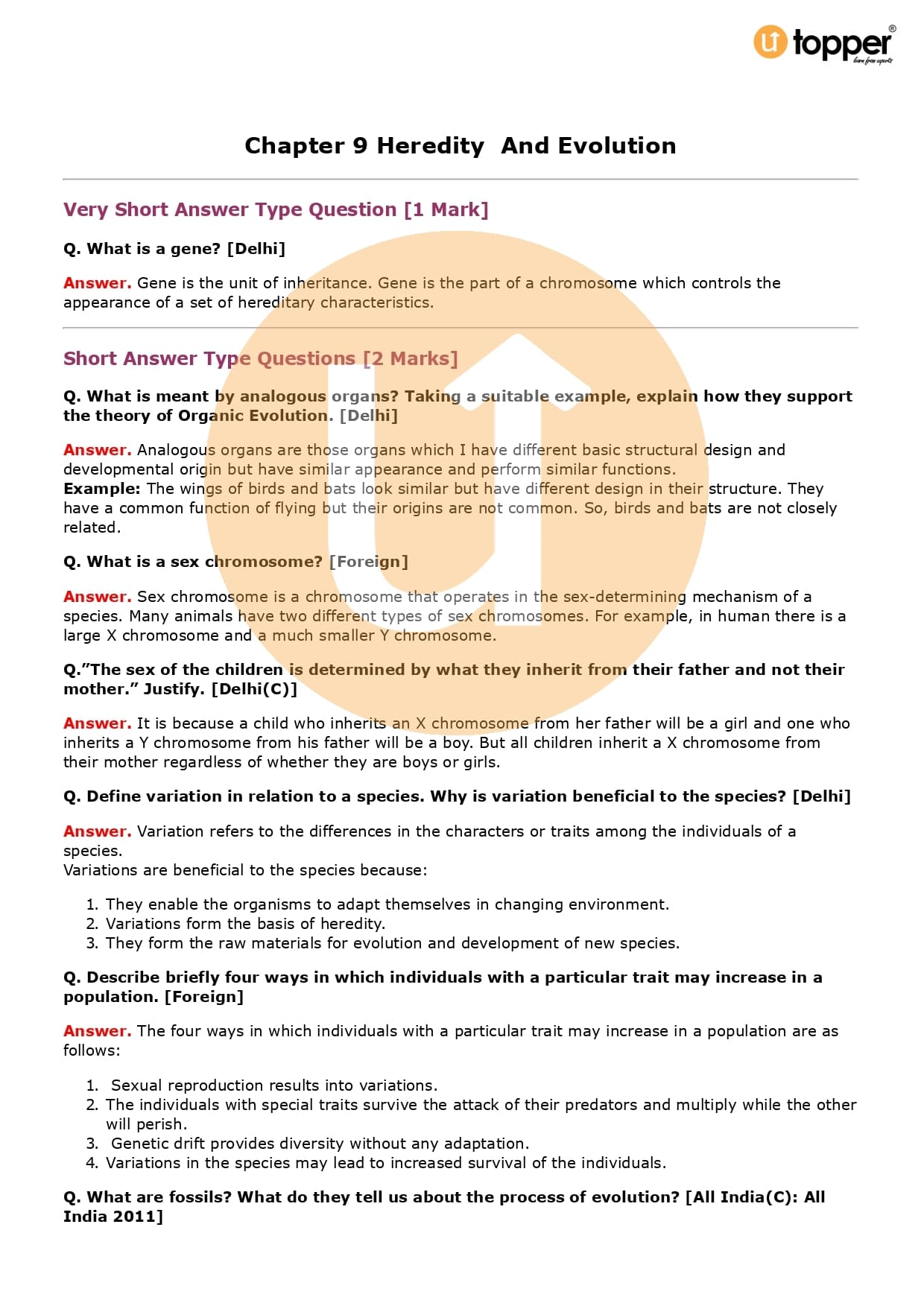 Class 10 Science Important Question CBSE Chapter 9 – Heredity and Evolution