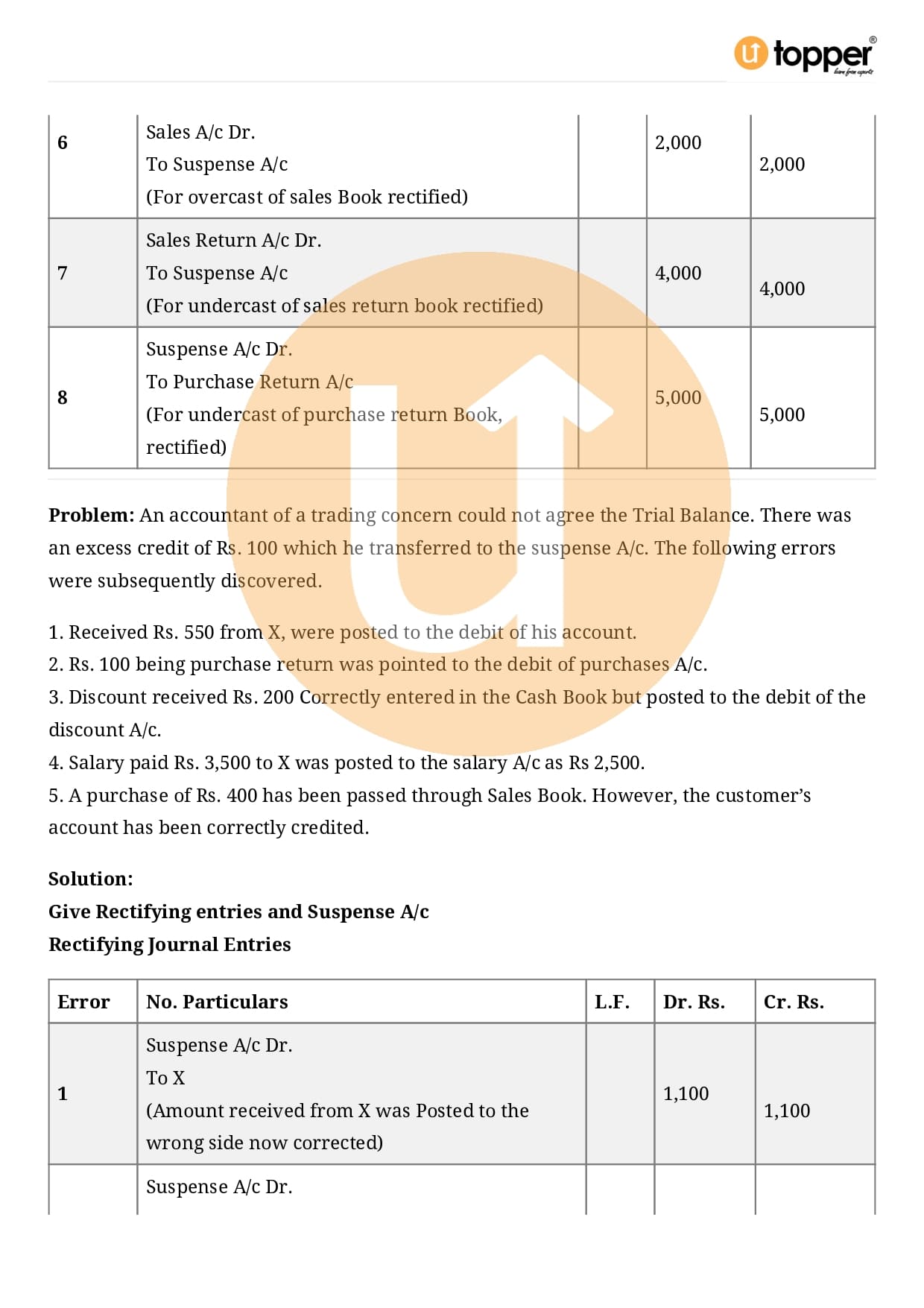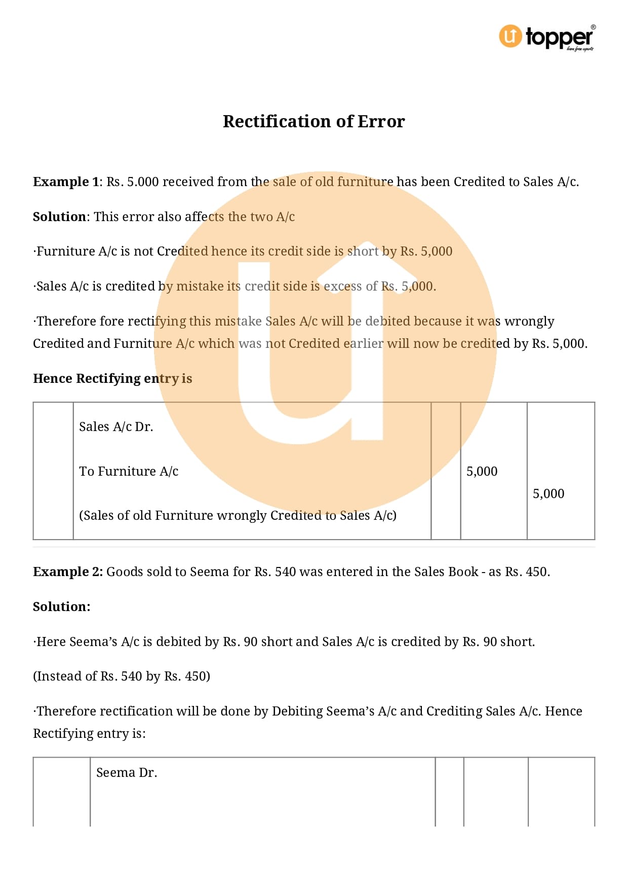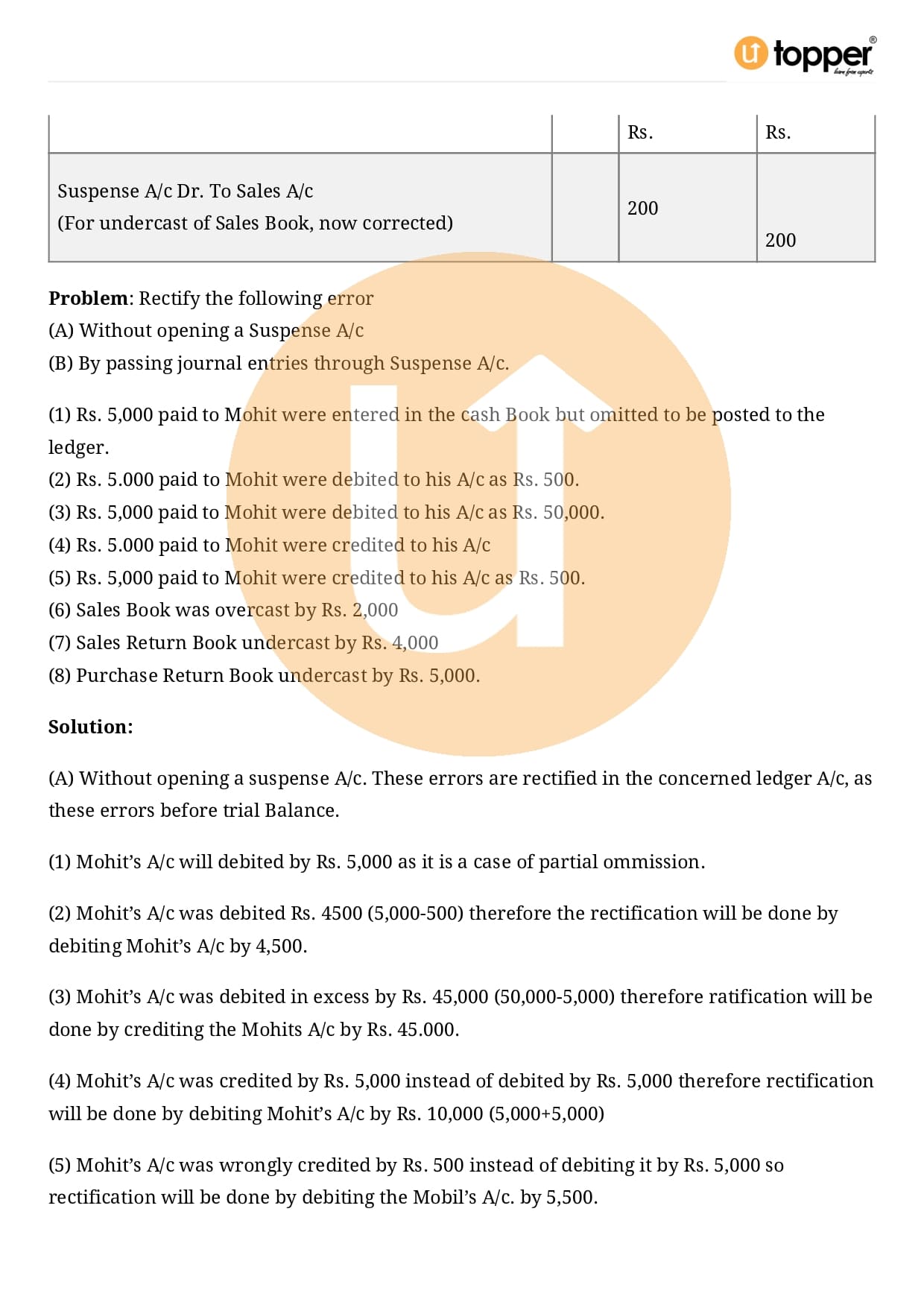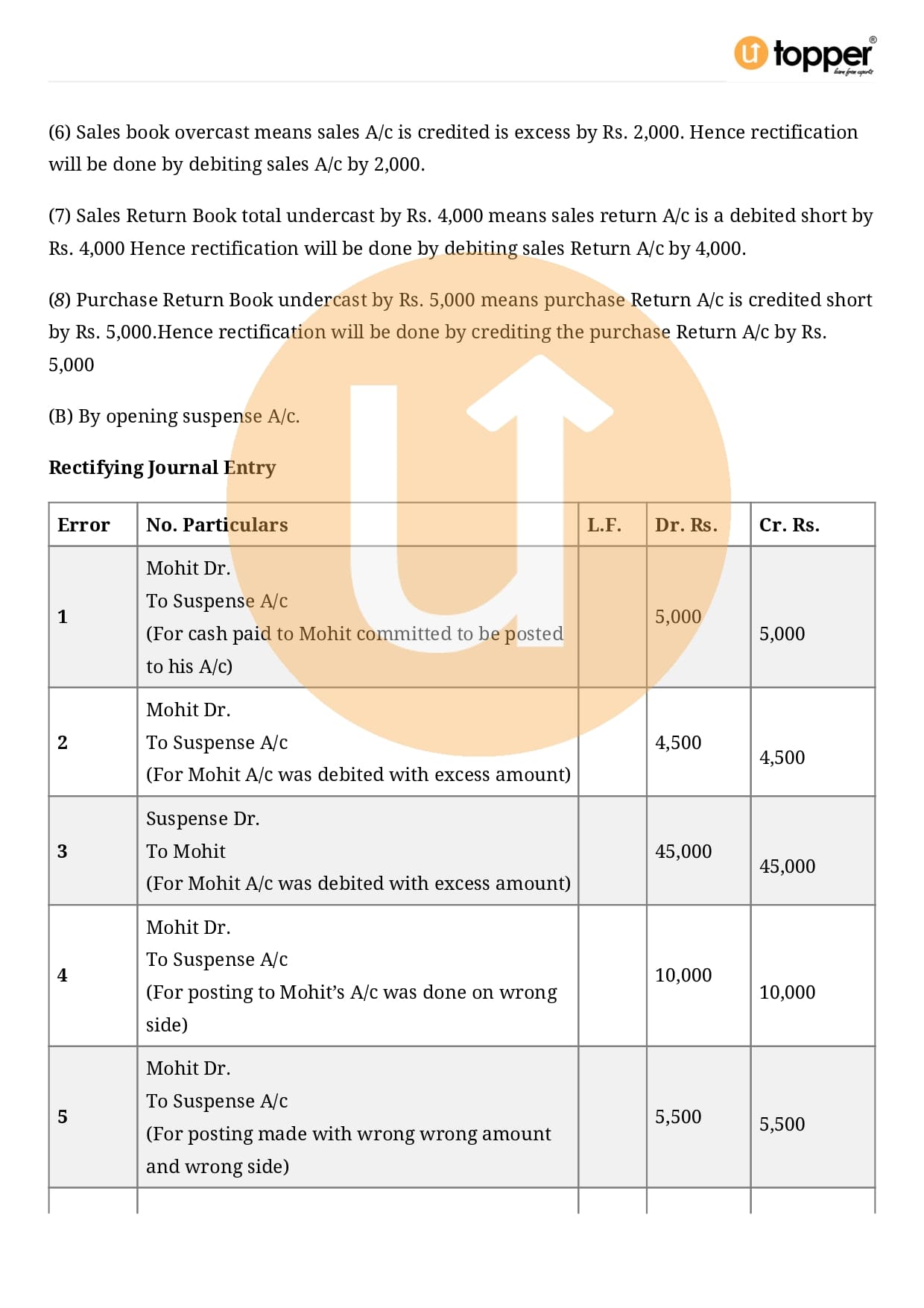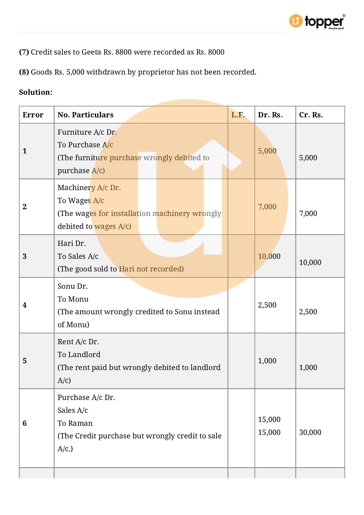 Class 11 Accountancy Important Question CBSE Chapter 6 – Rectification of Errors