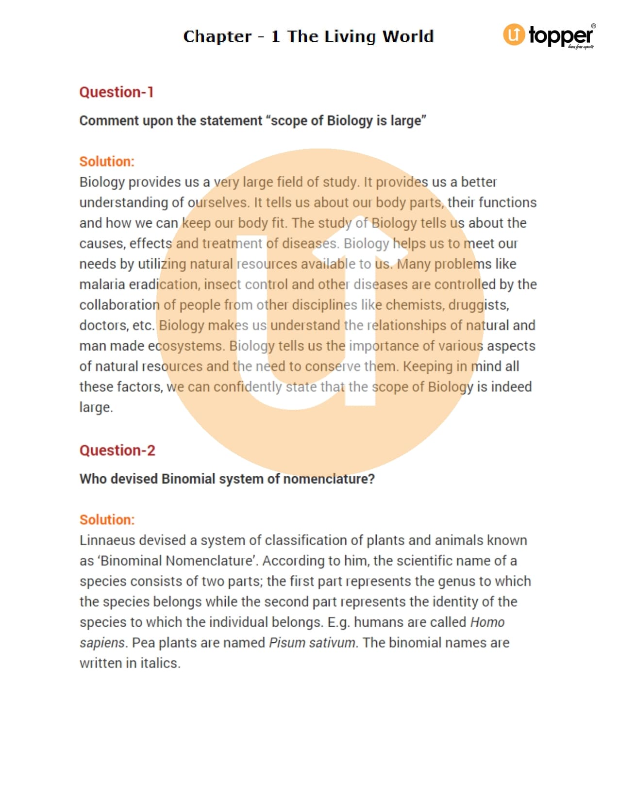 Class 11 Biology Important Questions Chapter 1 Pdf – The Living World
