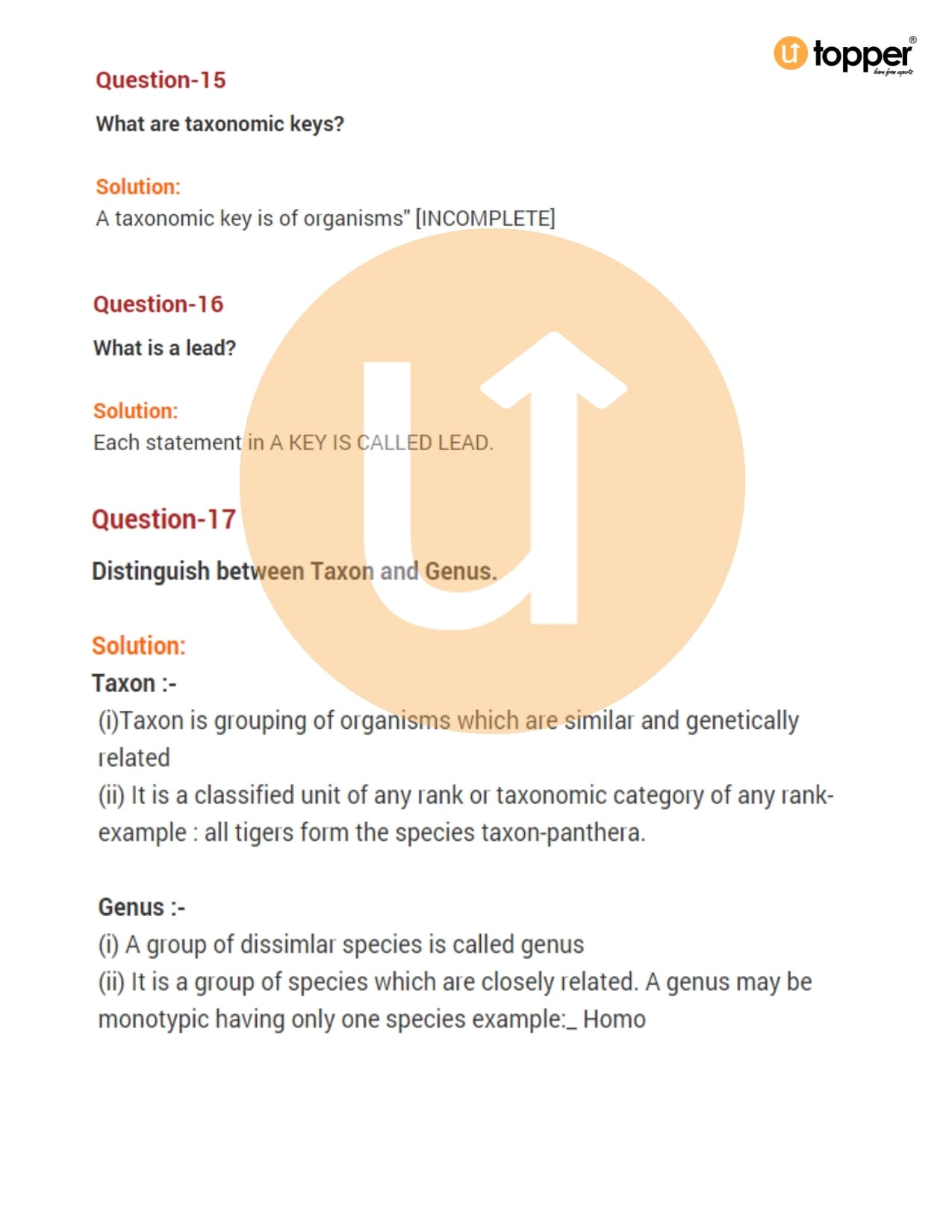 Class 11 Biology Important Question CBSE Chapter 1 – The Living World