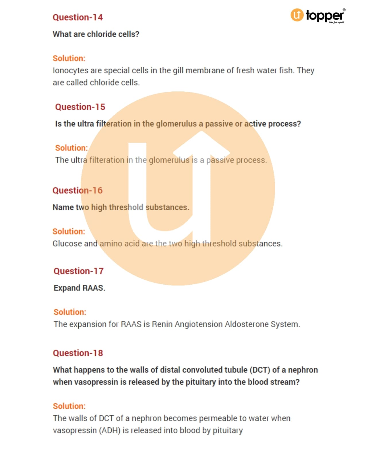 Class 11 Biology Important Questions Chapter 19 Pdf – Excretory Products and their Elimination