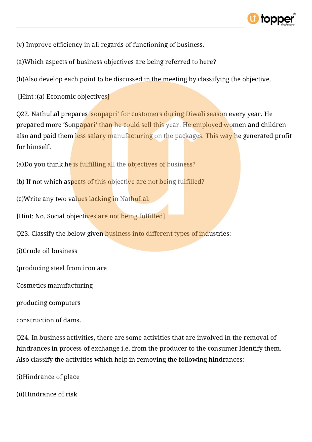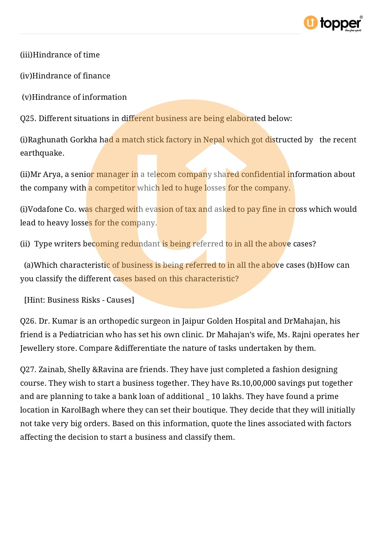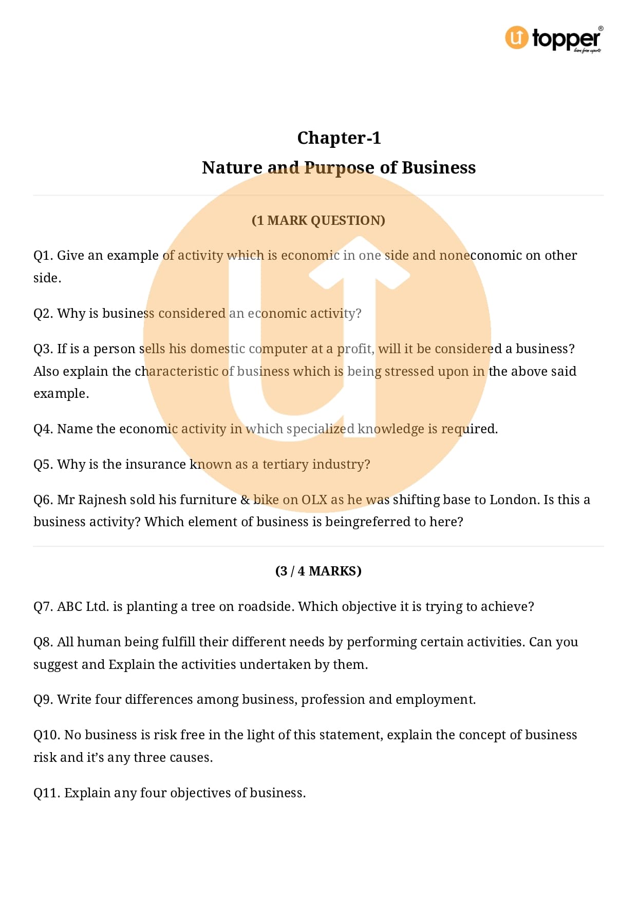 Class 11 Business Studies Important Question Chapter 1