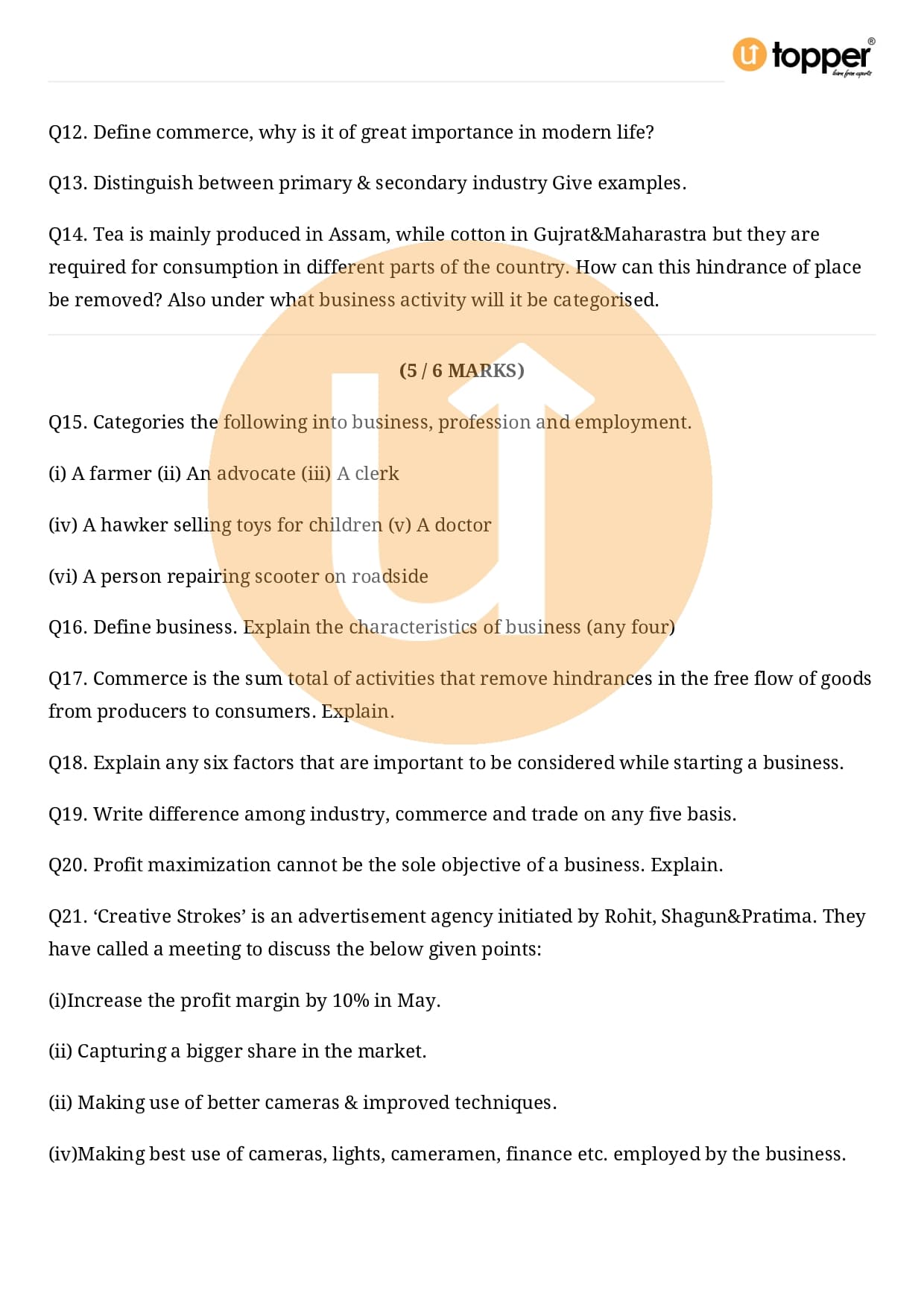 Class 11 Business Studies Important Question CBSE Chapter 1 – Nature and Purpose of Business