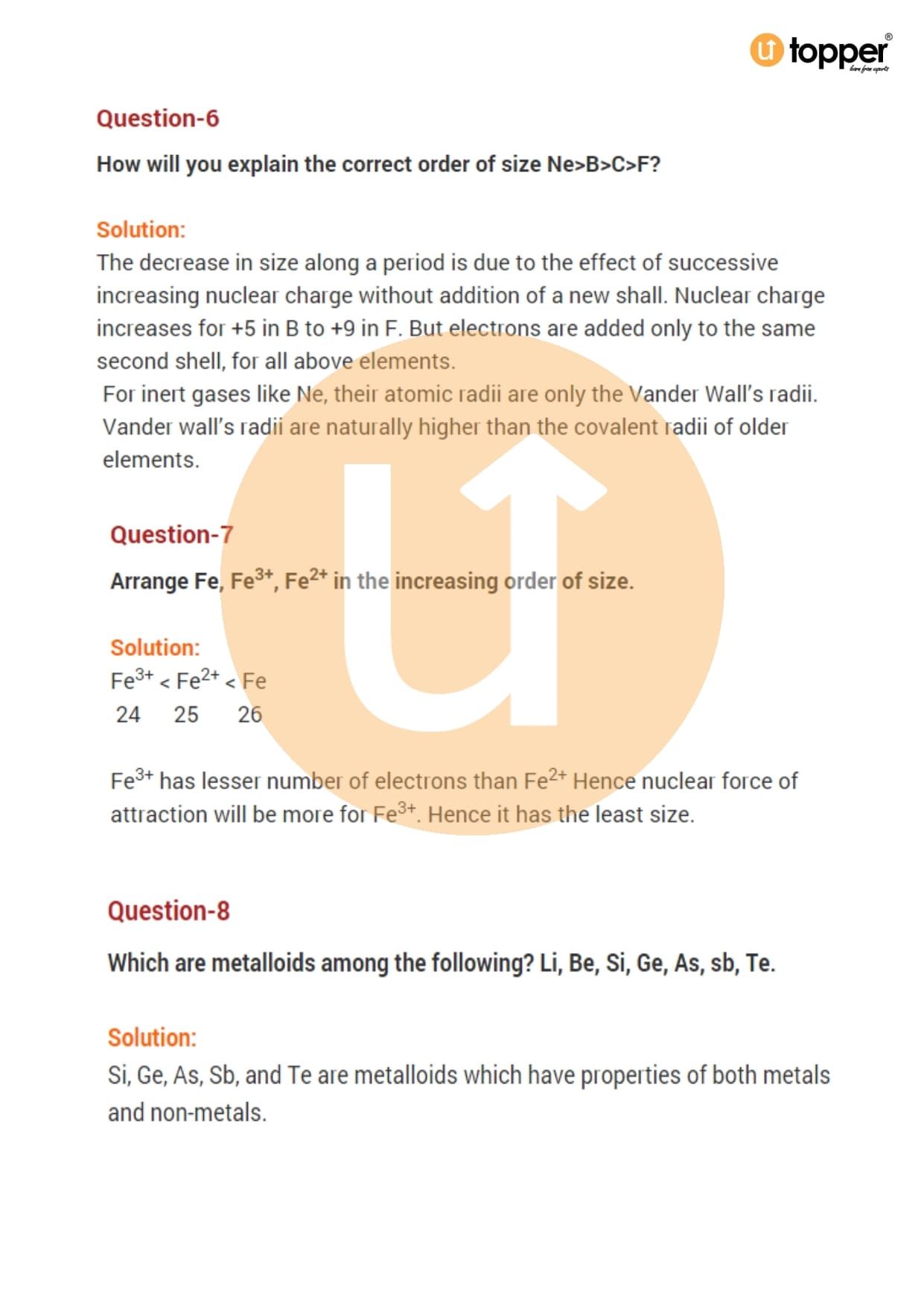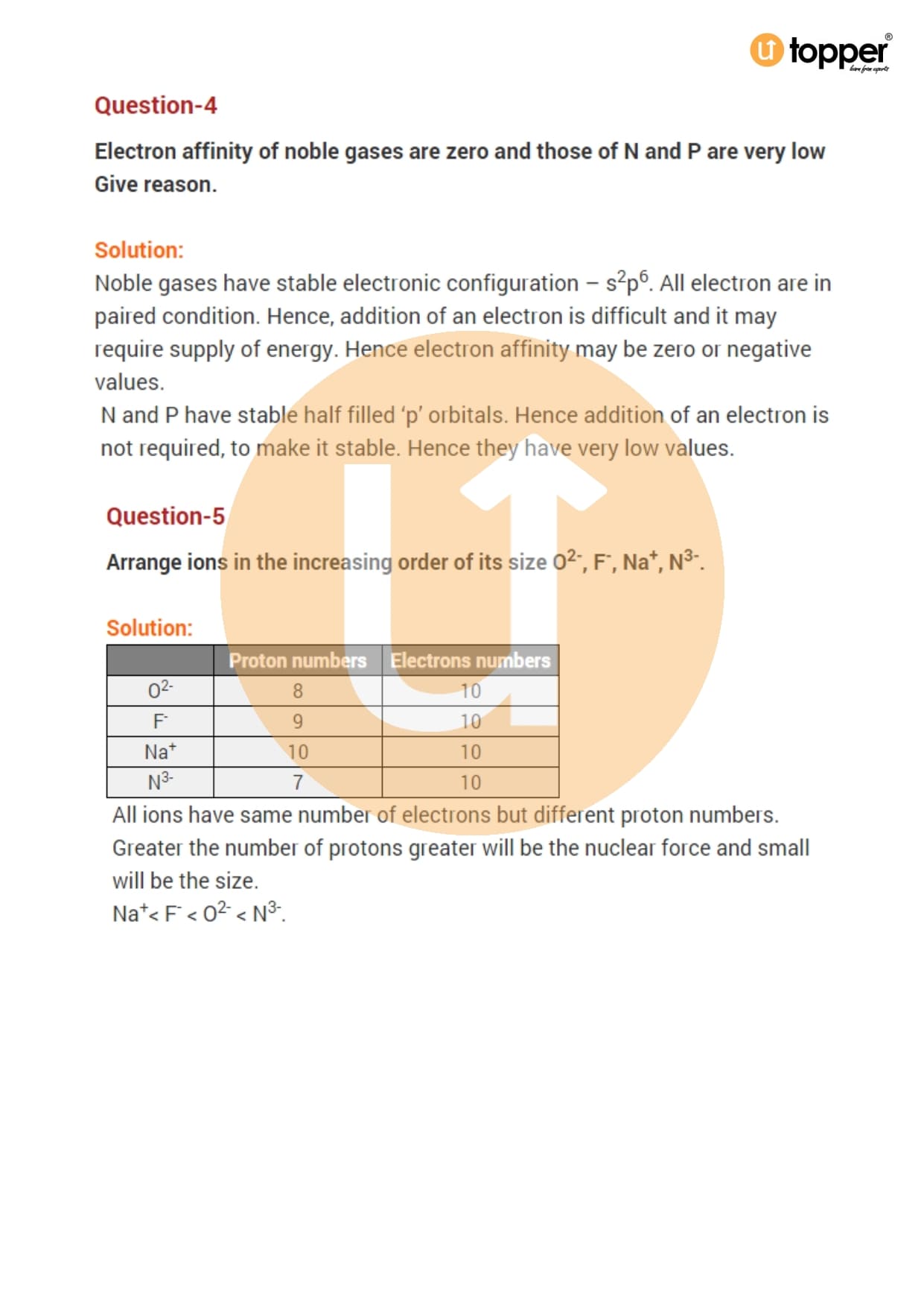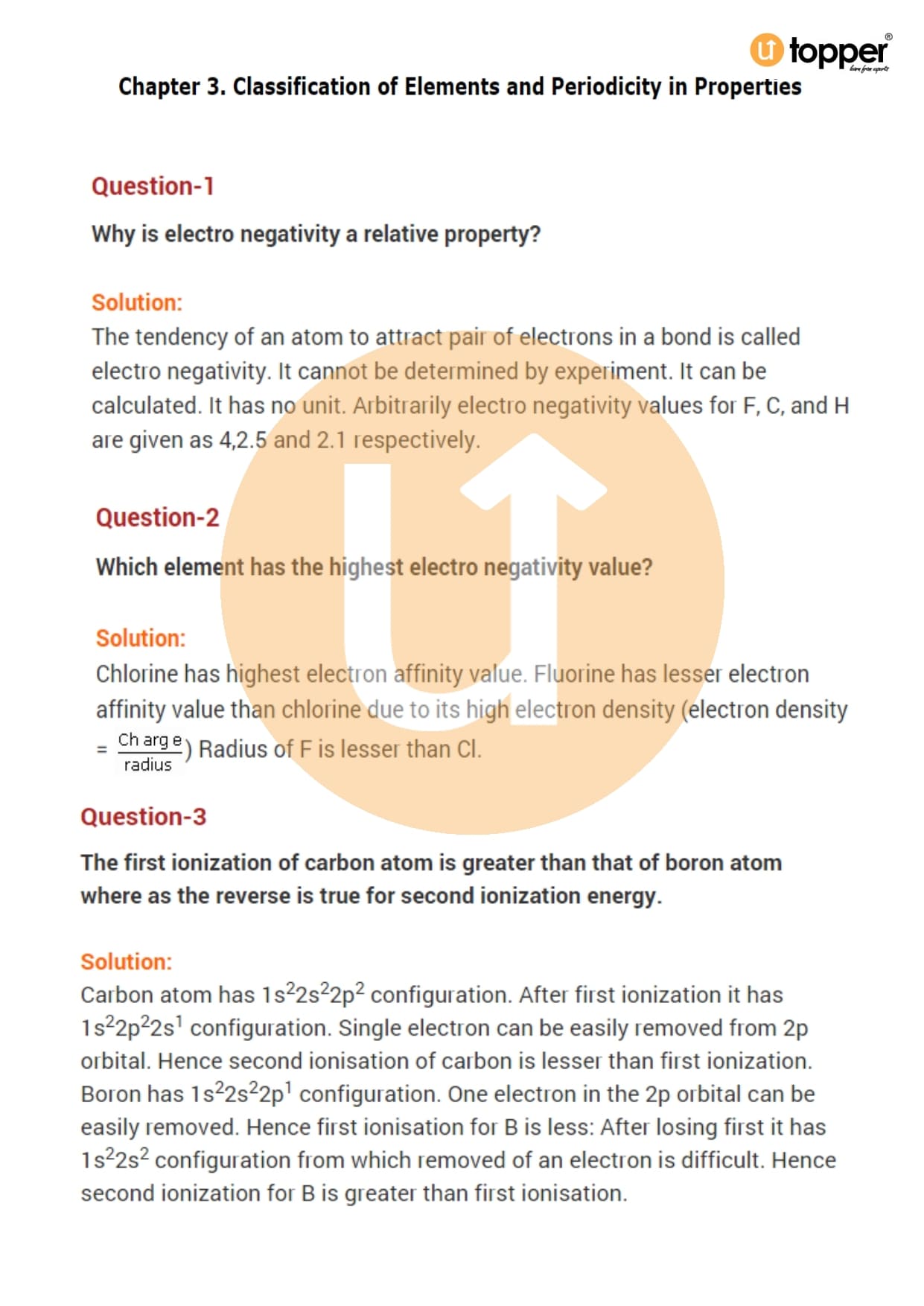 Class 11 Chemistry Important Question CBSE Chapter 3 – Classification of Elements and Periodicity in Properties