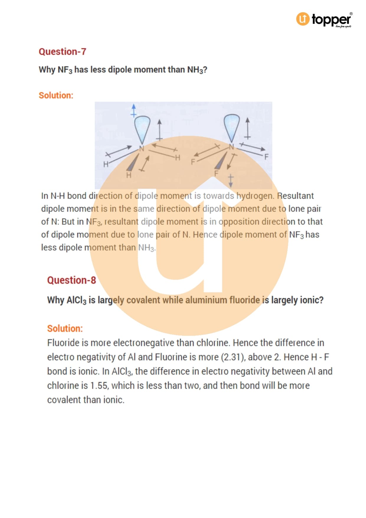 Class 11 Chemistry Important Question CBSE Chapter 4 – Chemical Bonding and Molecular Structure