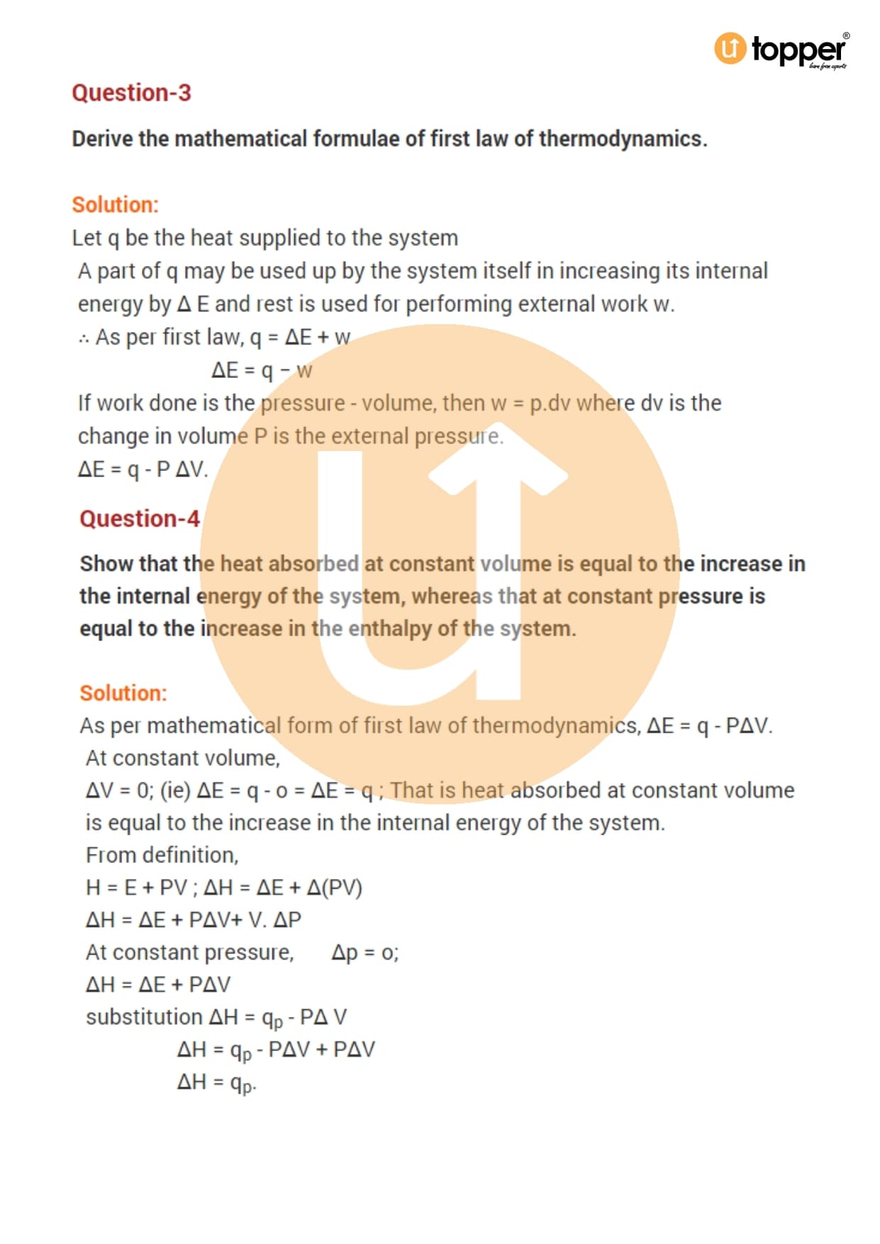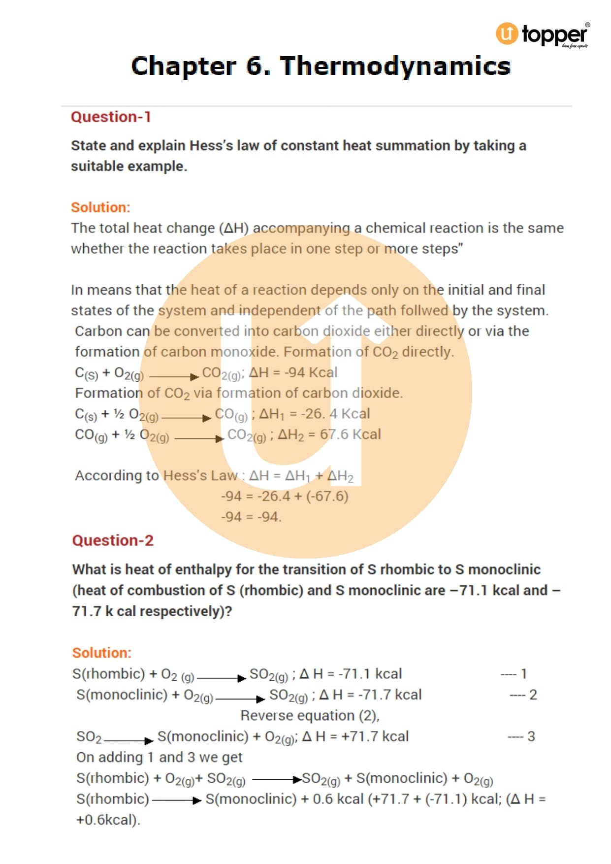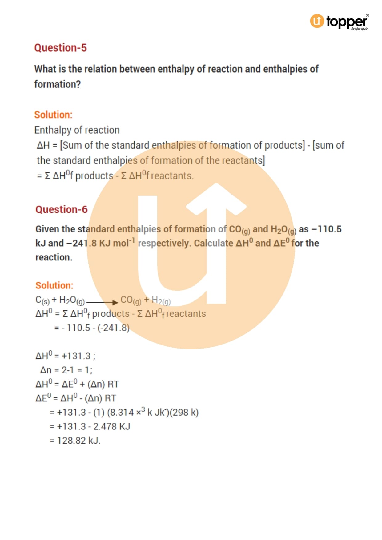 Class 11 Chemistry Important Question CBSE Chapter 6 – Thermodynamics