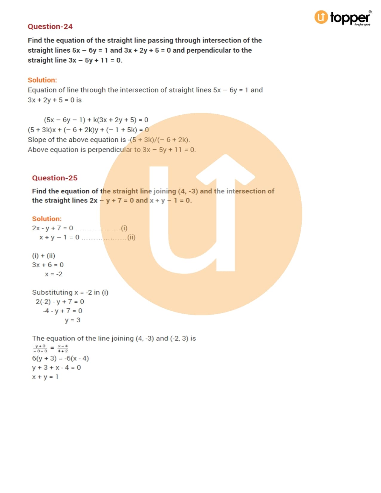 Chapter 10 – Straight Lines Important Questions