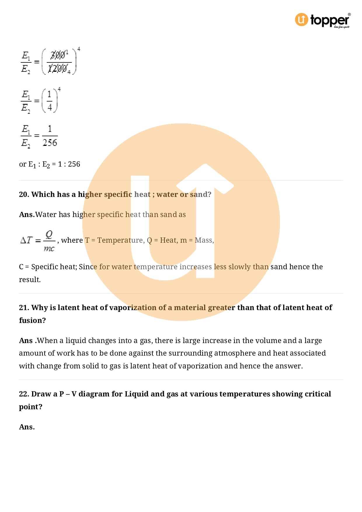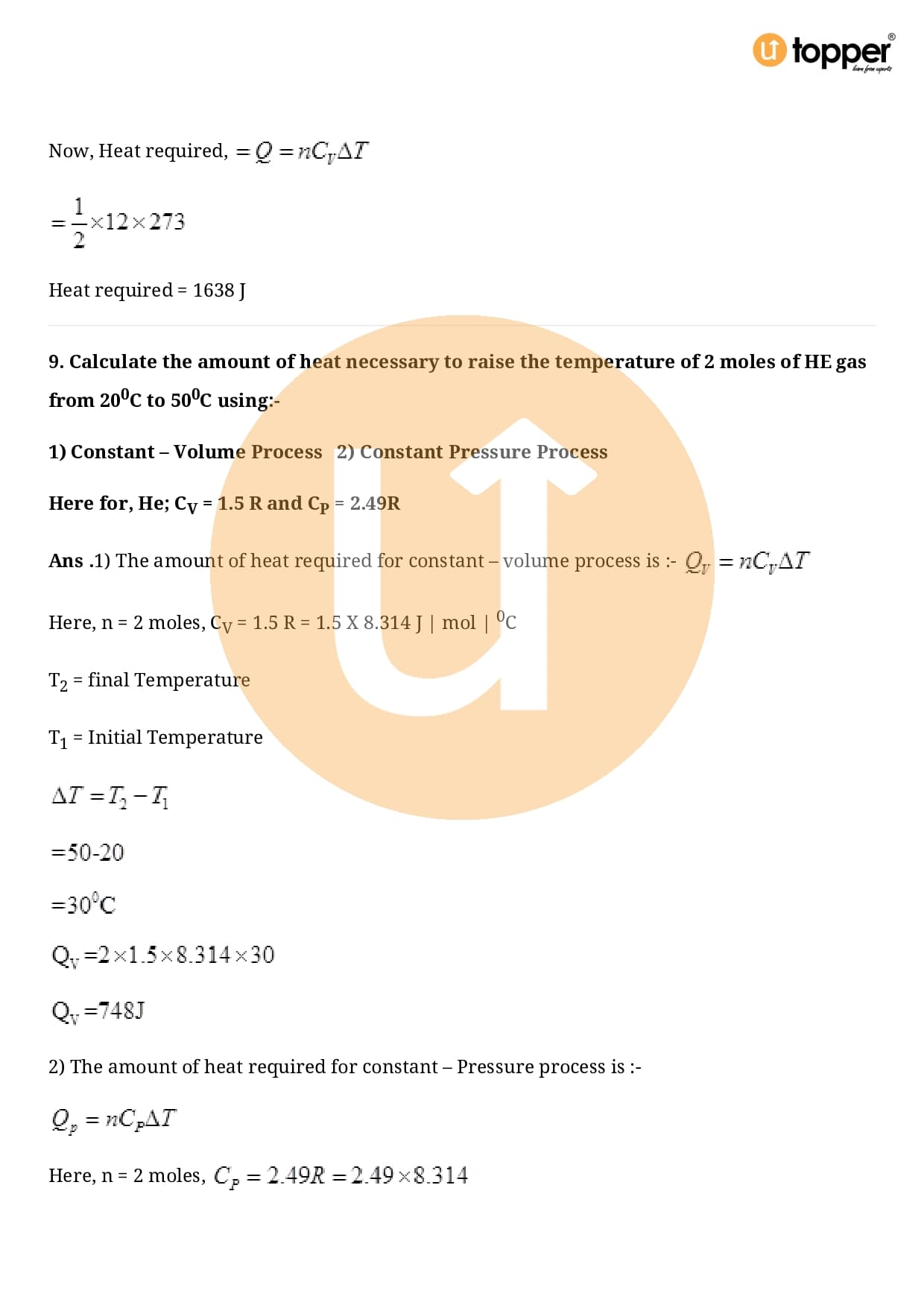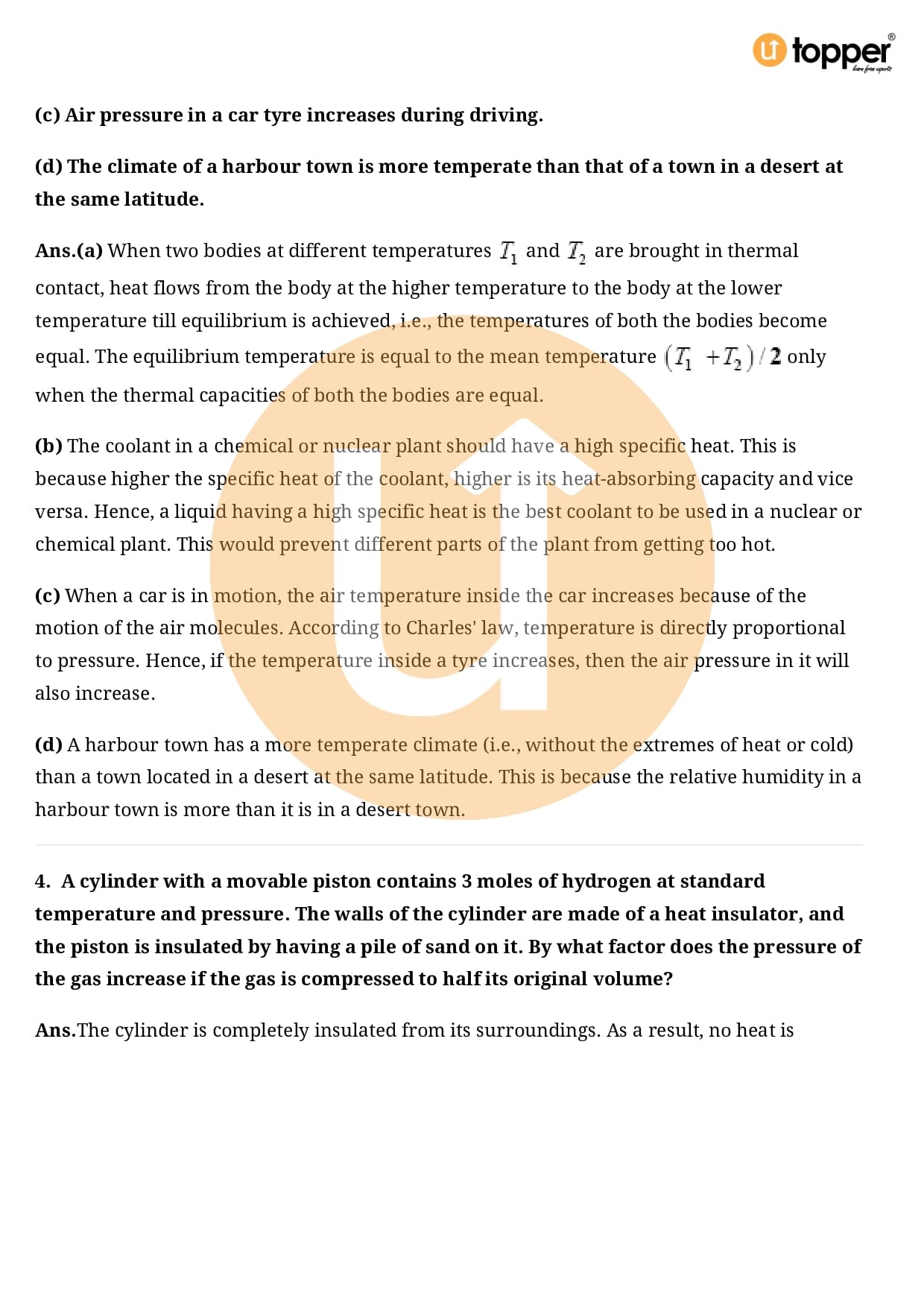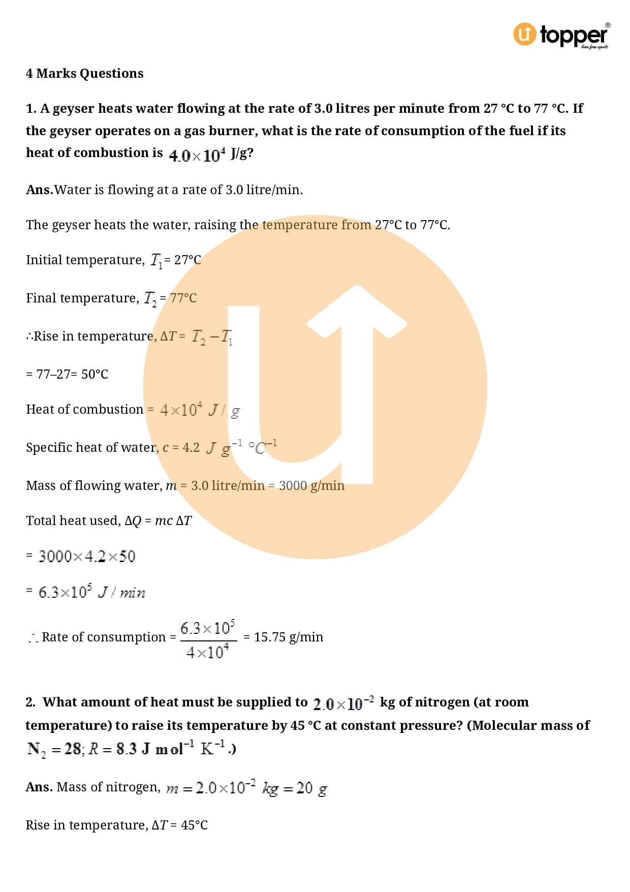 Class 11 Physics Important Question CBSE Chapter 12 – Thermodynamics