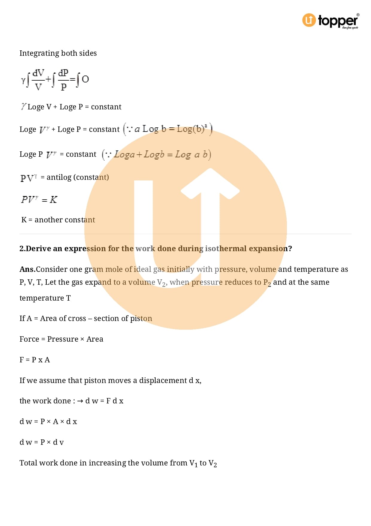 Class 11 Physics Important Questions Chapter 12 Pdf – Thermodynamics