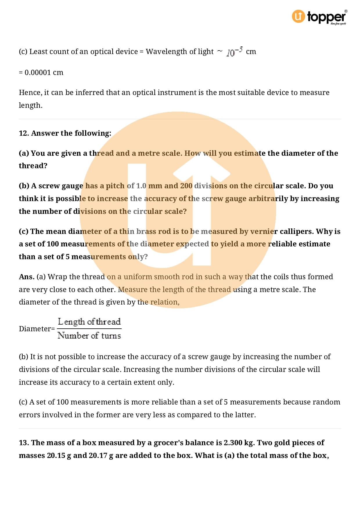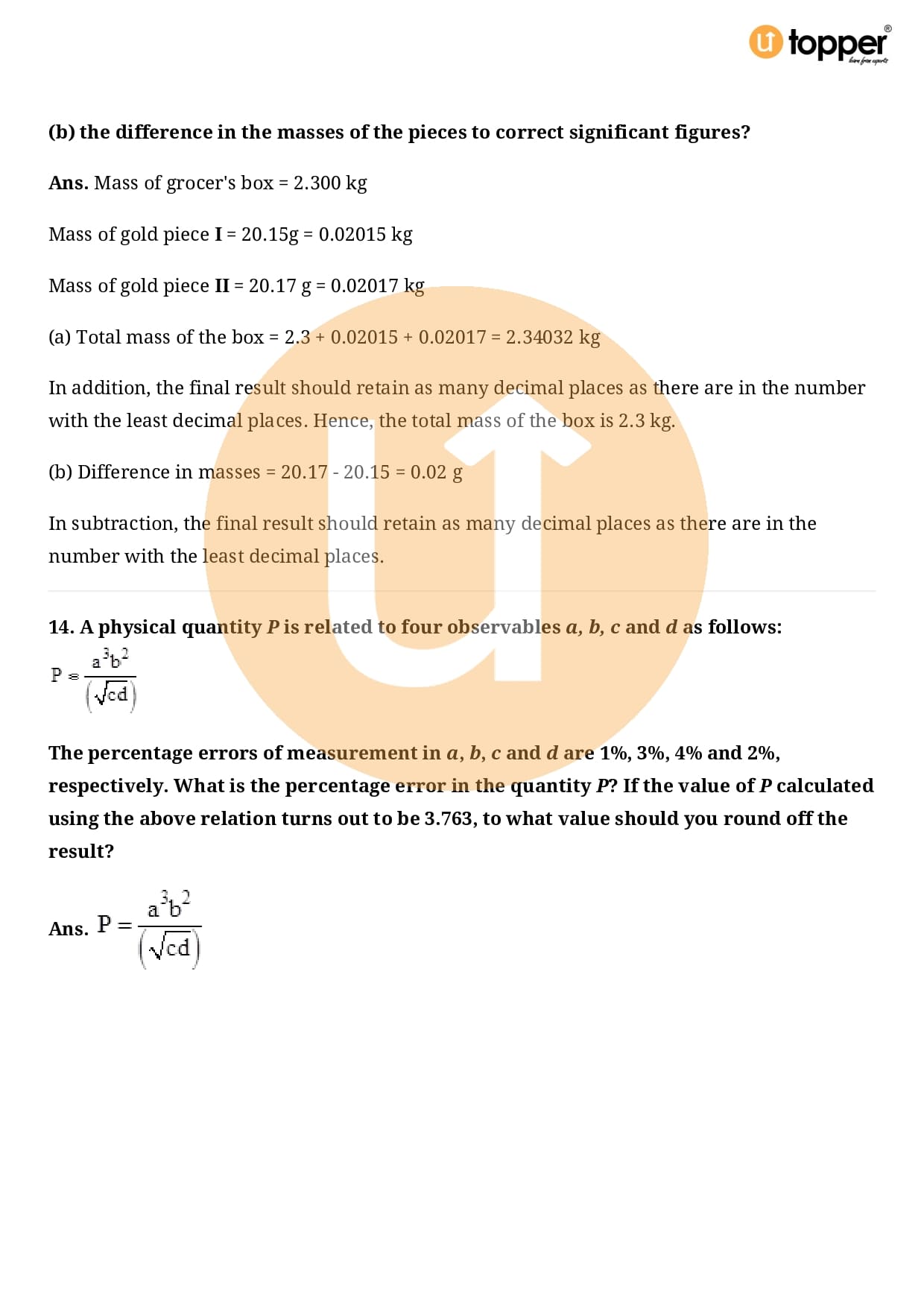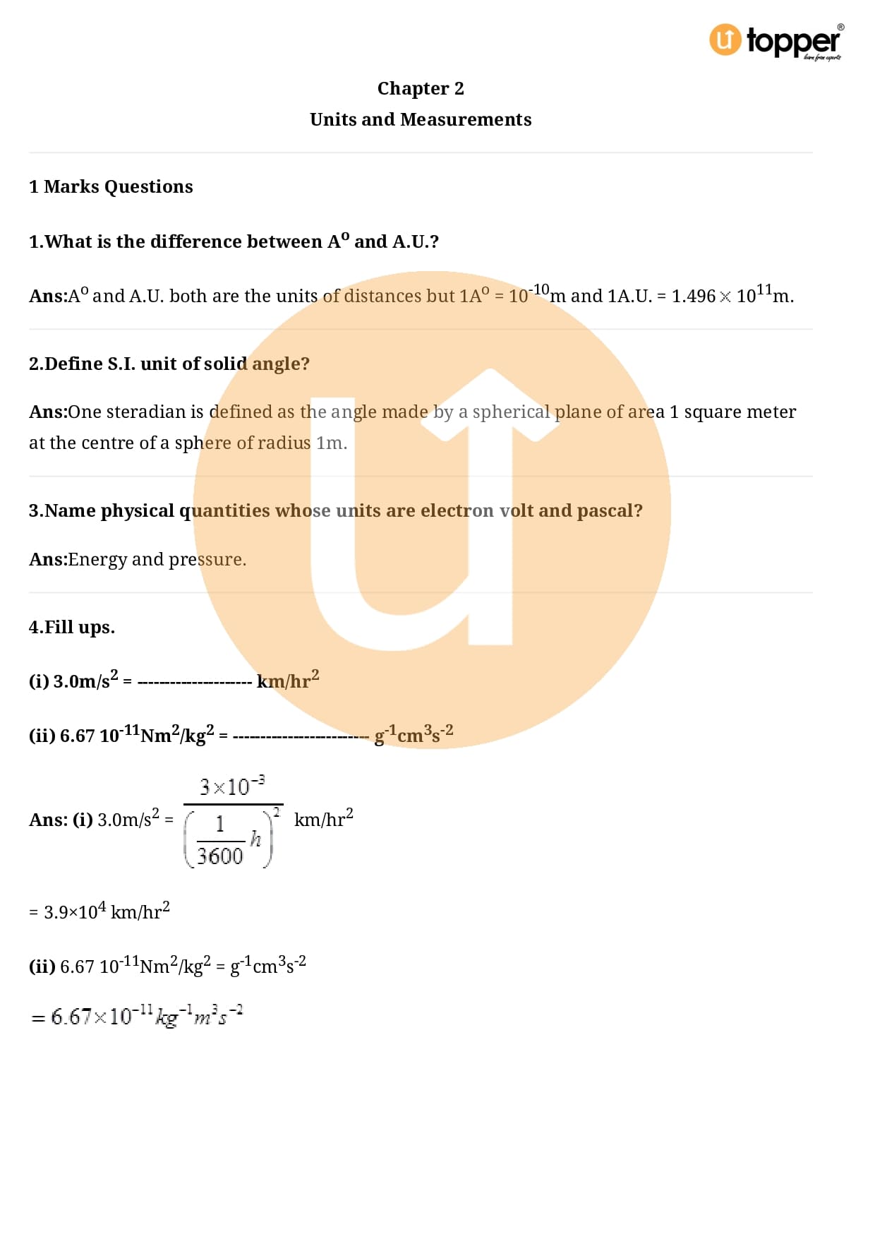 Class 11 Physics Important Questions Chapter 2 Pdf – Units and Measurement