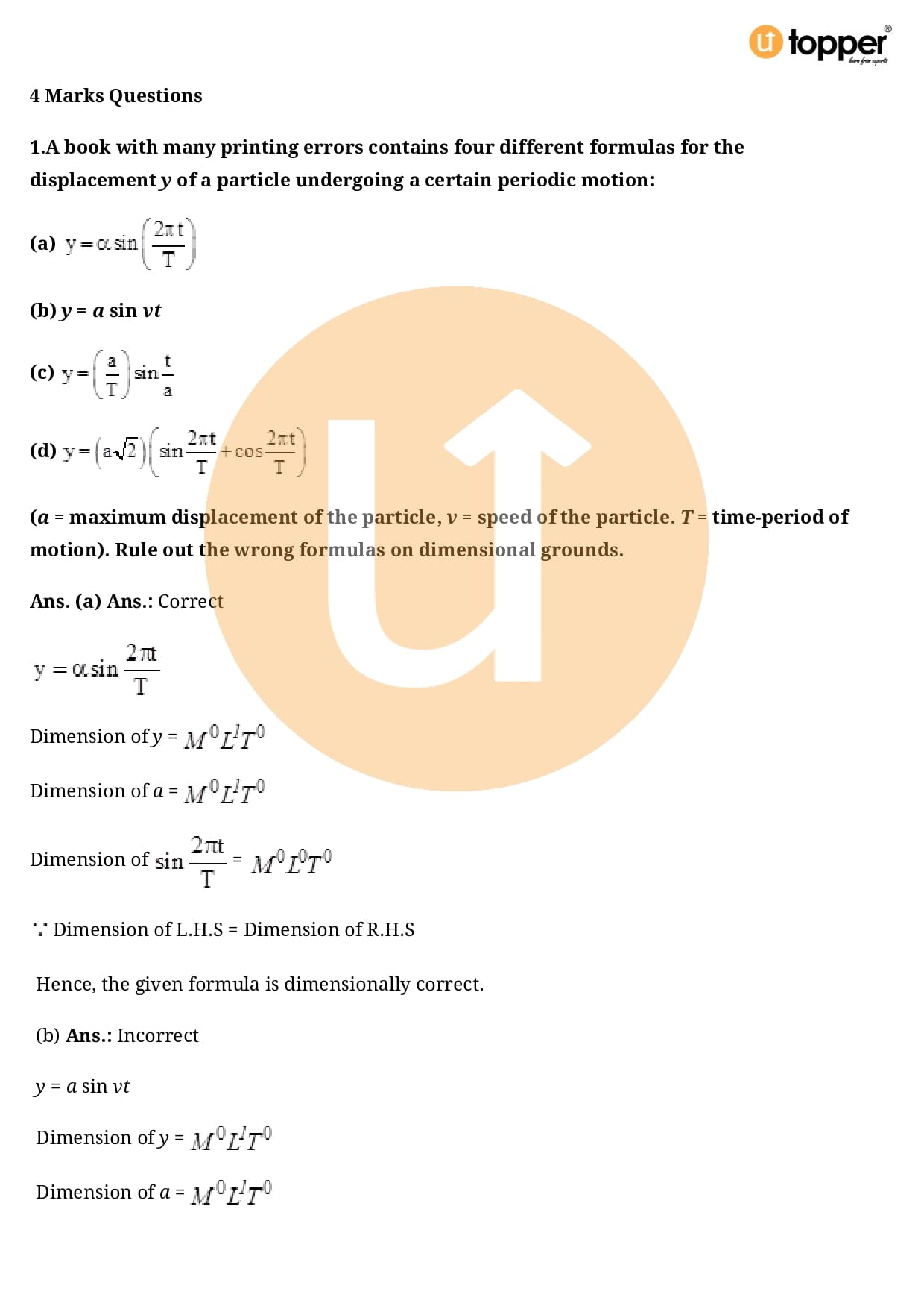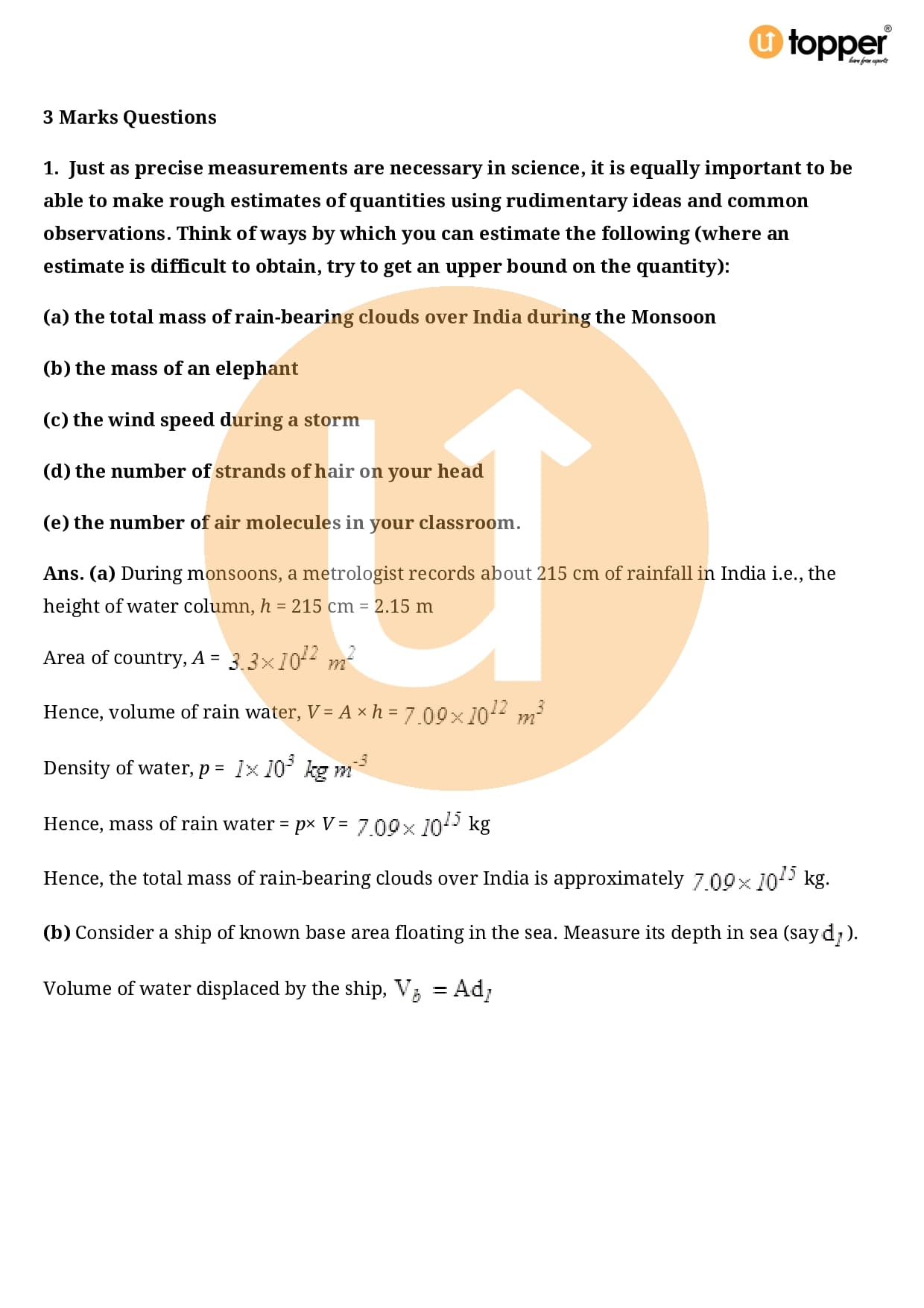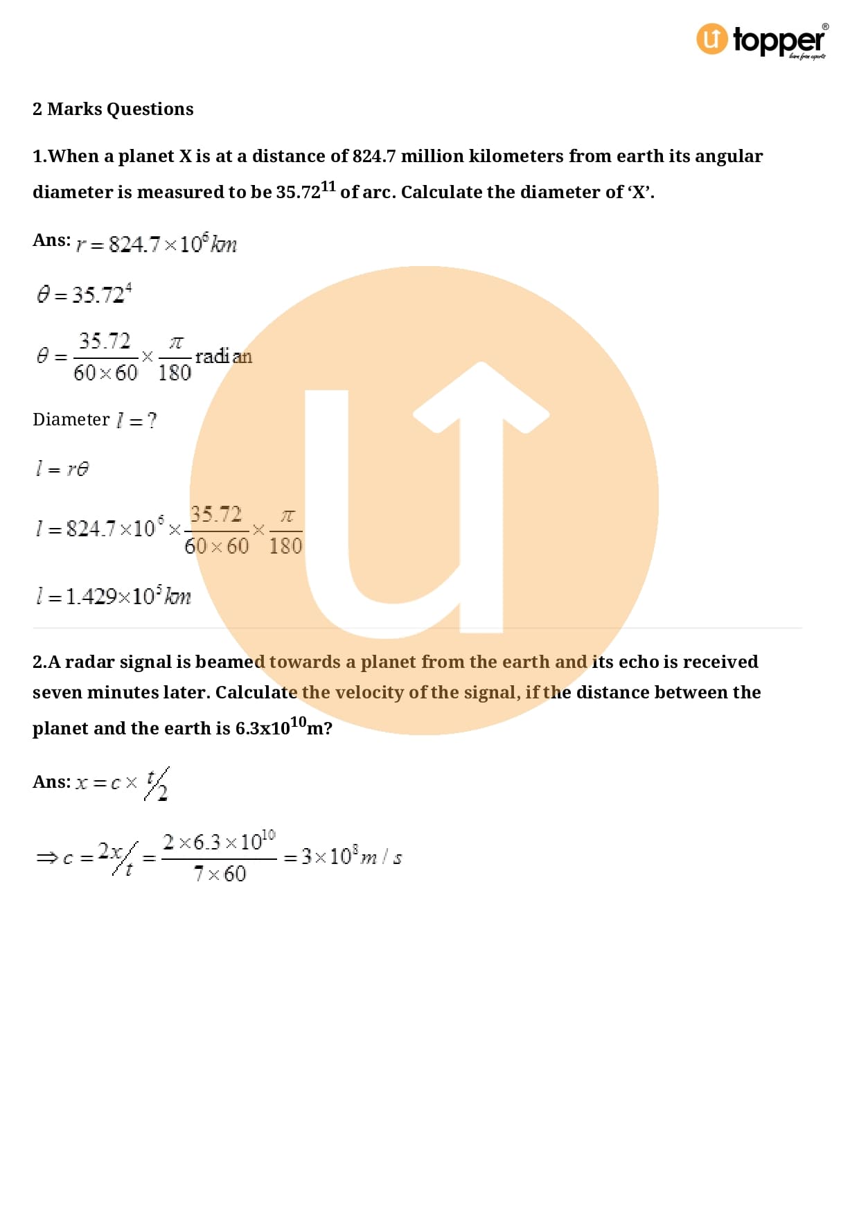 Class 11 Physics Important Question CBSE Chapter 2 – Units and Measurement