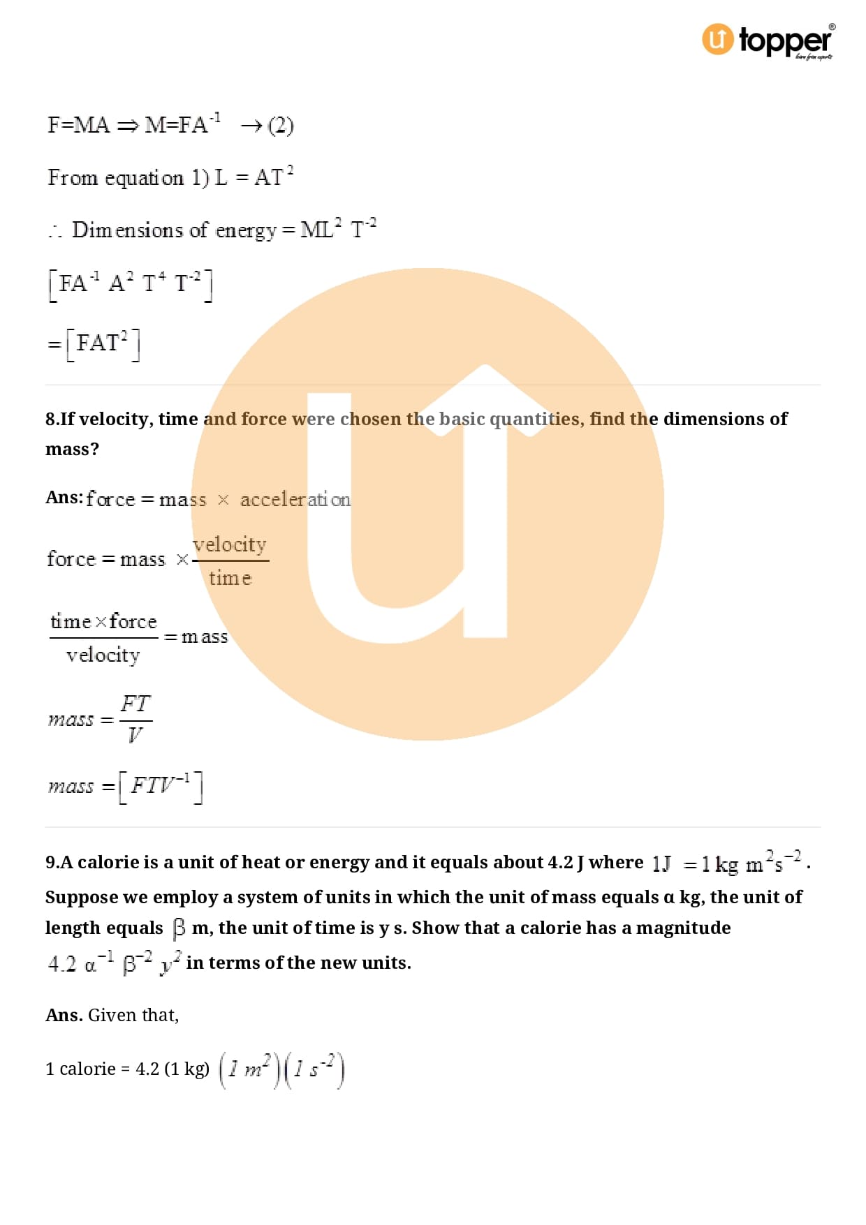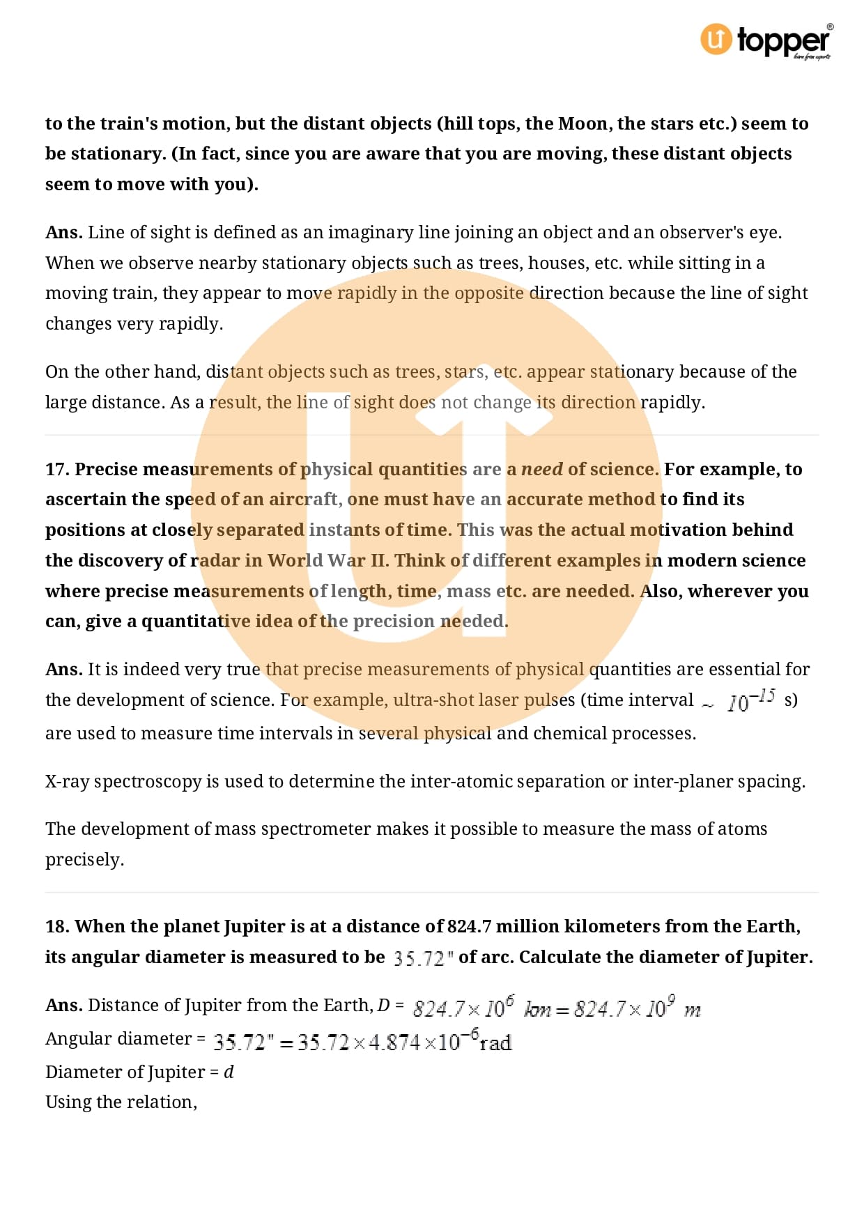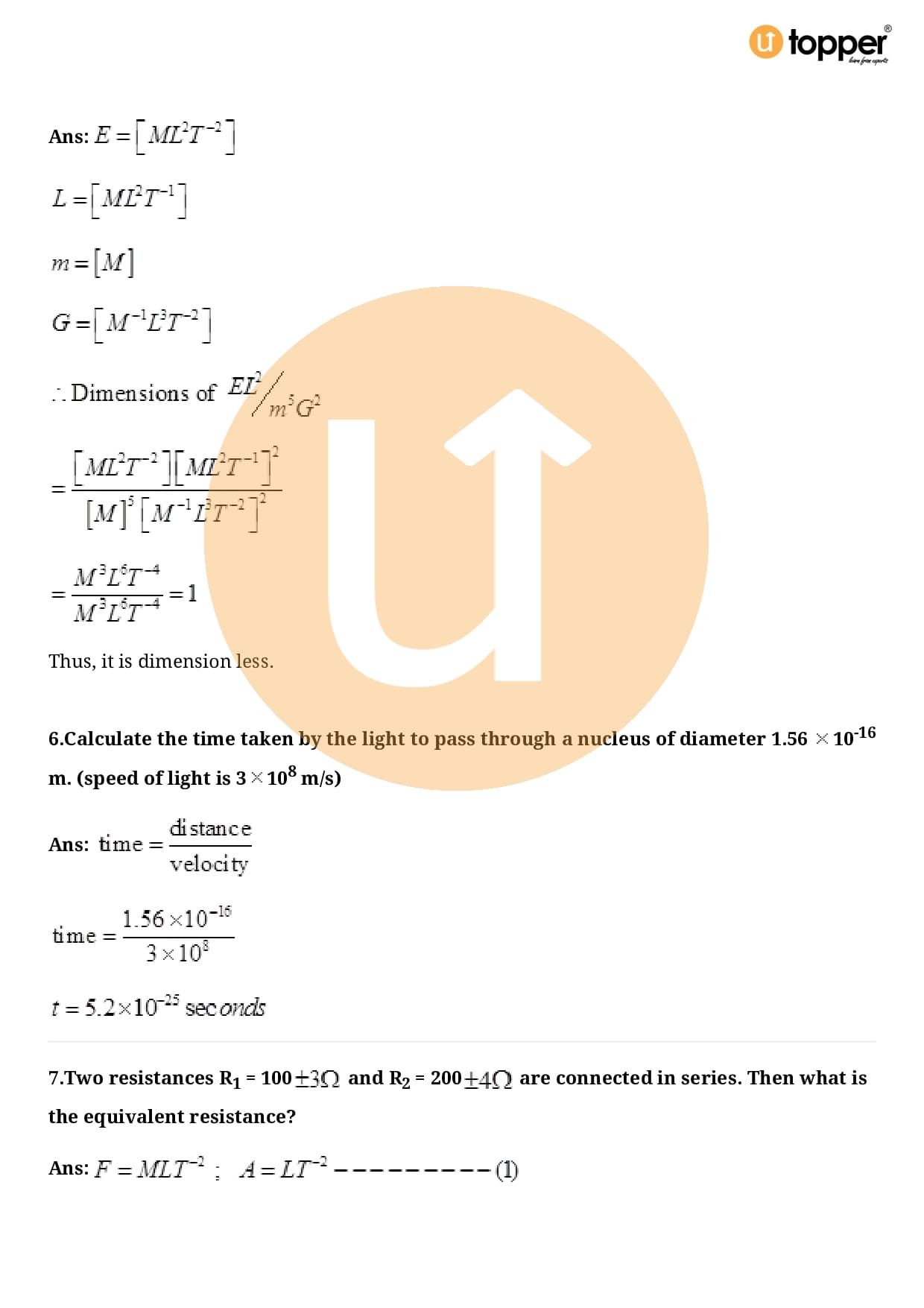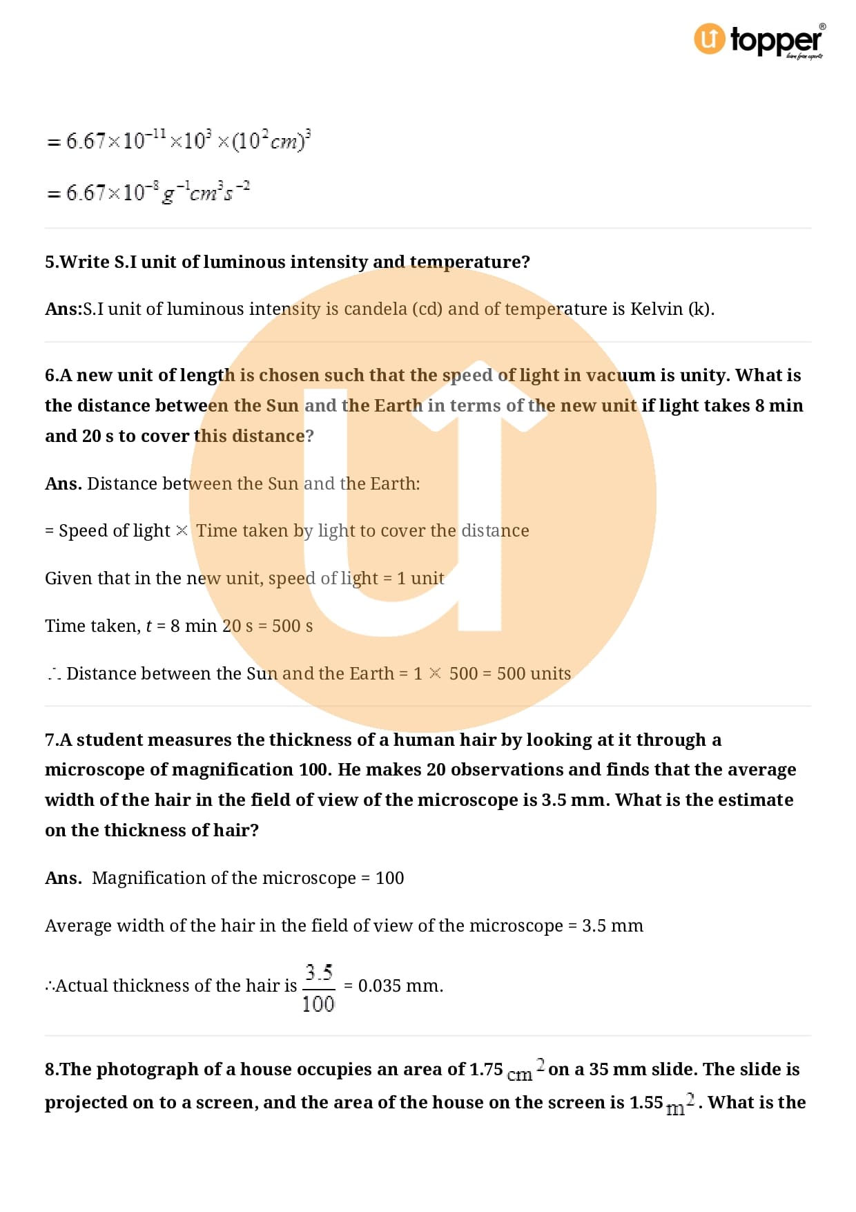 Class 11 Physics Important Question CBSE Chapter 2 – Units and Measurement