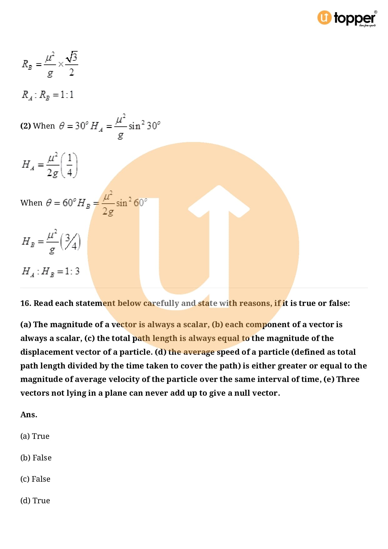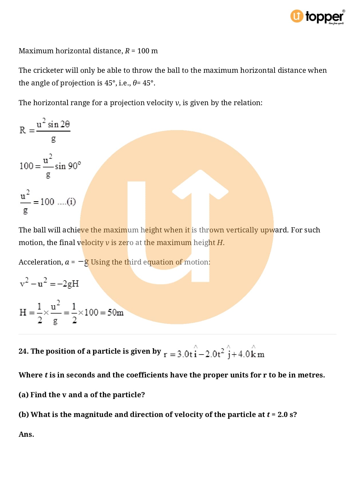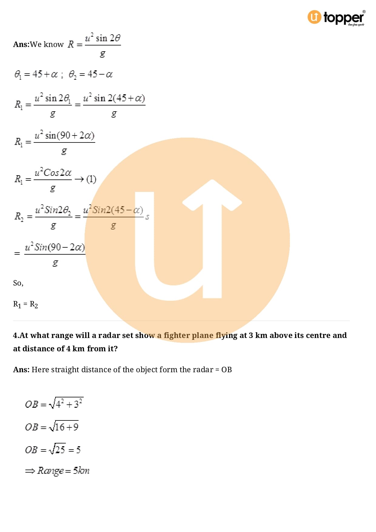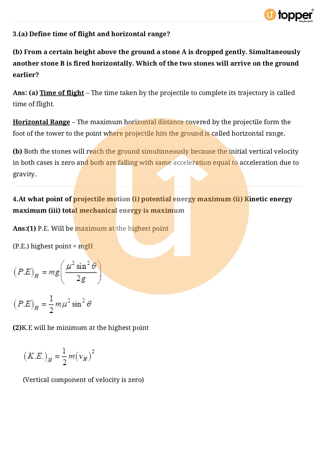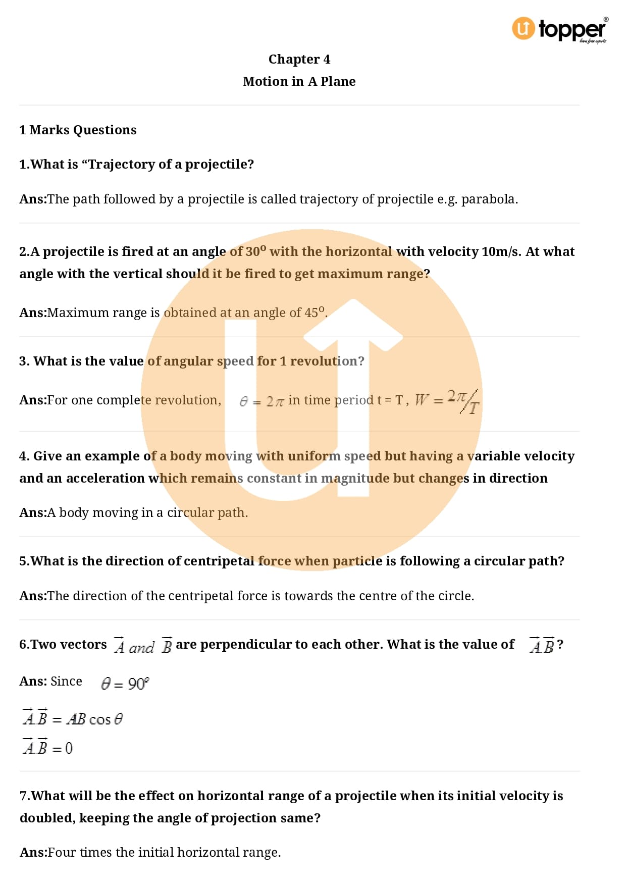 Class 11 Physics Important Question CBSE Chapter 4 – Motion in a Plane