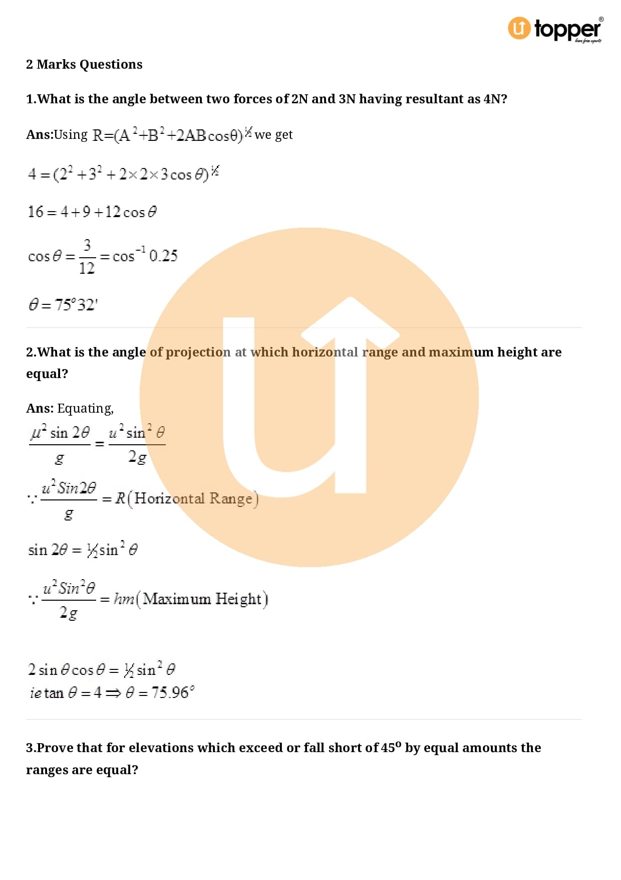 Class 11 Physics Important Question Chapter 4