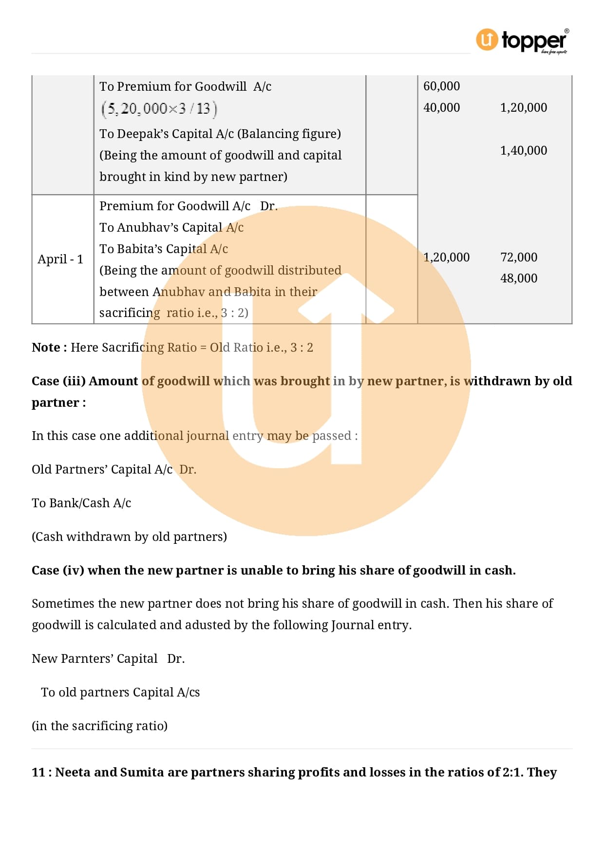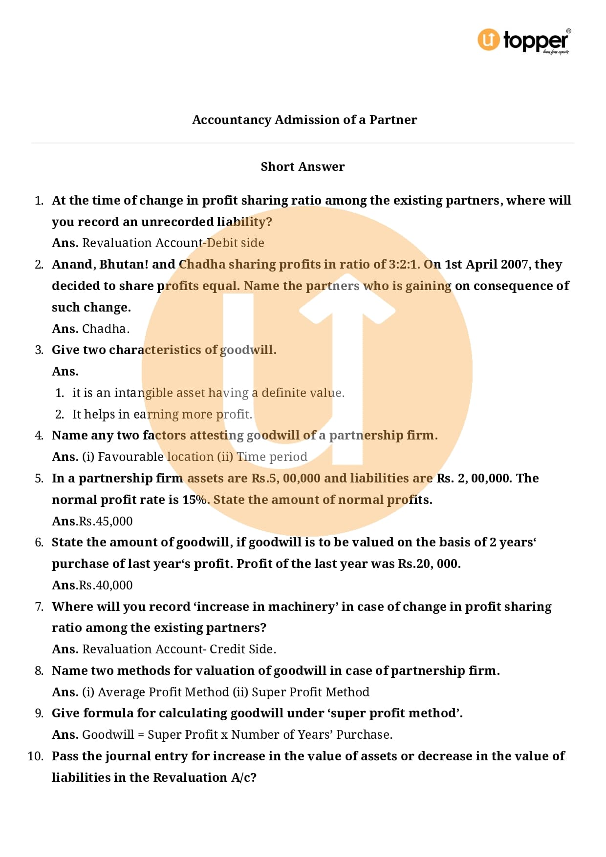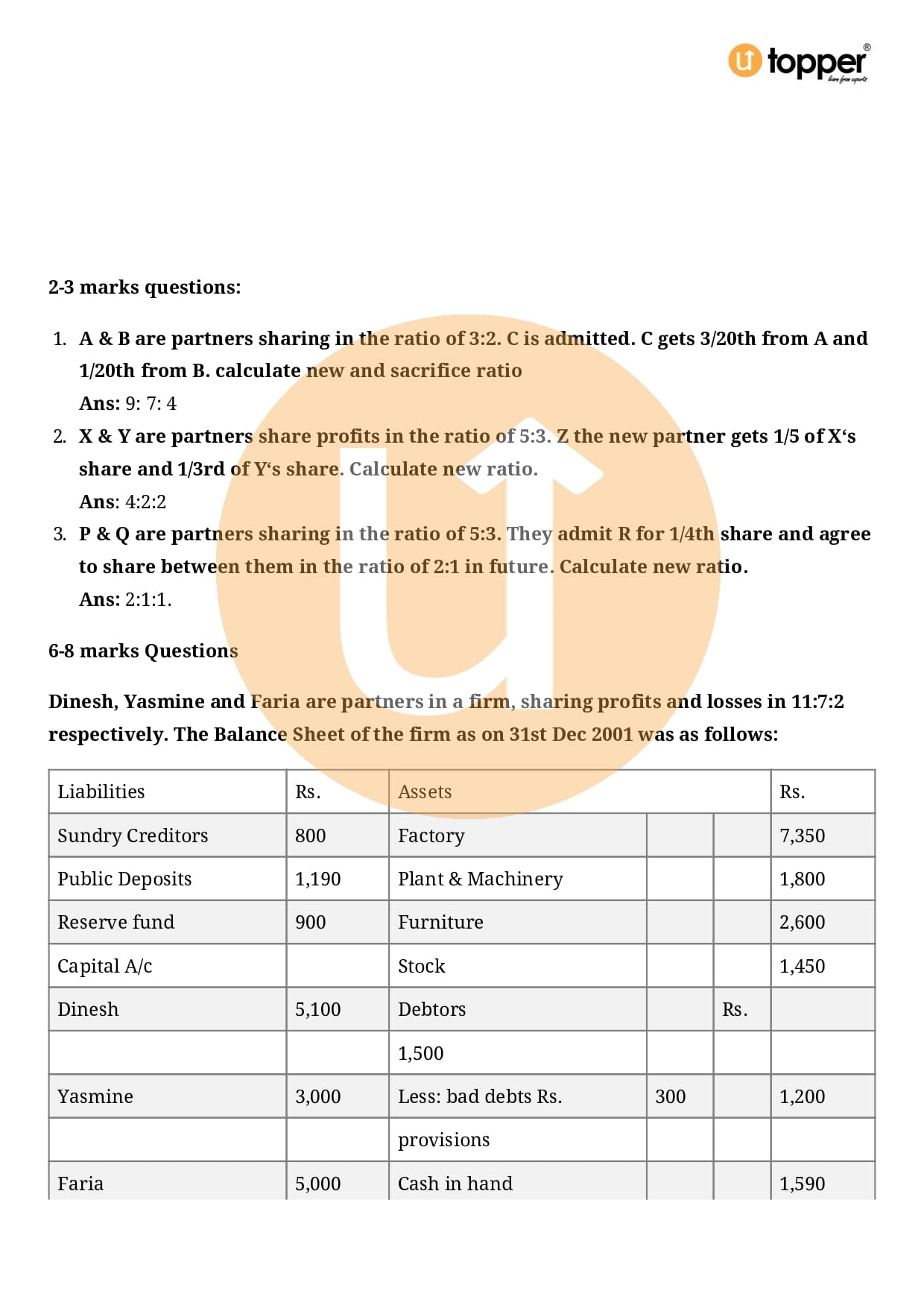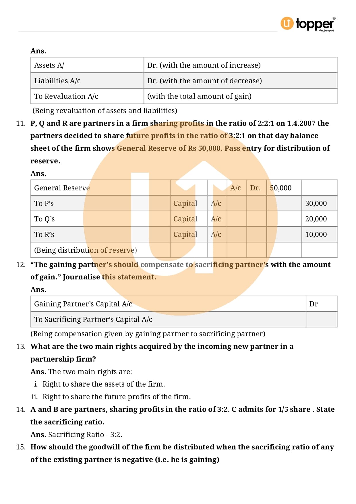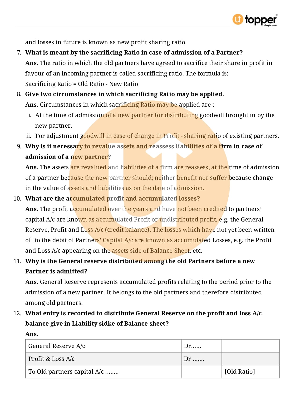 Class 12 Accountancy Important Question CBSE Chapter 3 – Reconstitution of a Partnership Firm – Admission of a partner