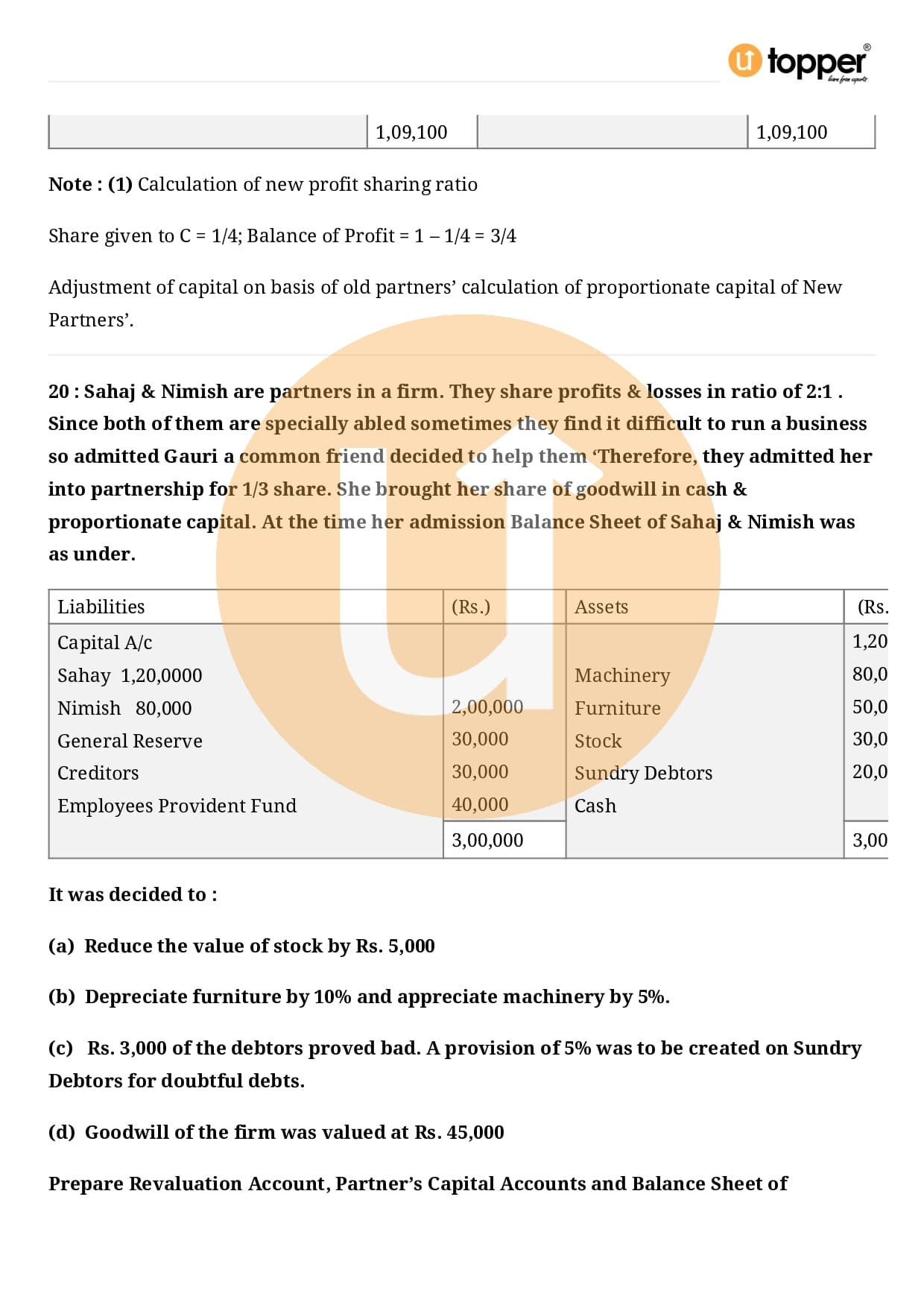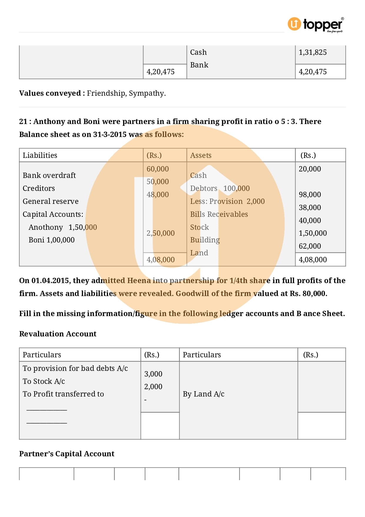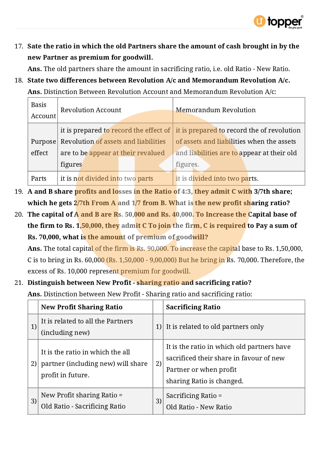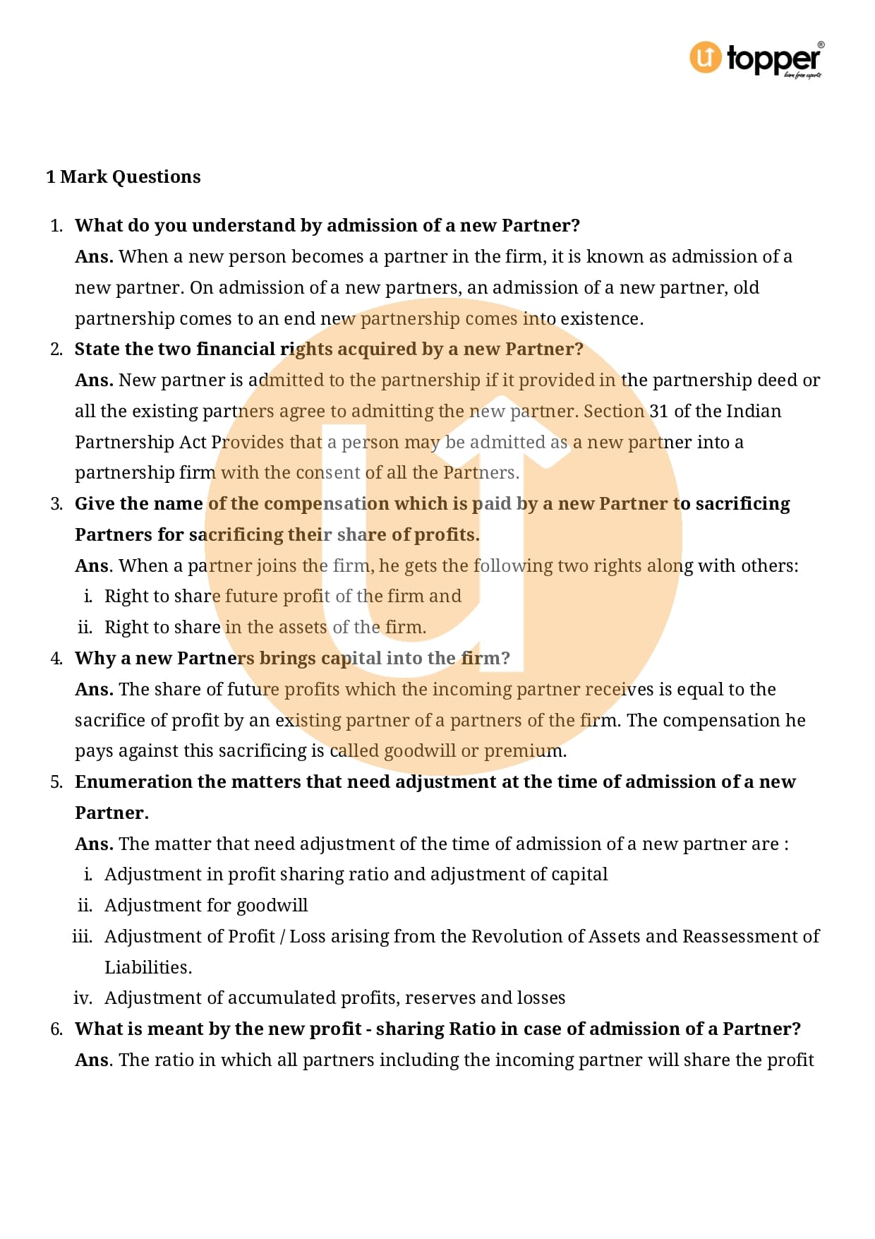 Class 12 Accountancy Important Question CBSE Chapter 3 – Reconstitution of a Partnership Firm – Admission of a partner