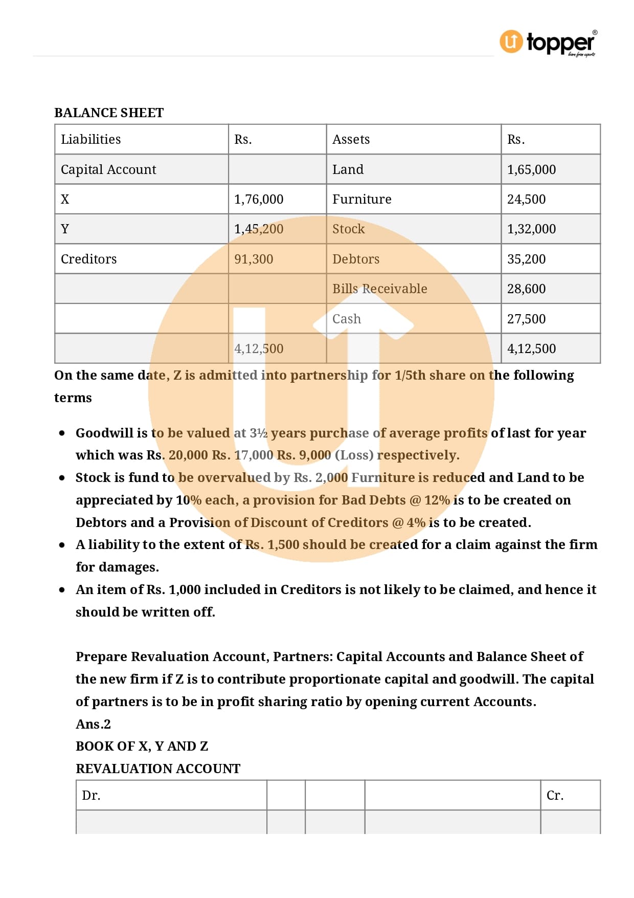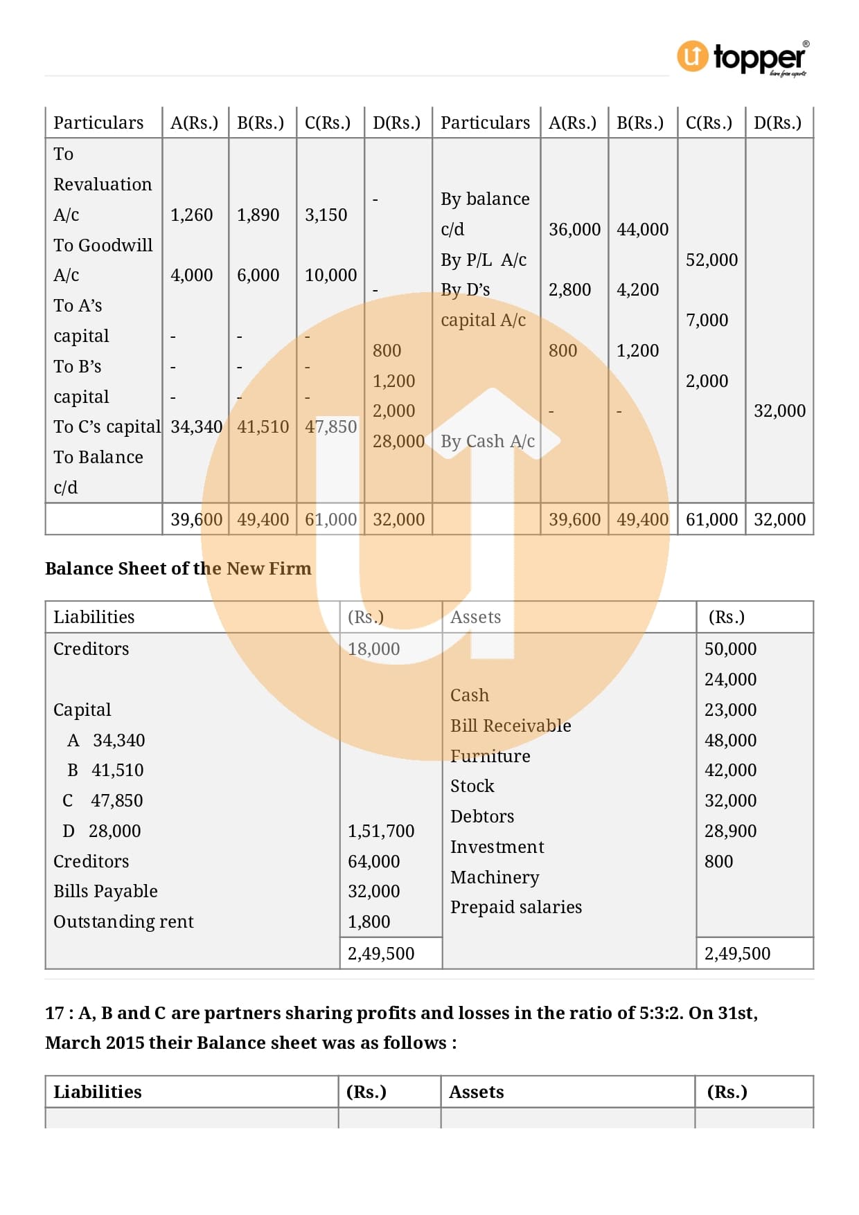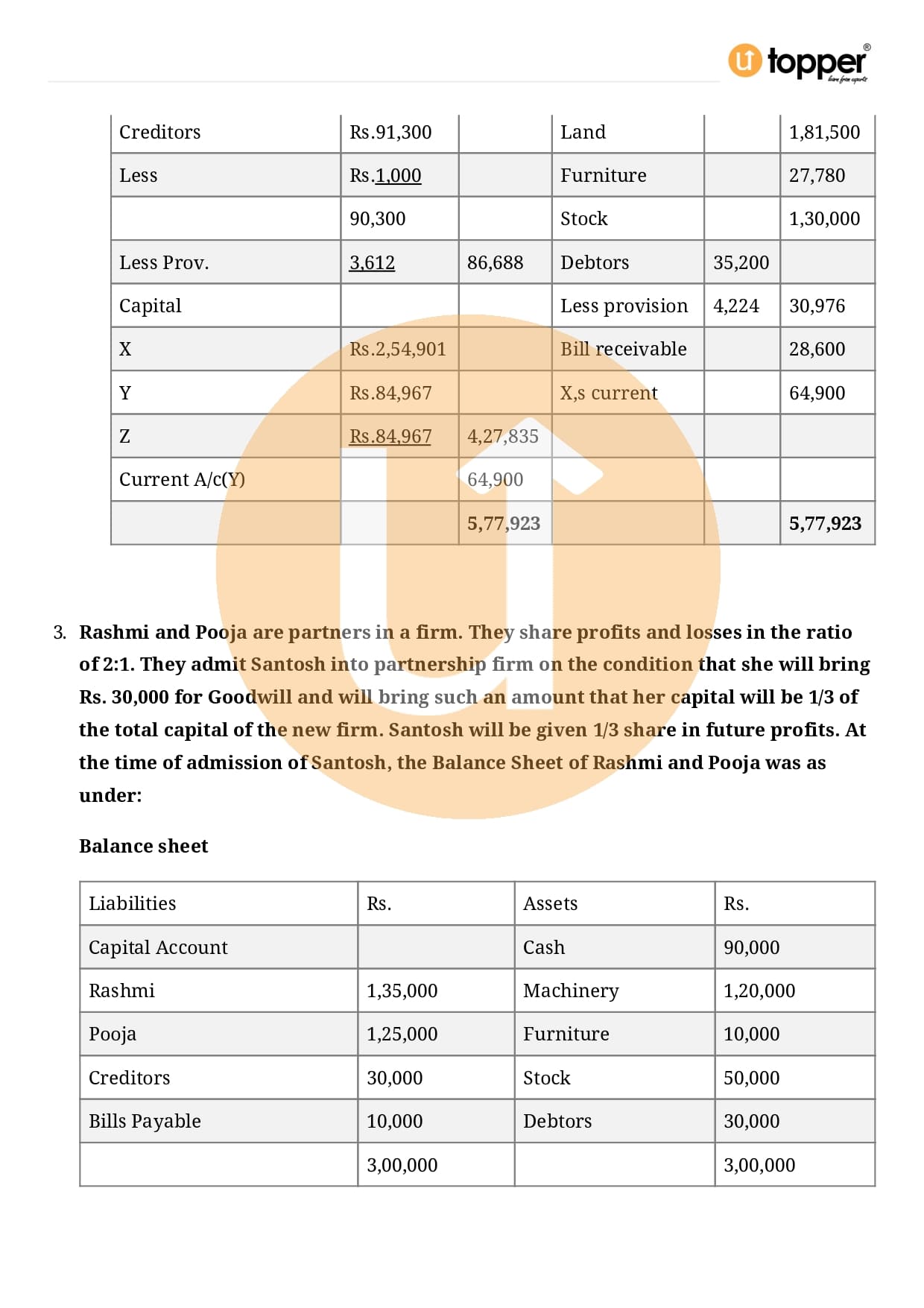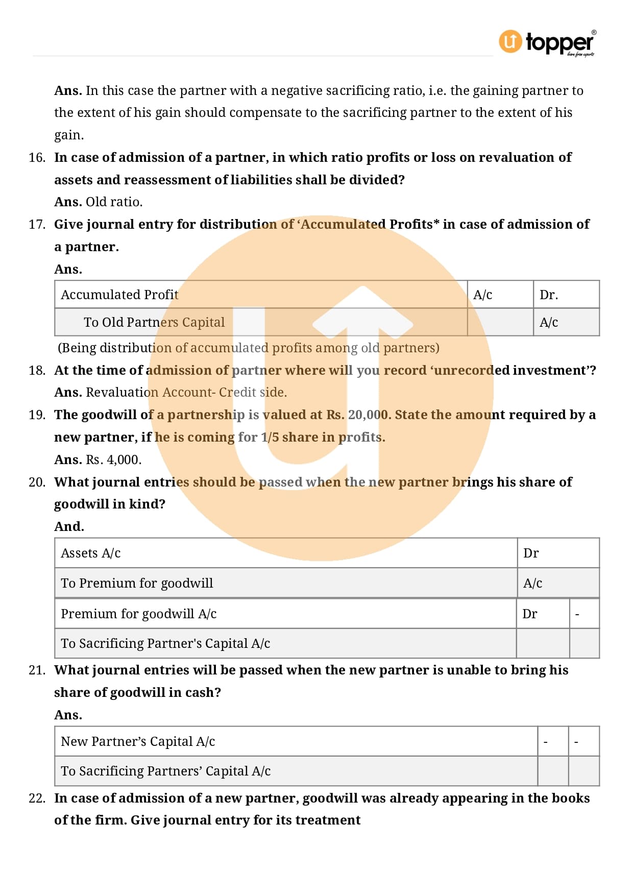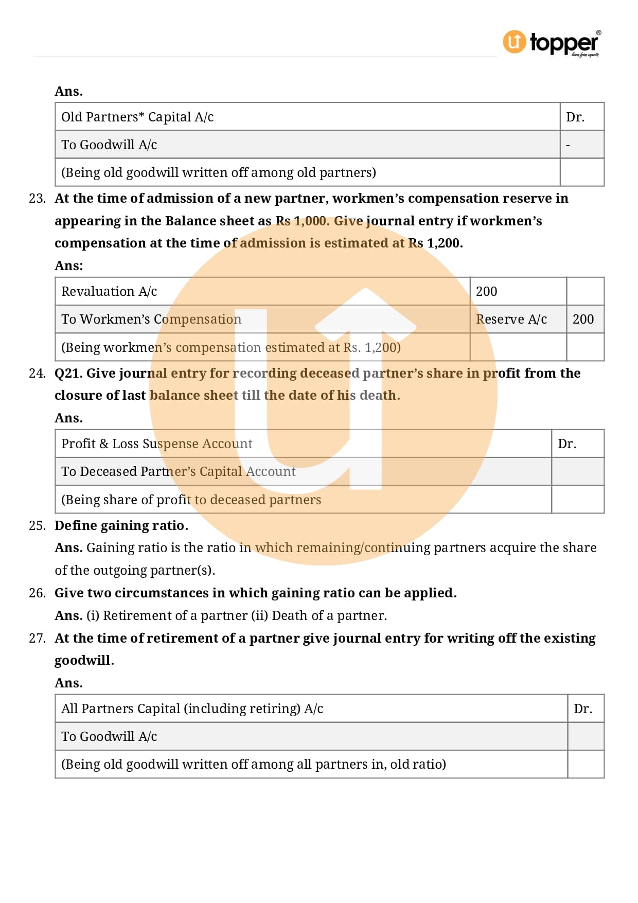 Class 12 Accountancy Important Question CBSE Chapter 3 – Reconstitution of a Partnership Firm – Admission of a partner