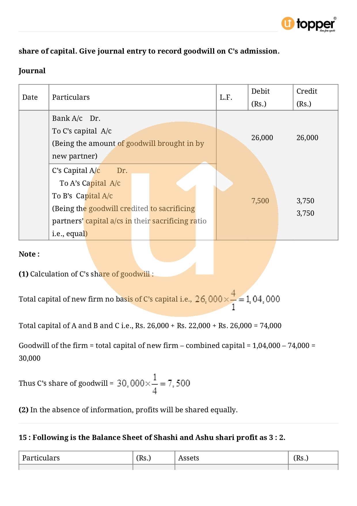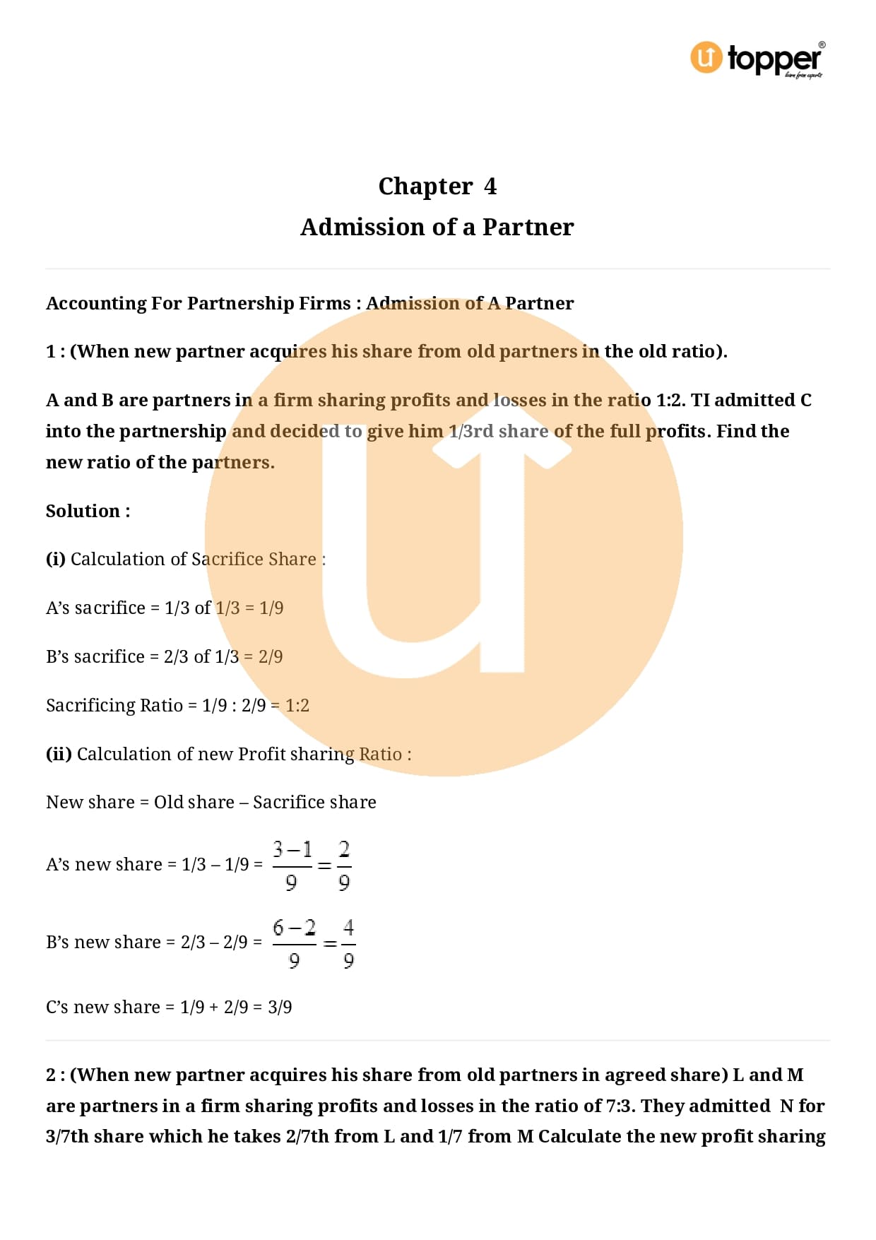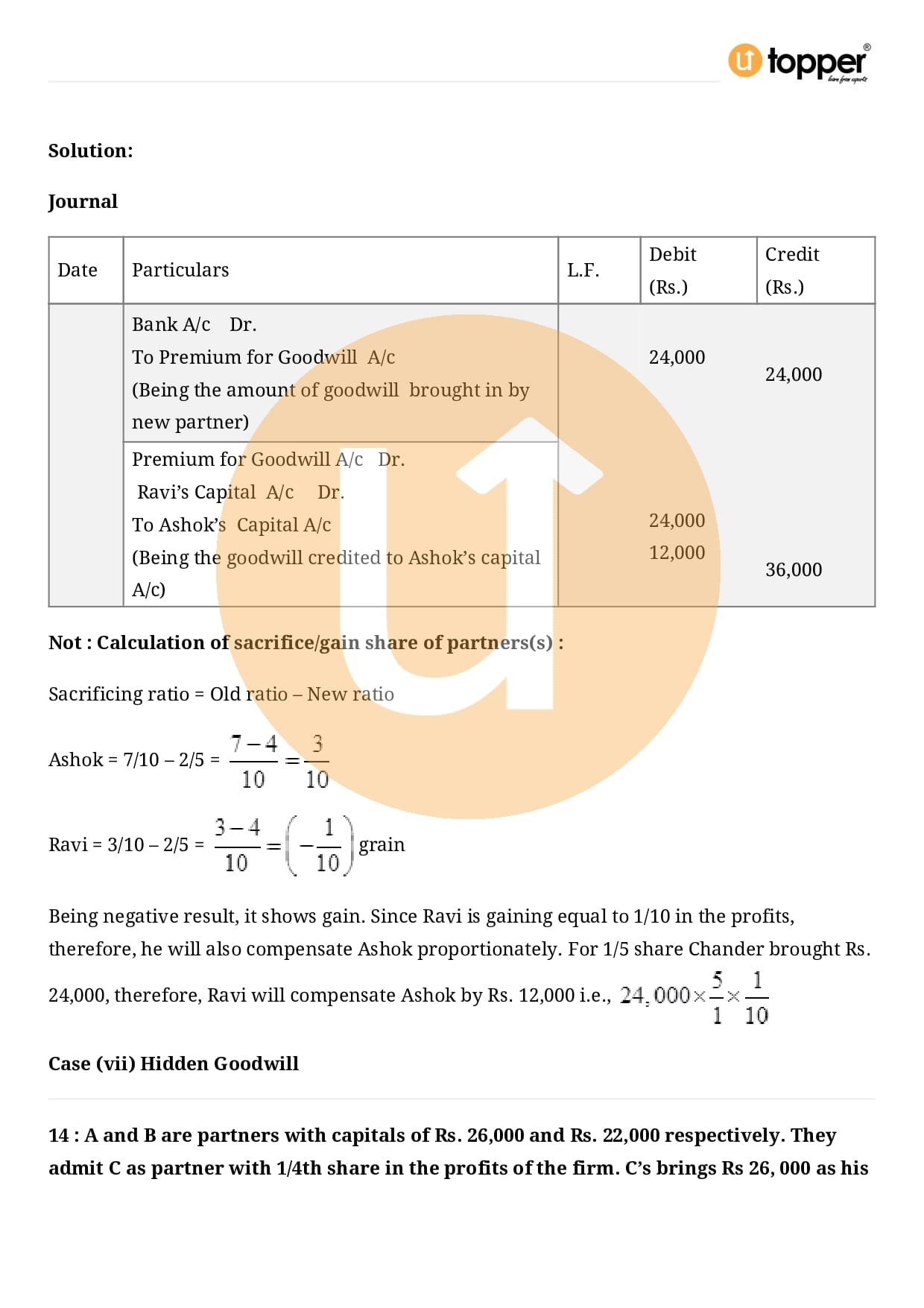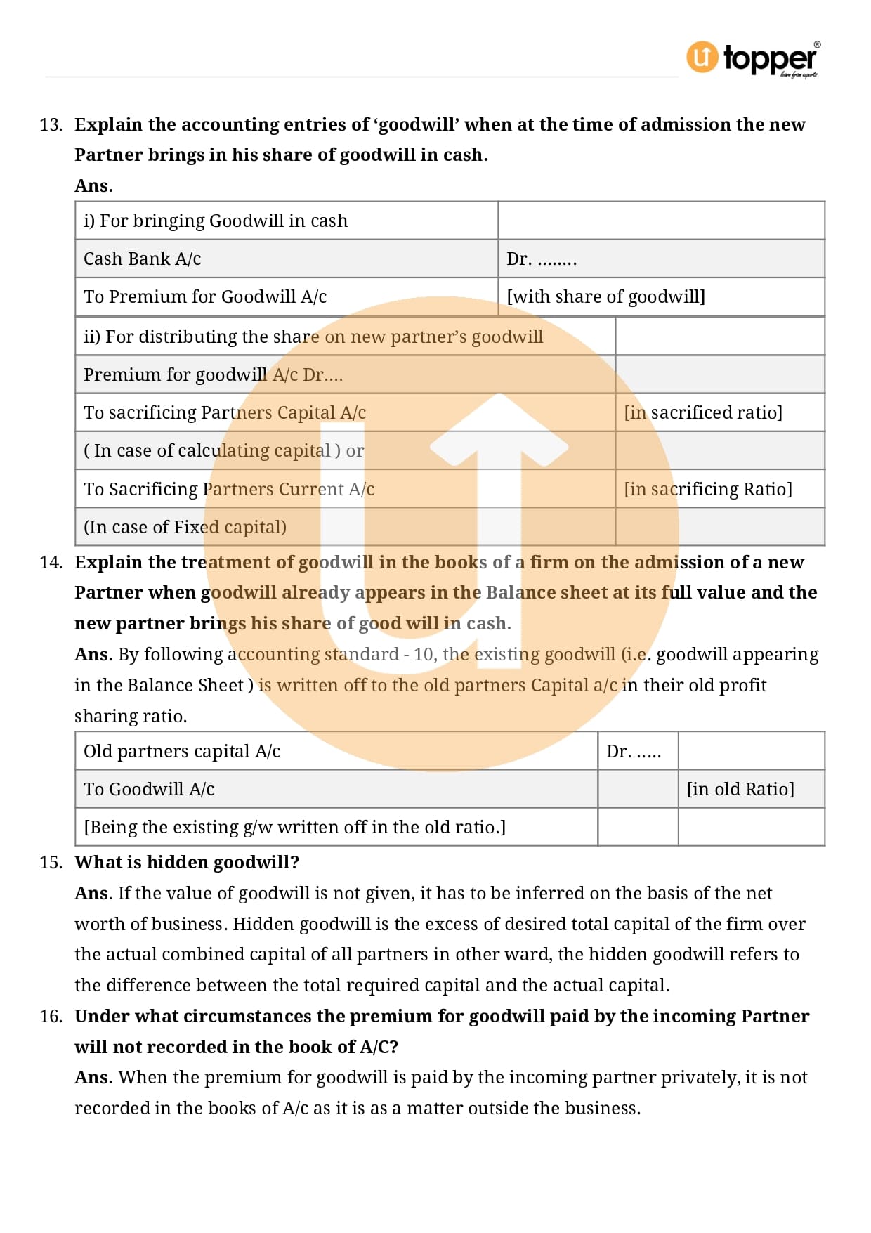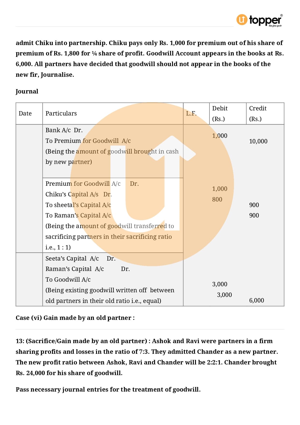 Class 12 Accountancy Important Question CBSE Chapter 3 – Reconstitution of a Partnership Firm – Admission of a partner