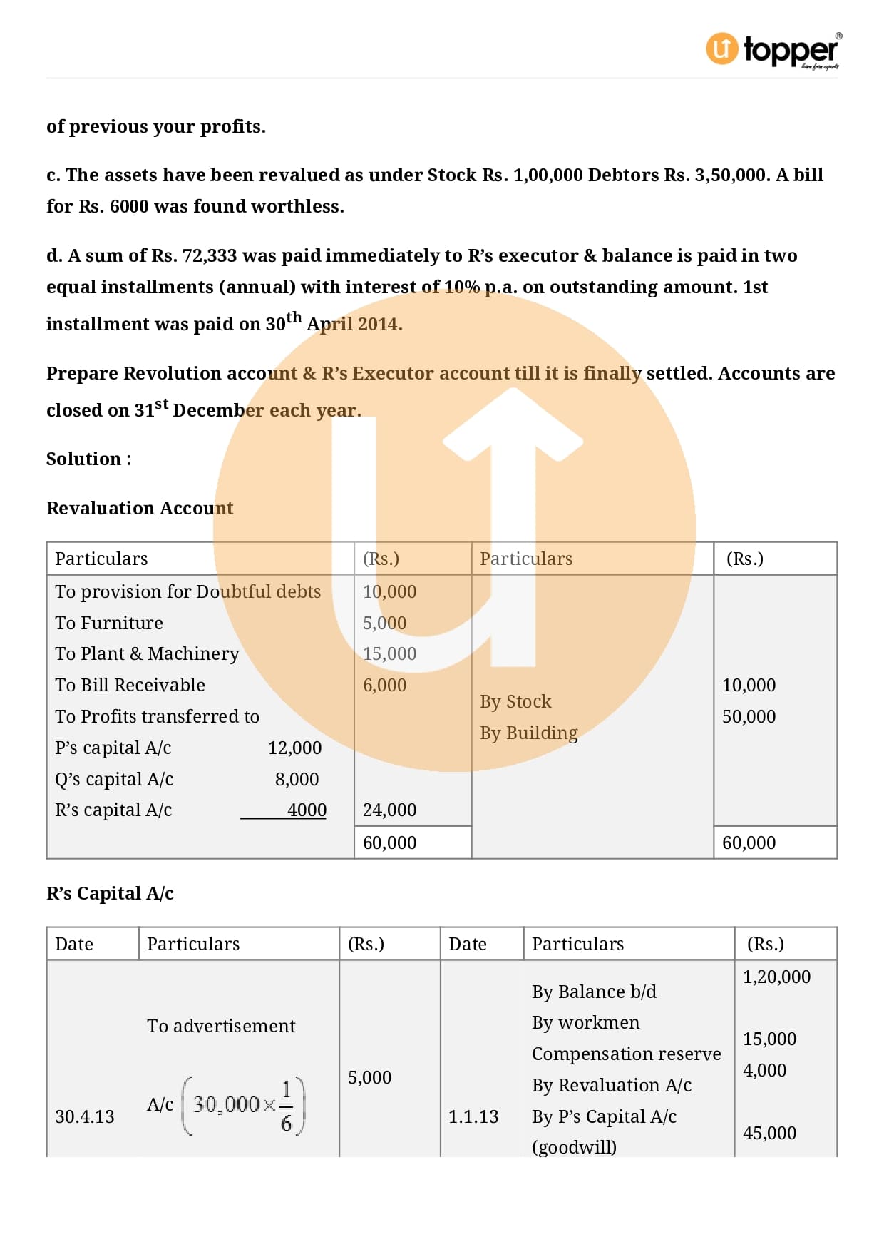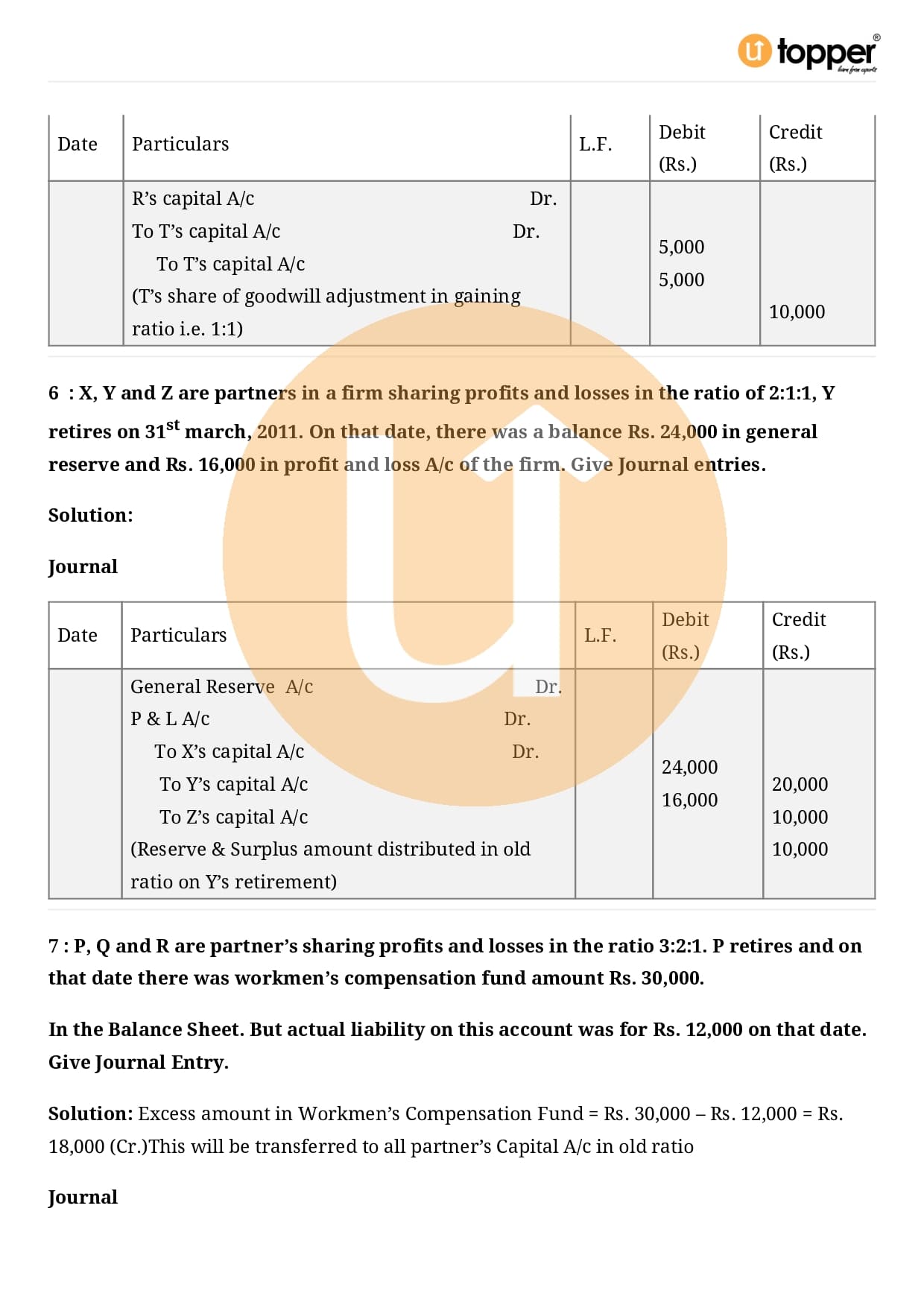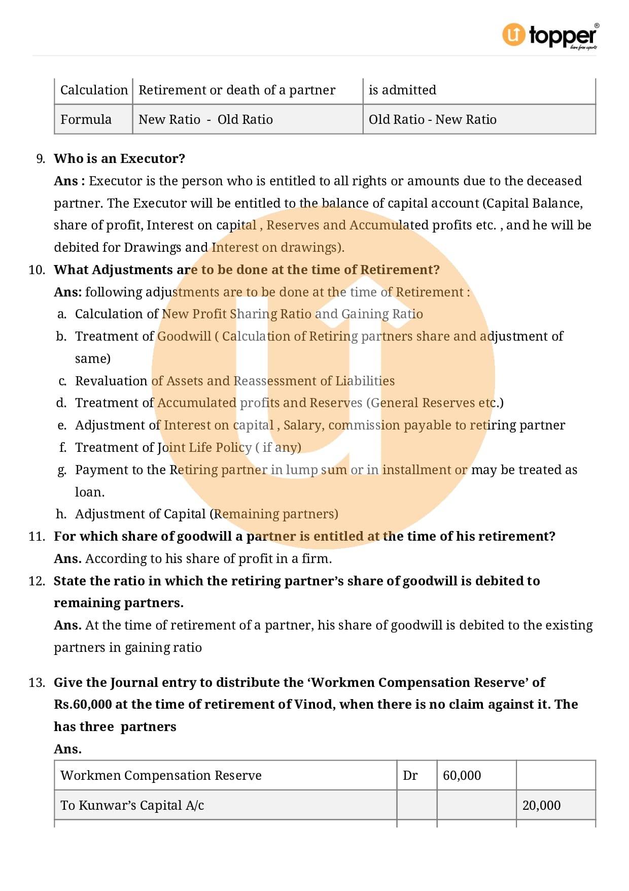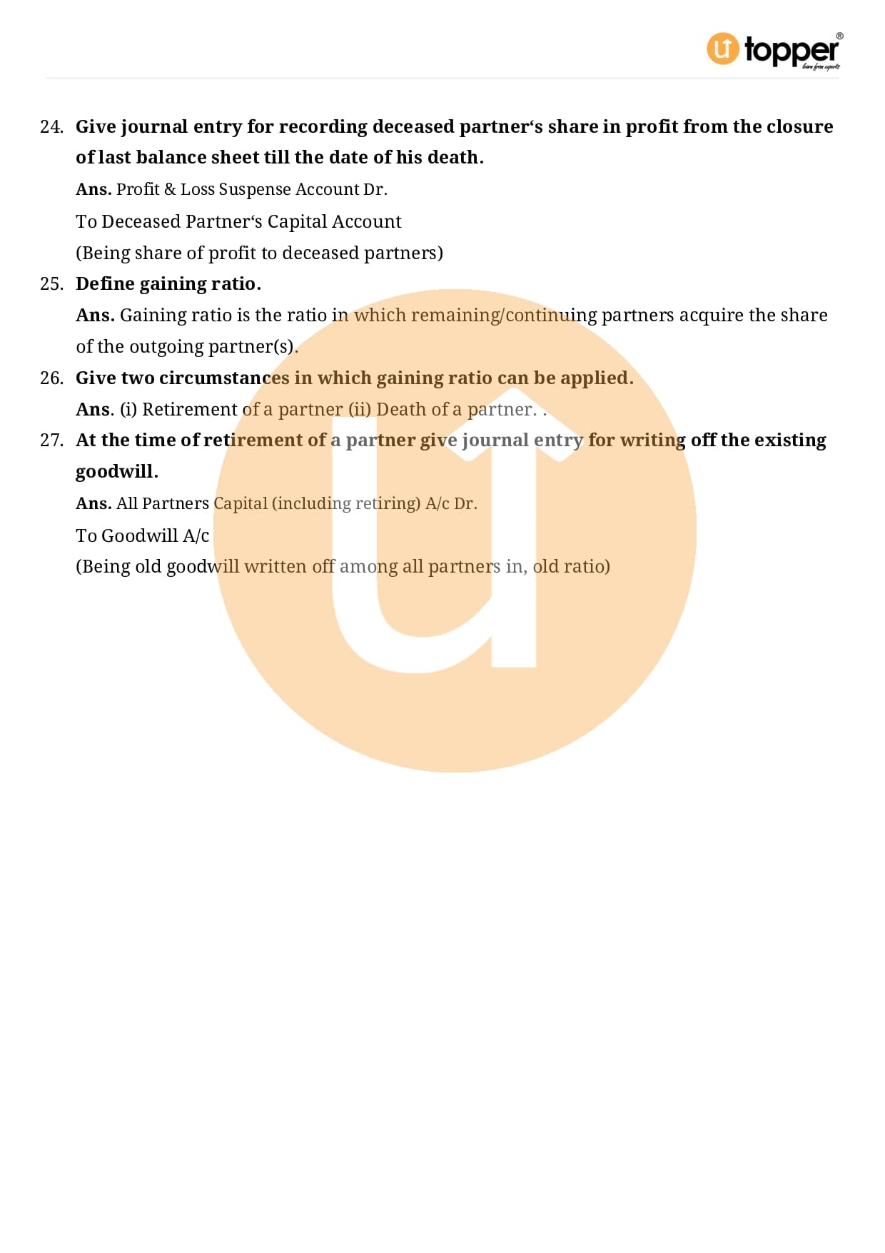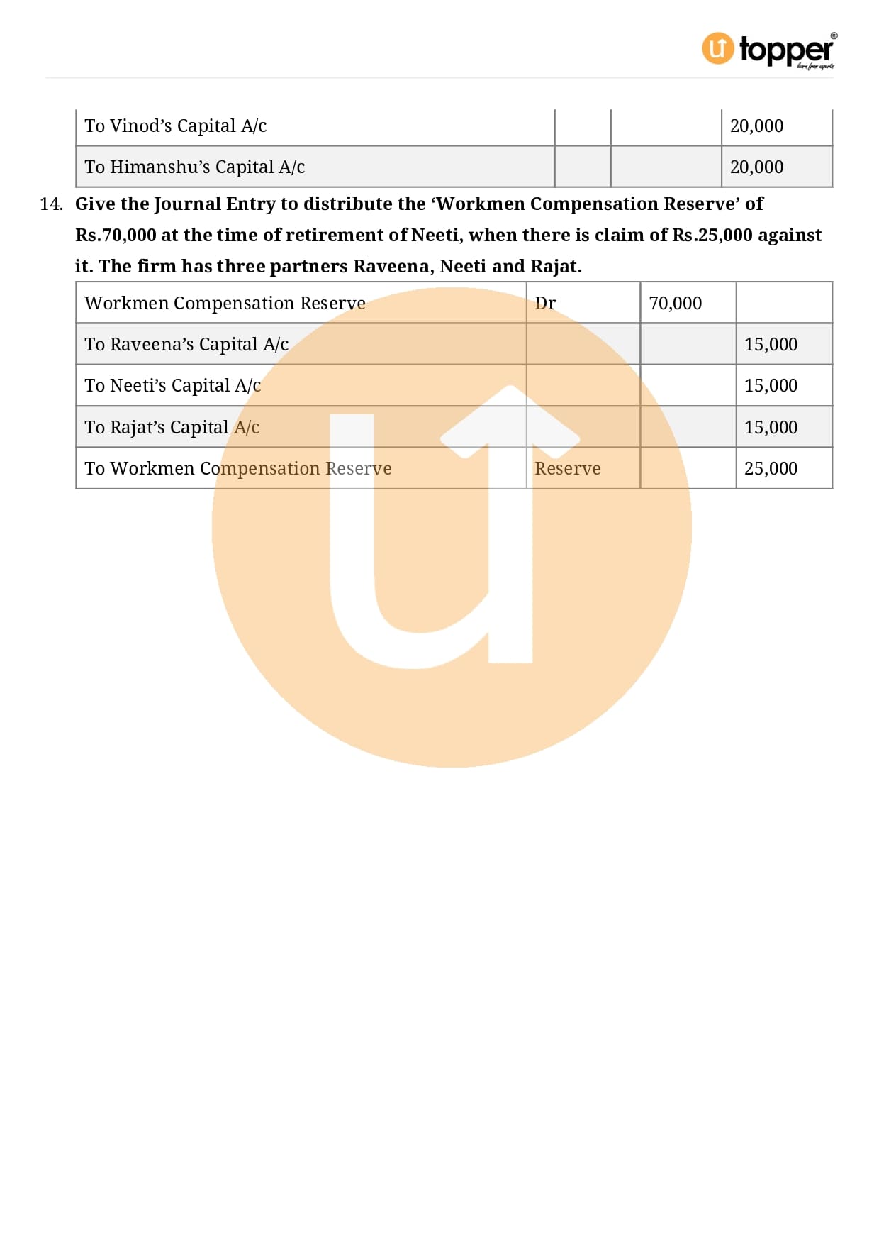 Class 12 Accountancy Important Question CBSE Chapter 4 – Reconstitution of a Partnership Firm – Retirement /Death of a Partner