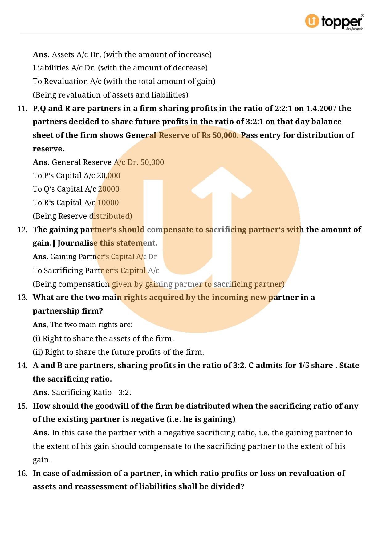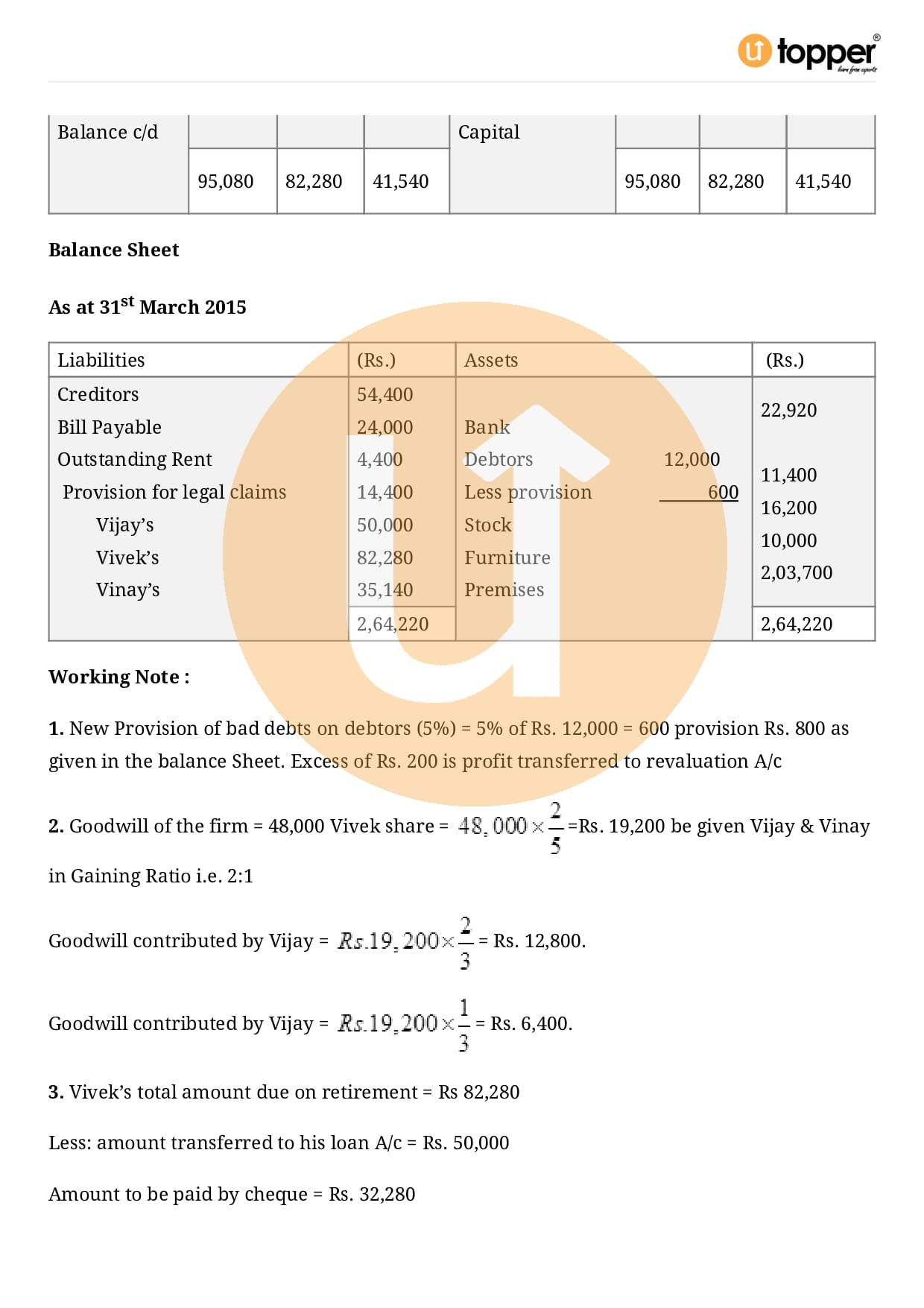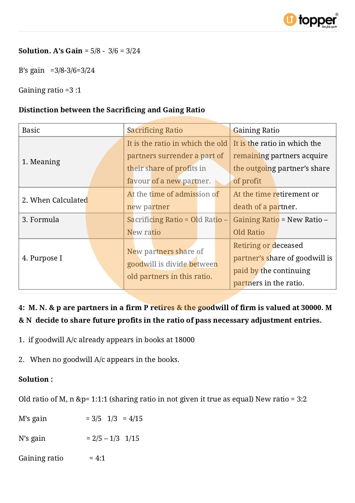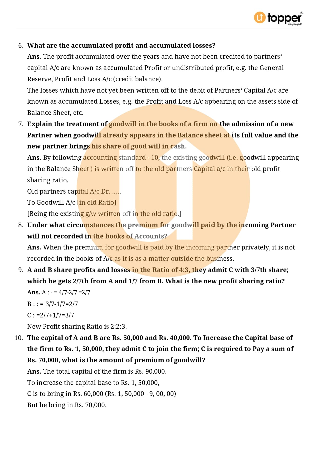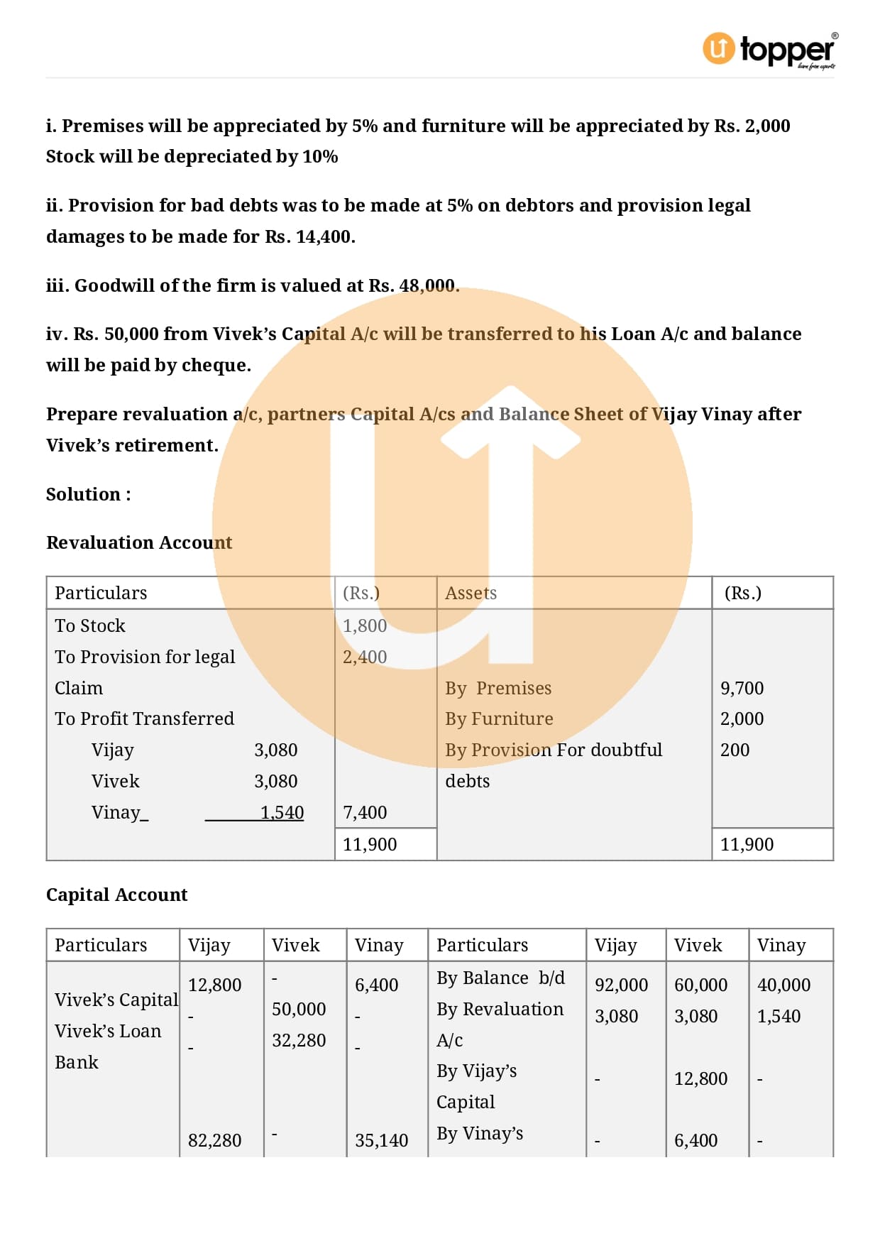 Class 12 Accountancy Important Question CBSE Chapter 4 – Reconstitution of a Partnership Firm – Retirement /Death of a Partner