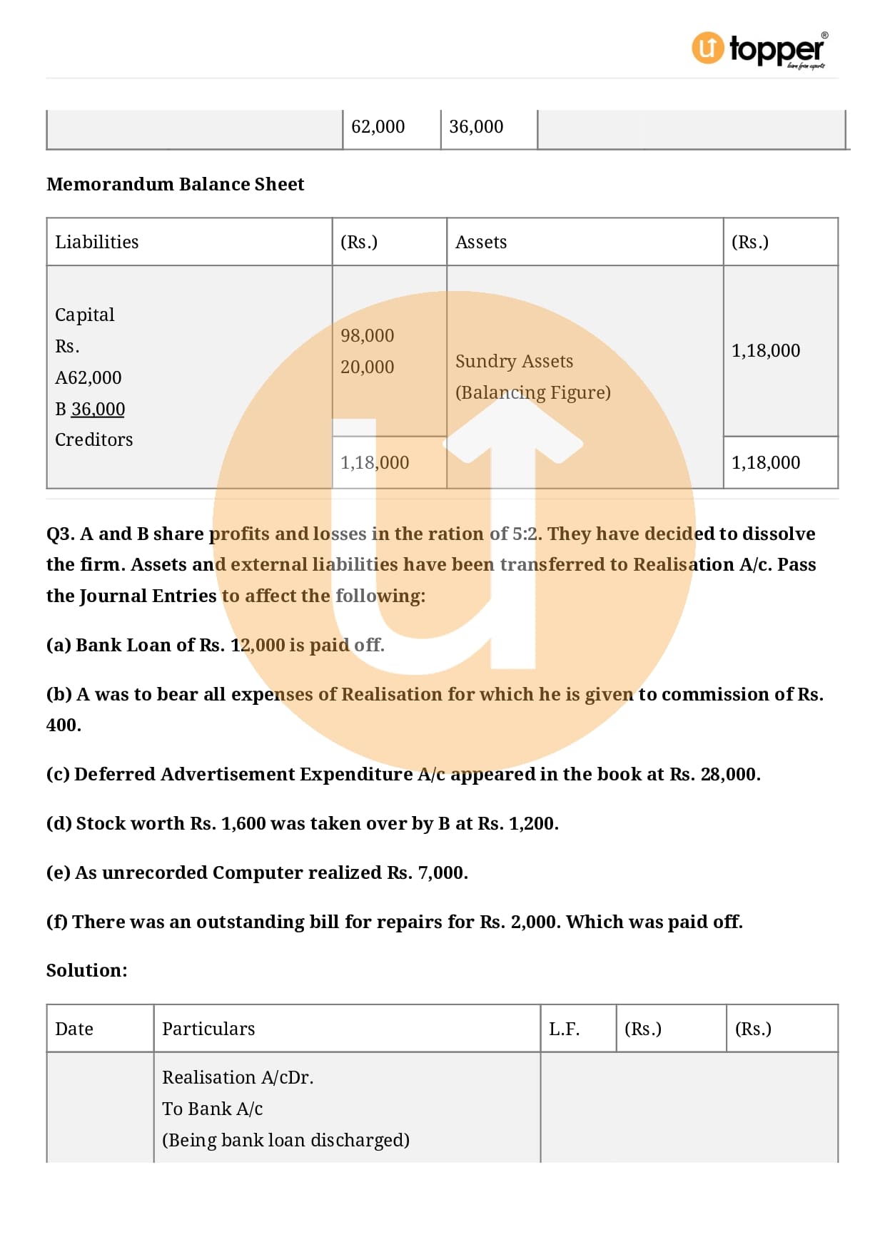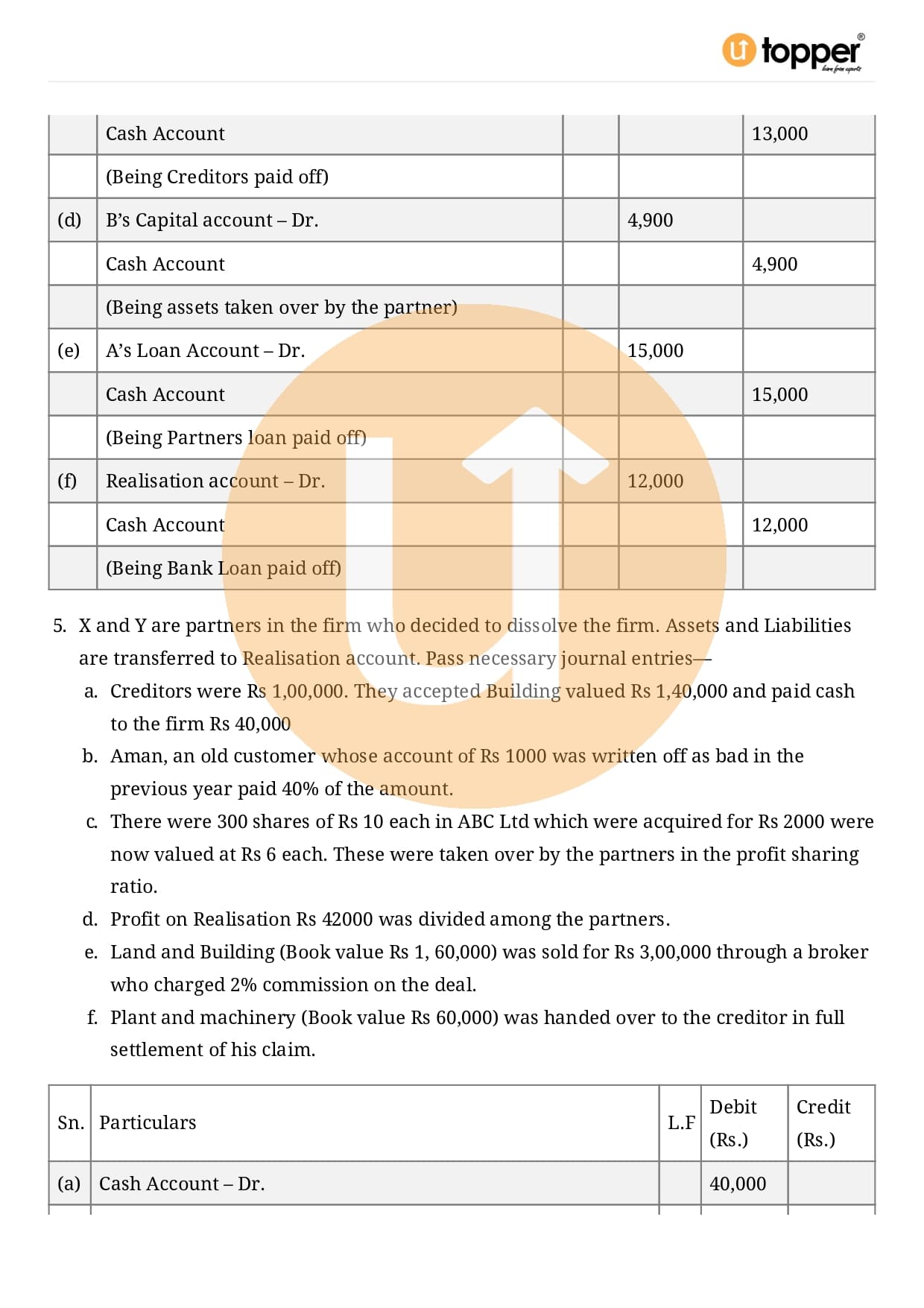 Class 12 Accountancy Important Question CBSE Chapter 5 – Dissolution of Partnership Firm