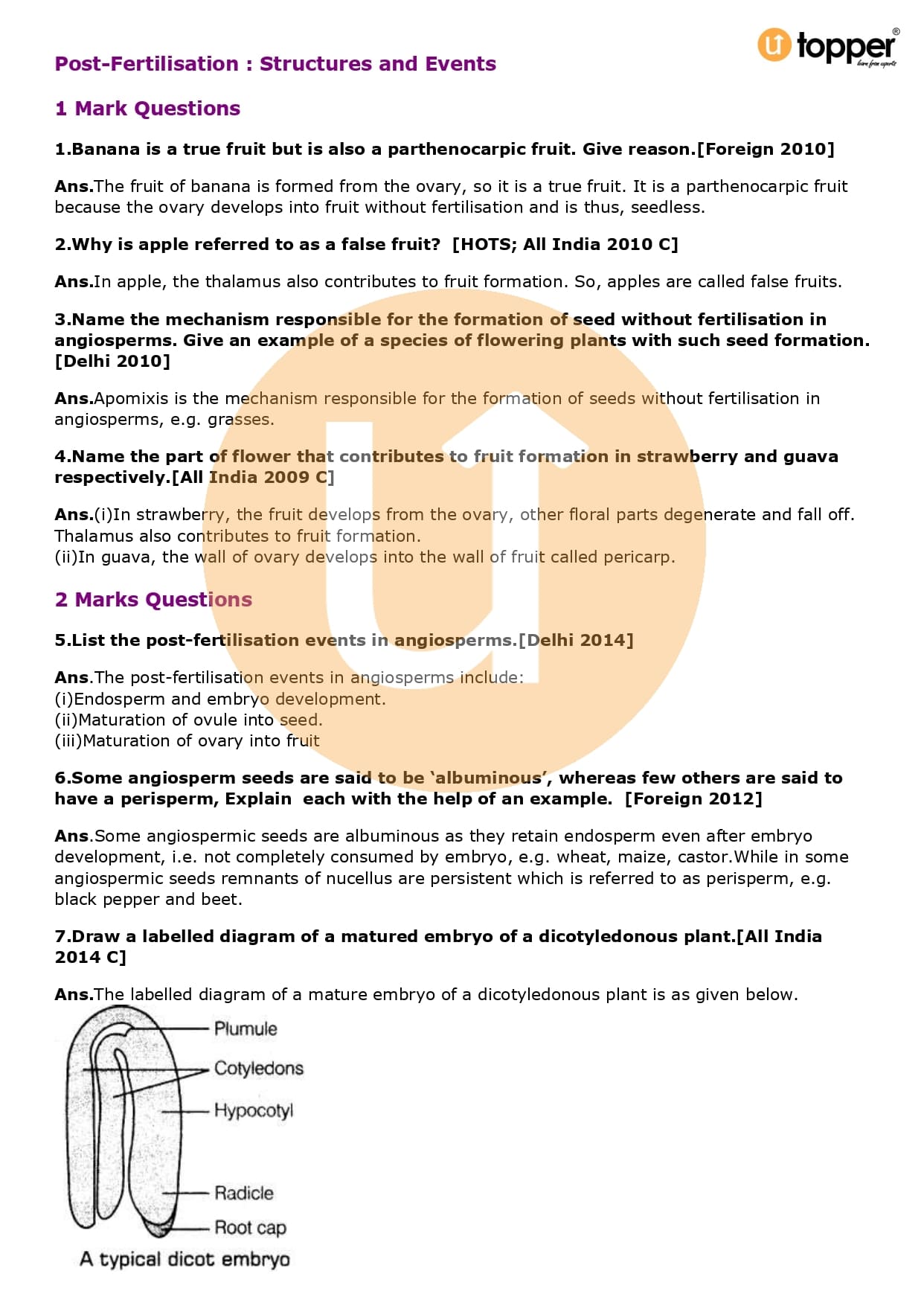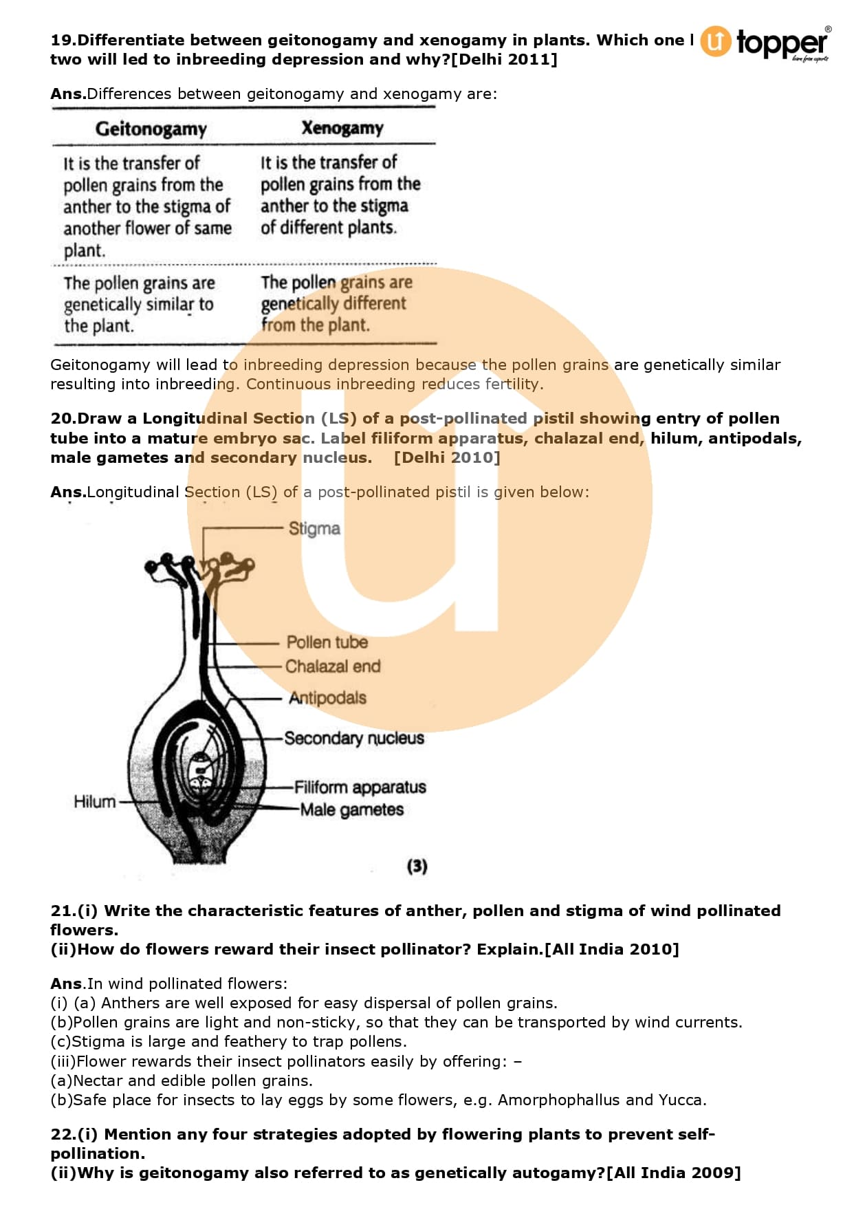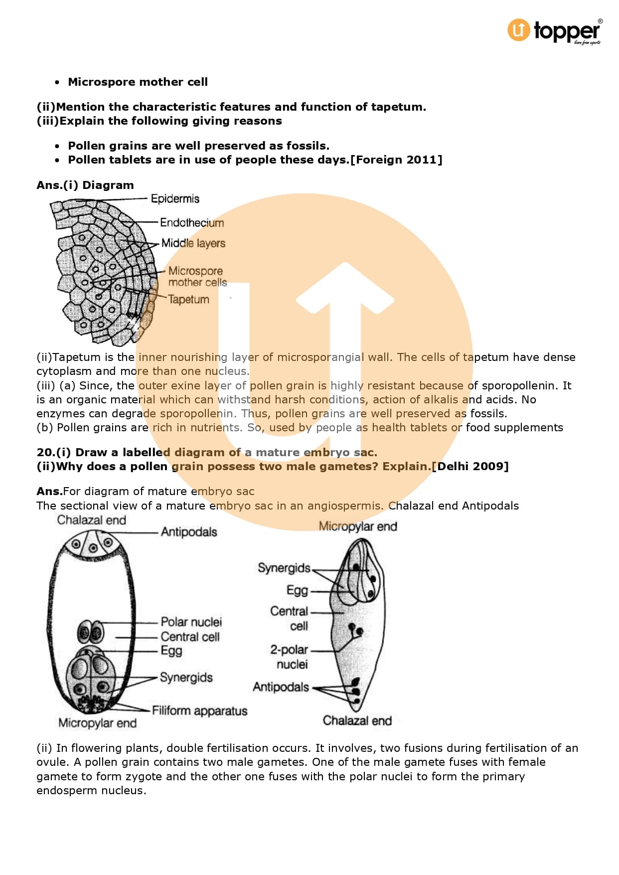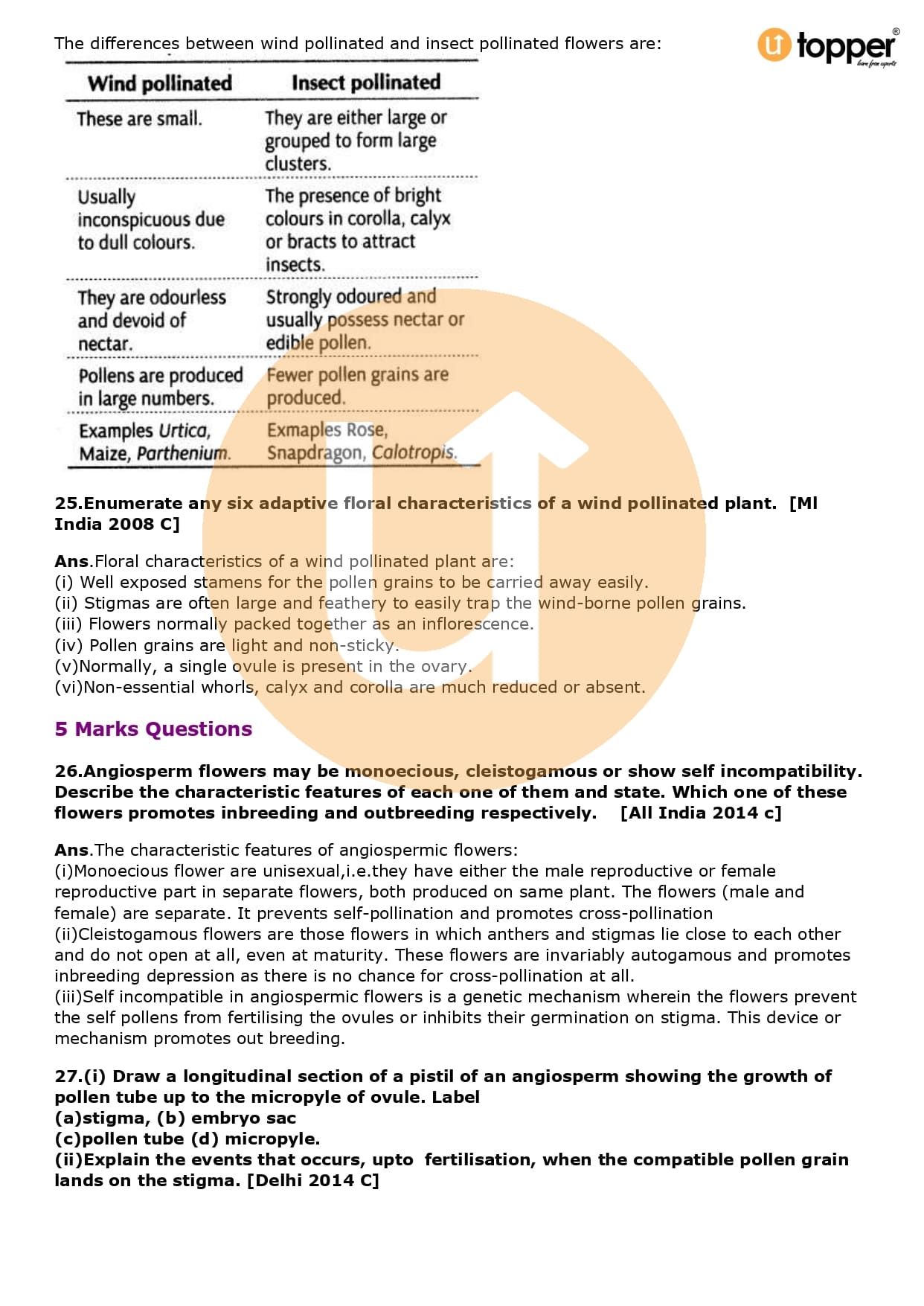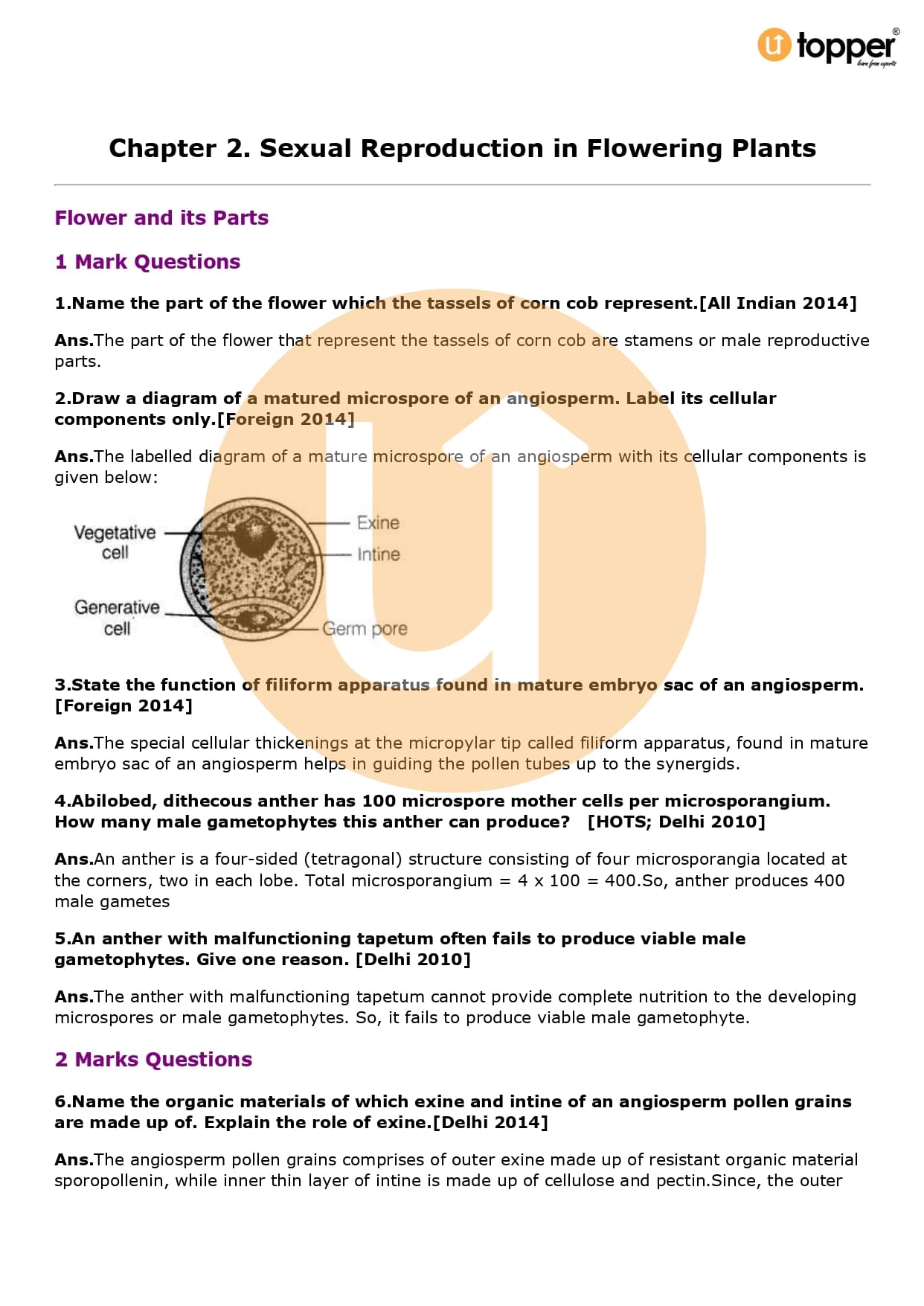 Class 12 Biology Important Question CBSE Chapter 2 – Sexual Reproduction in Flowering Plants