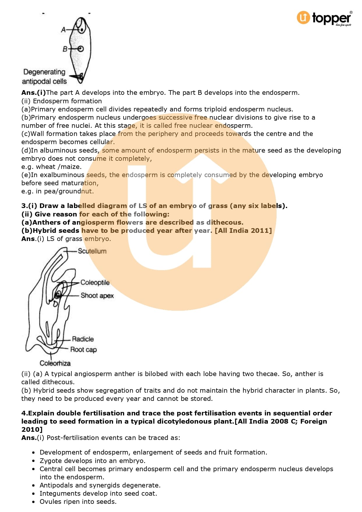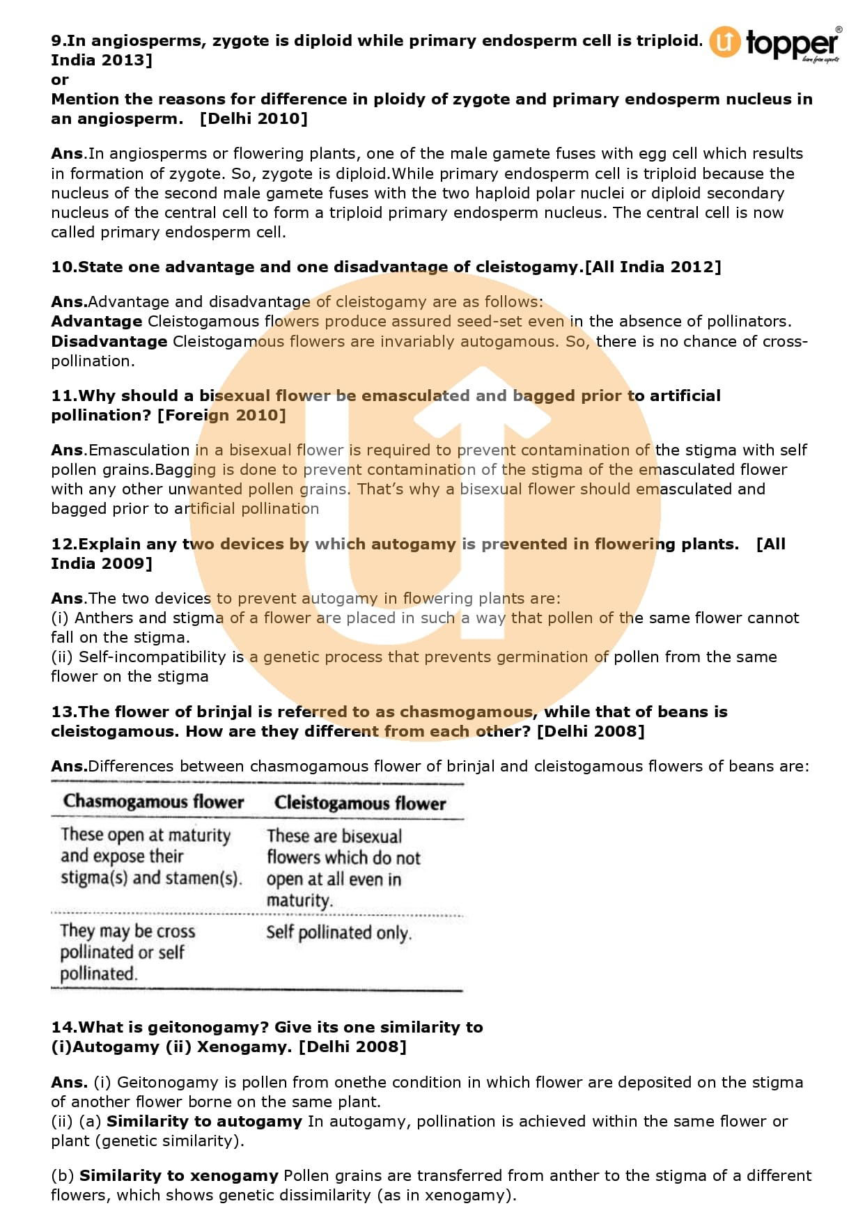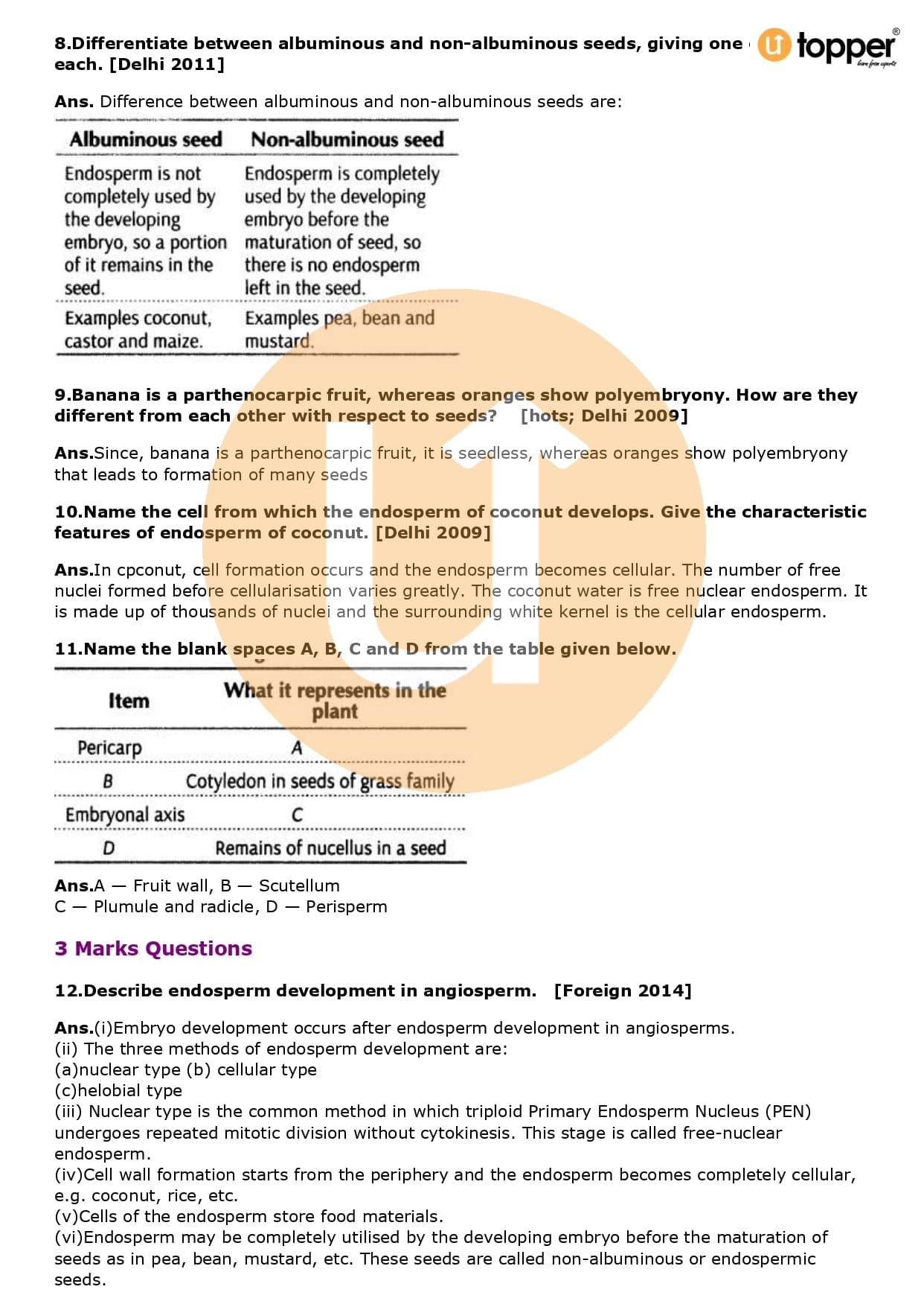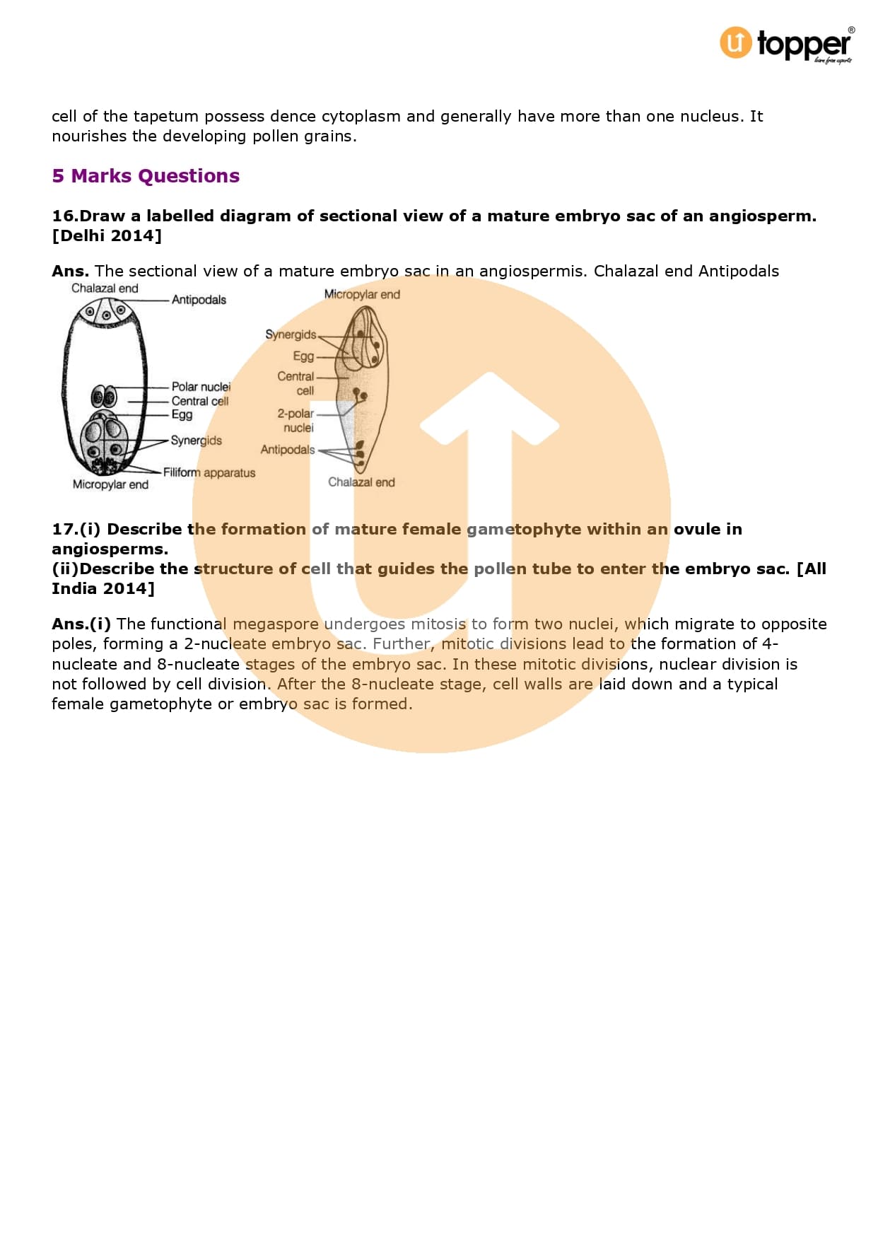 Class 12 Biology Important Question CBSE Chapter 2 – Sexual Reproduction in Flowering Plants