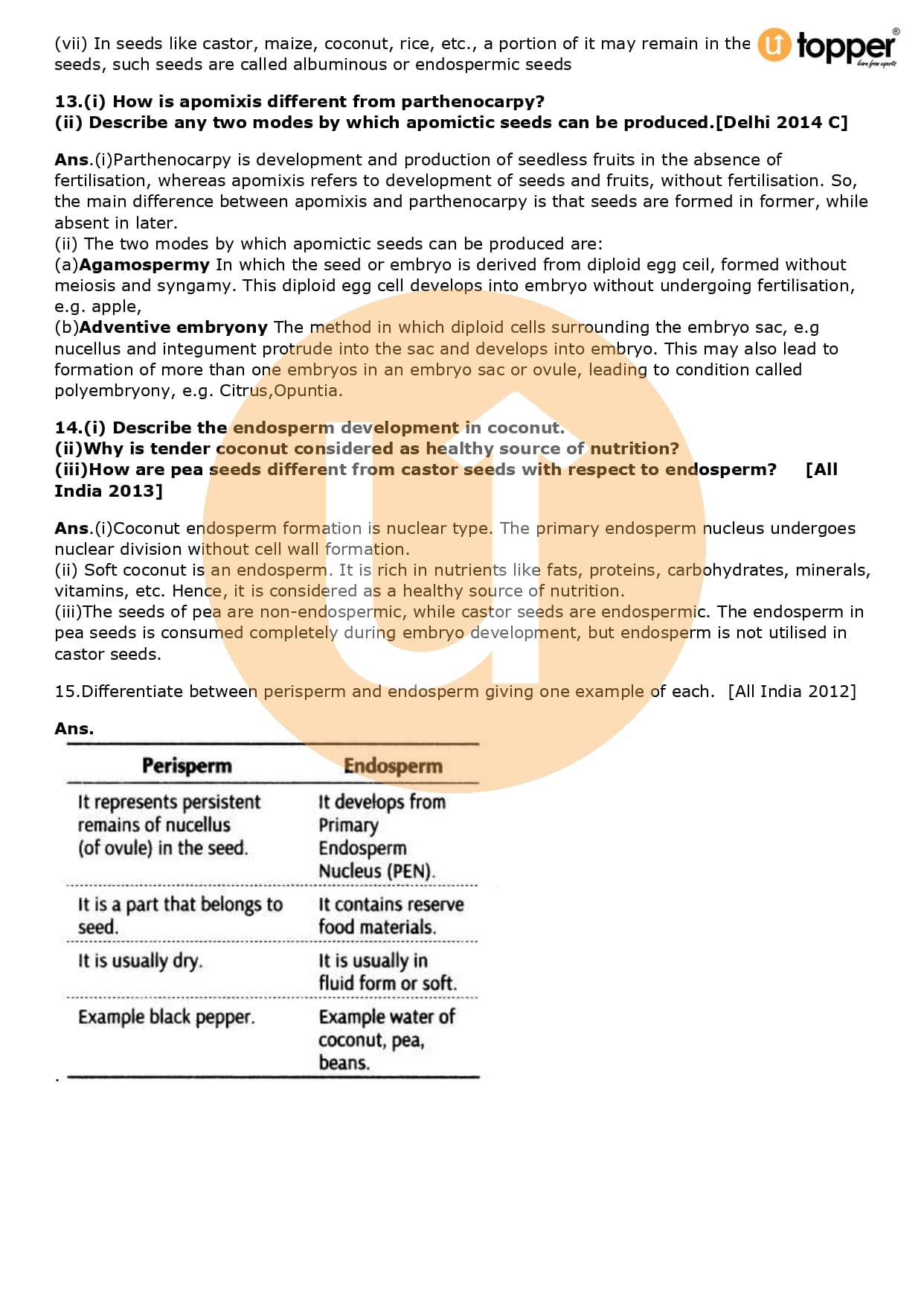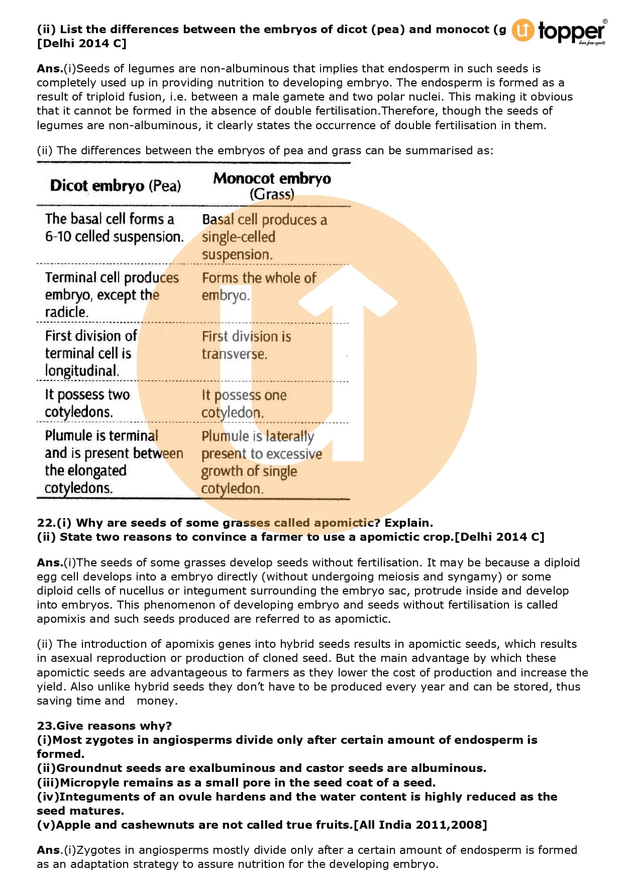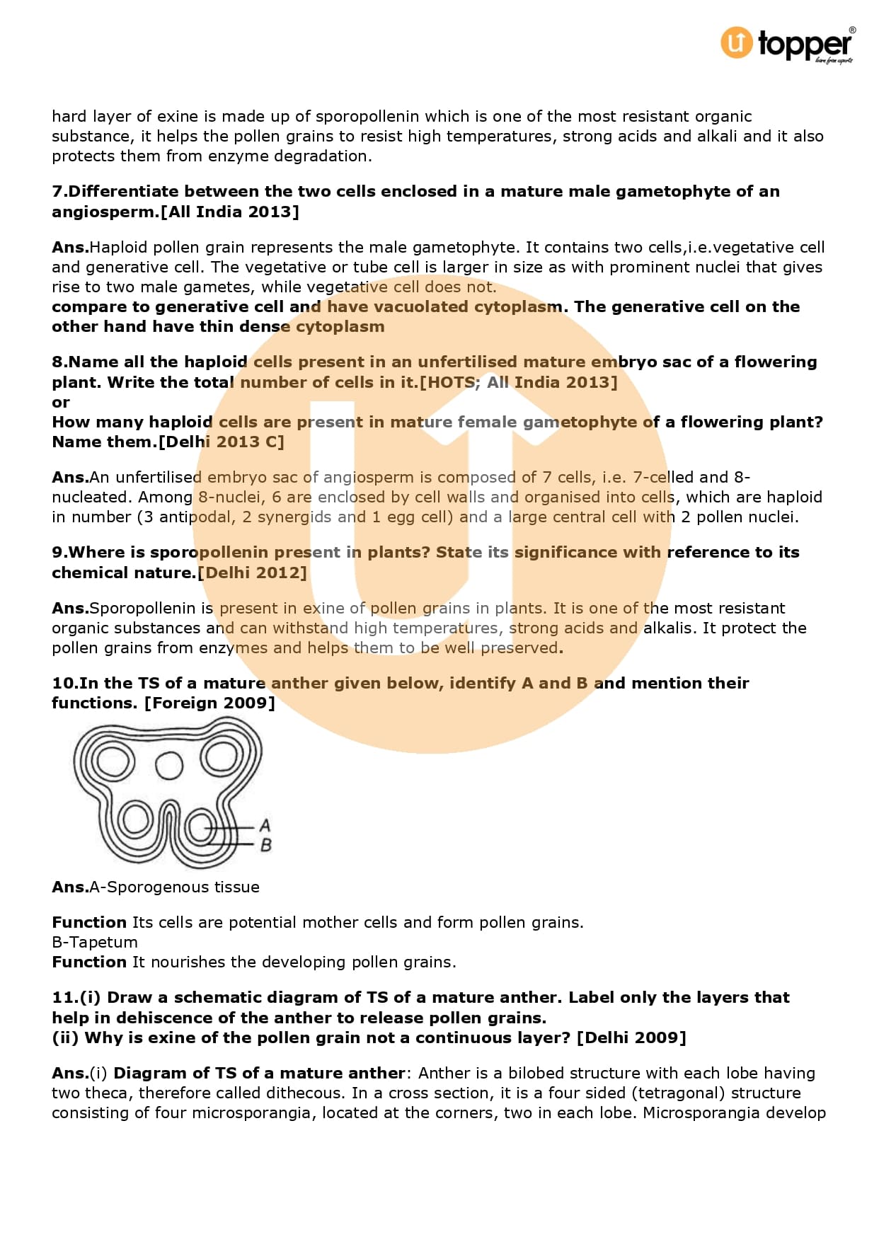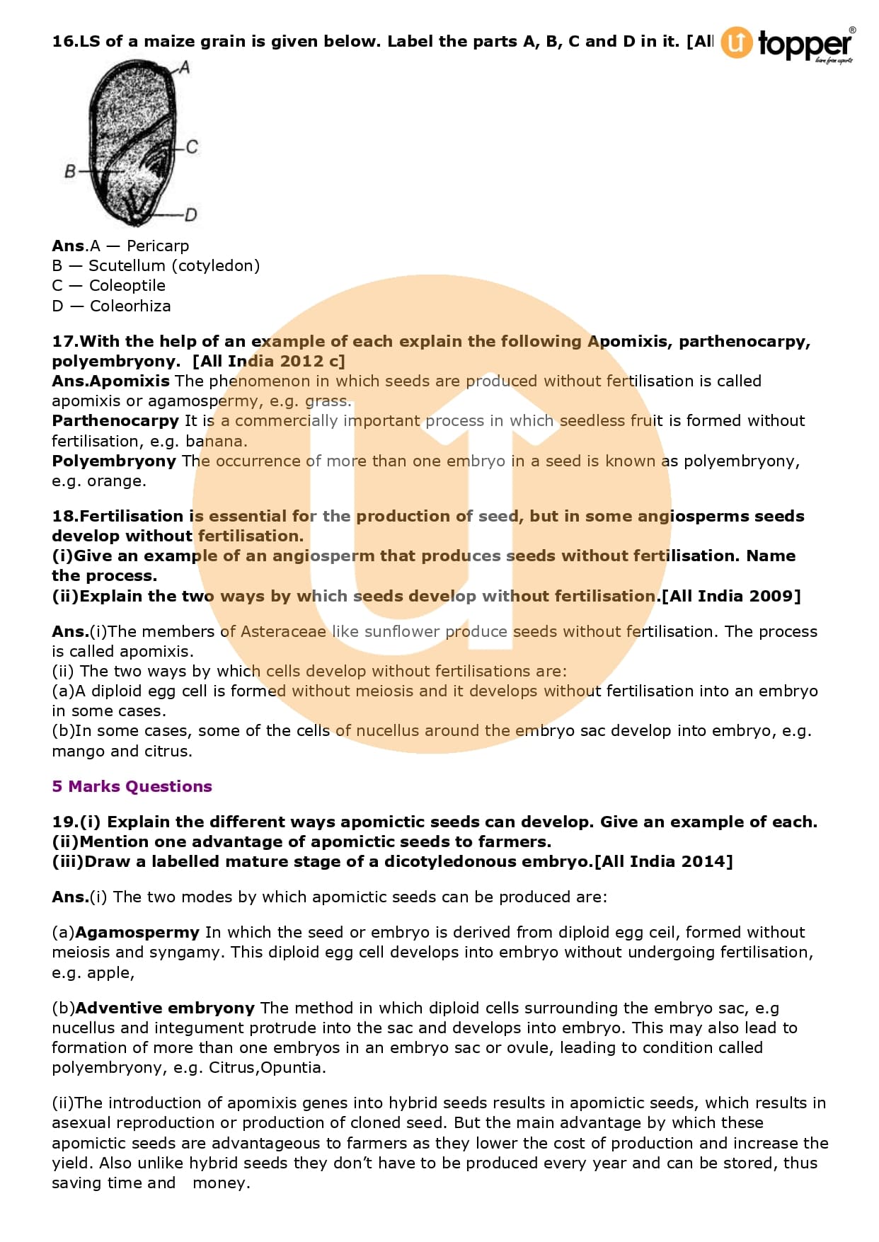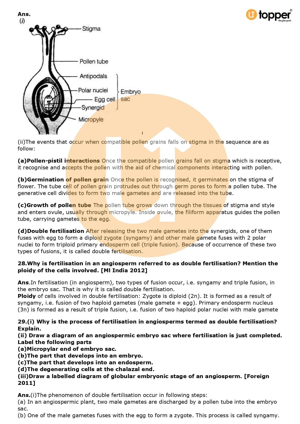 Class 12 Biology Important Question CBSE Chapter 2 – Sexual Reproduction in Flowering Plants