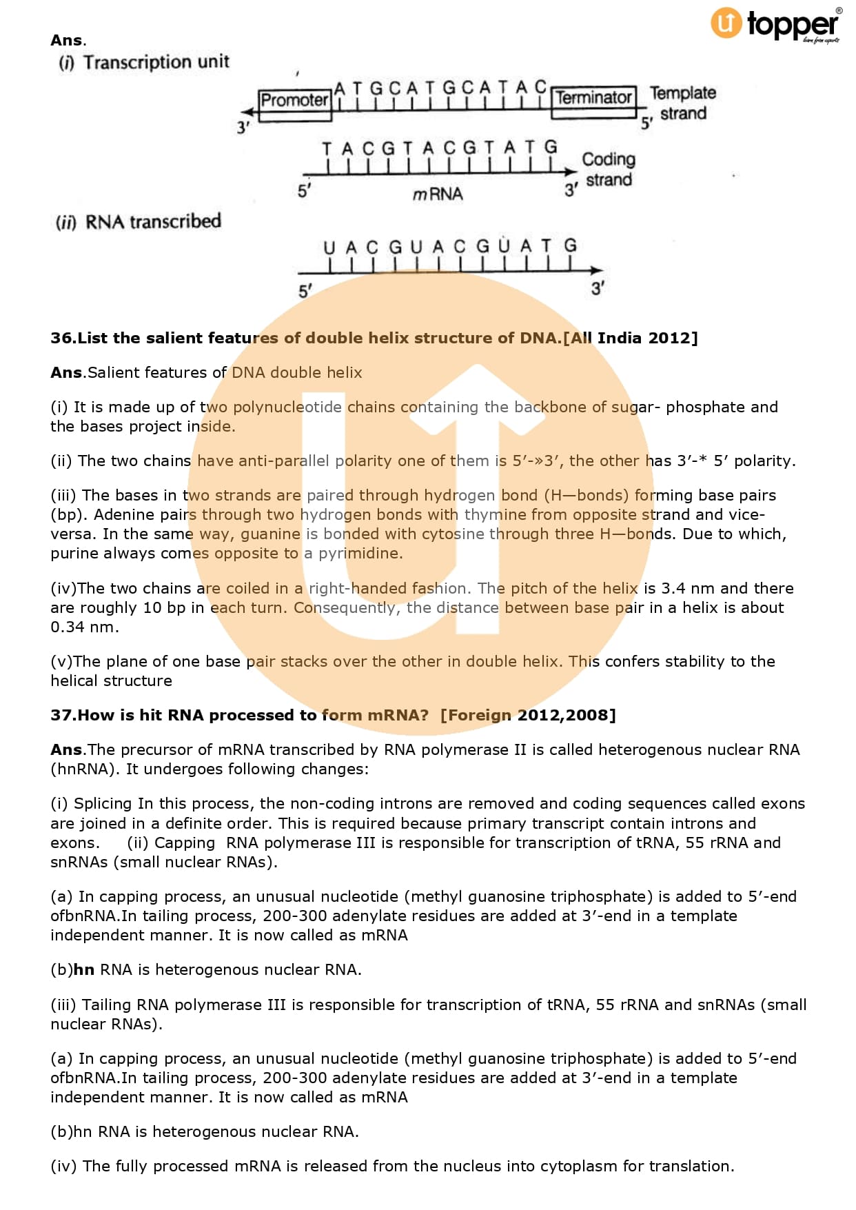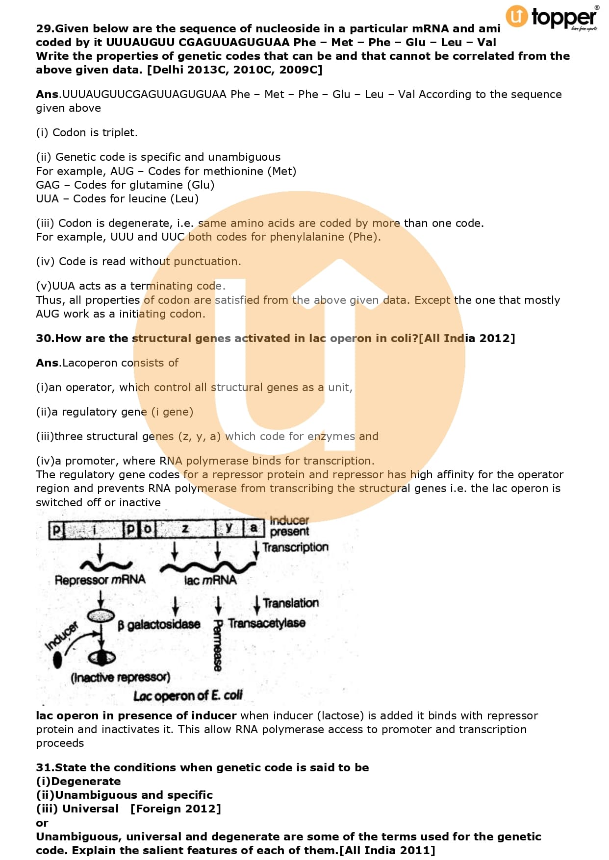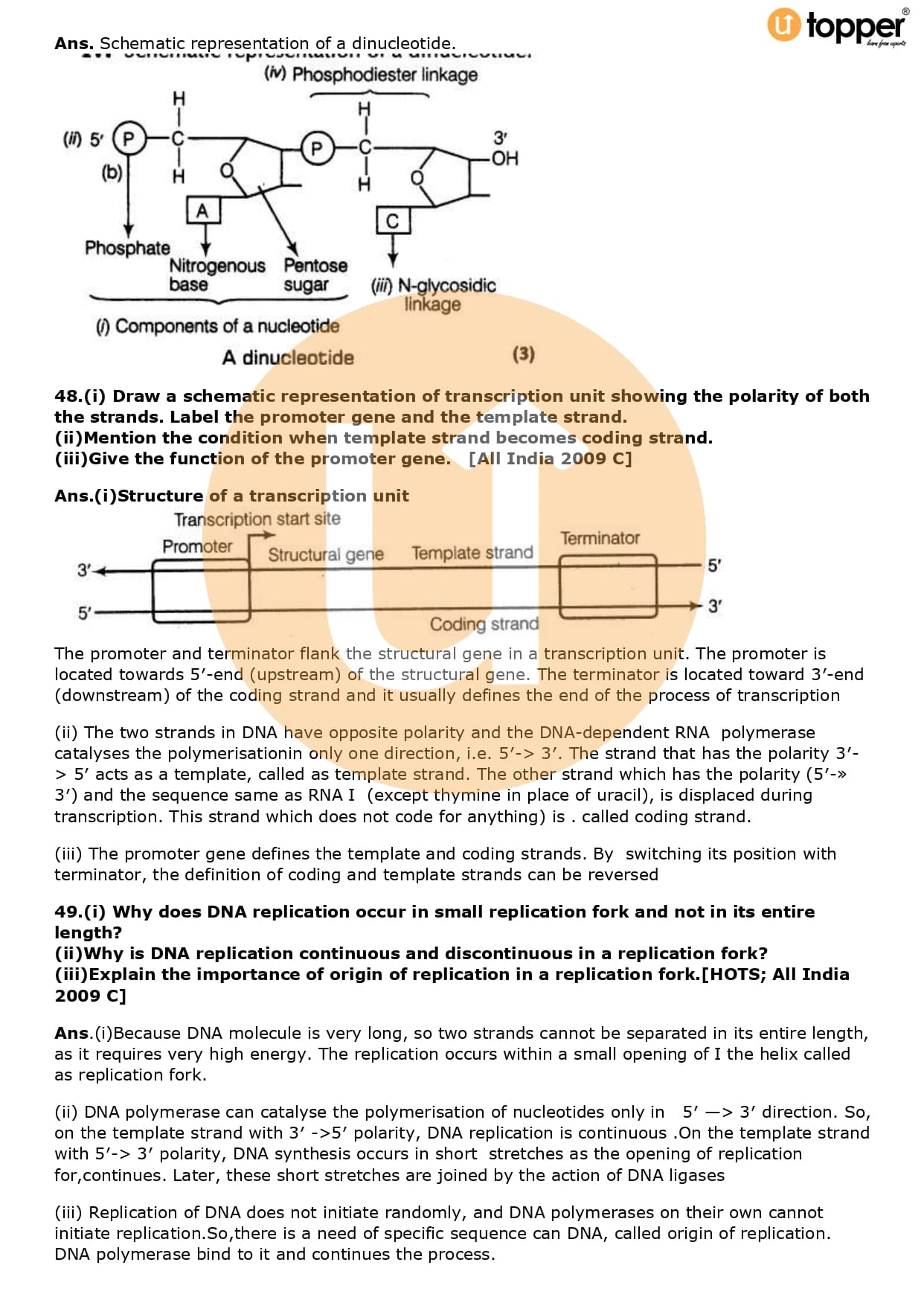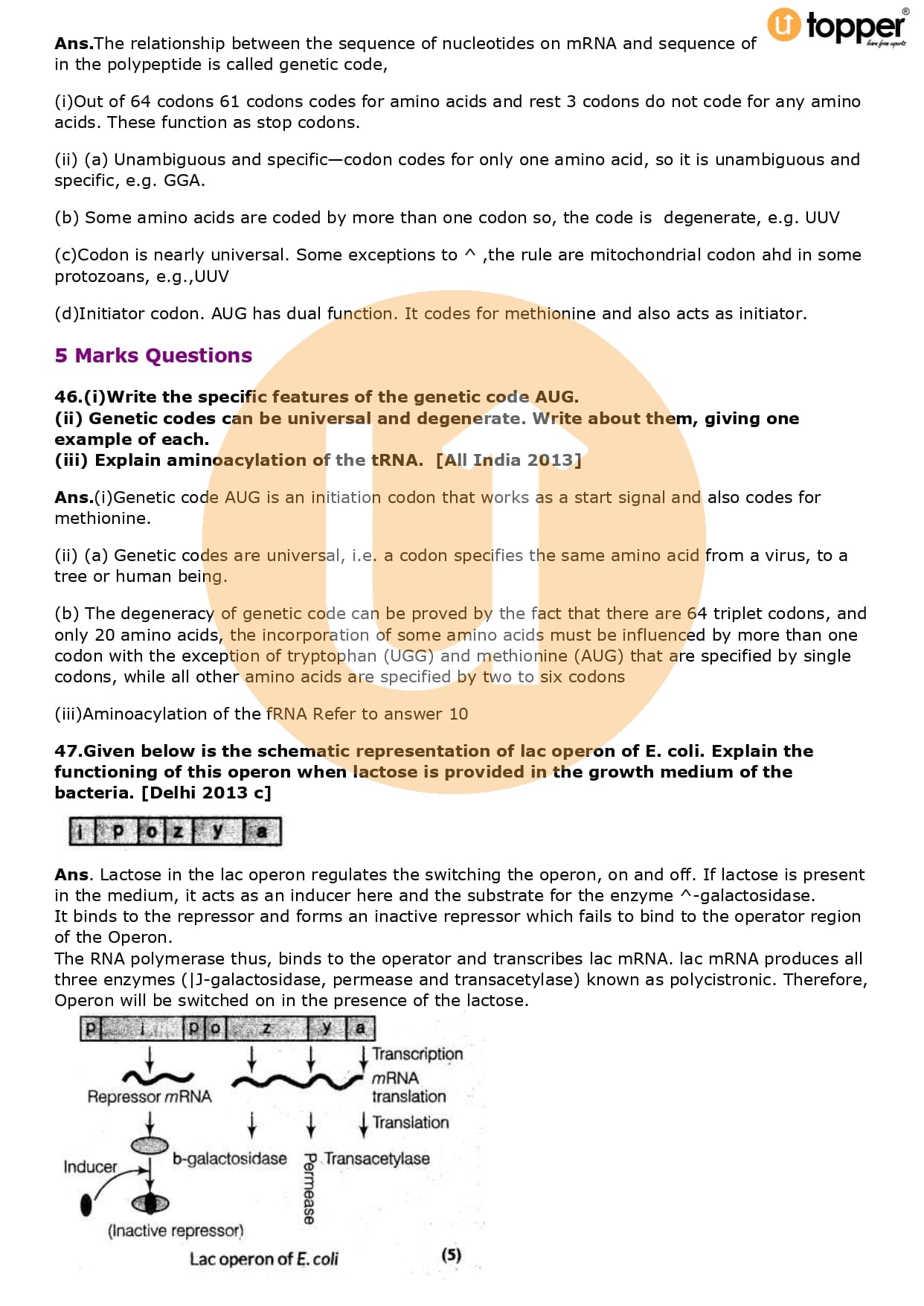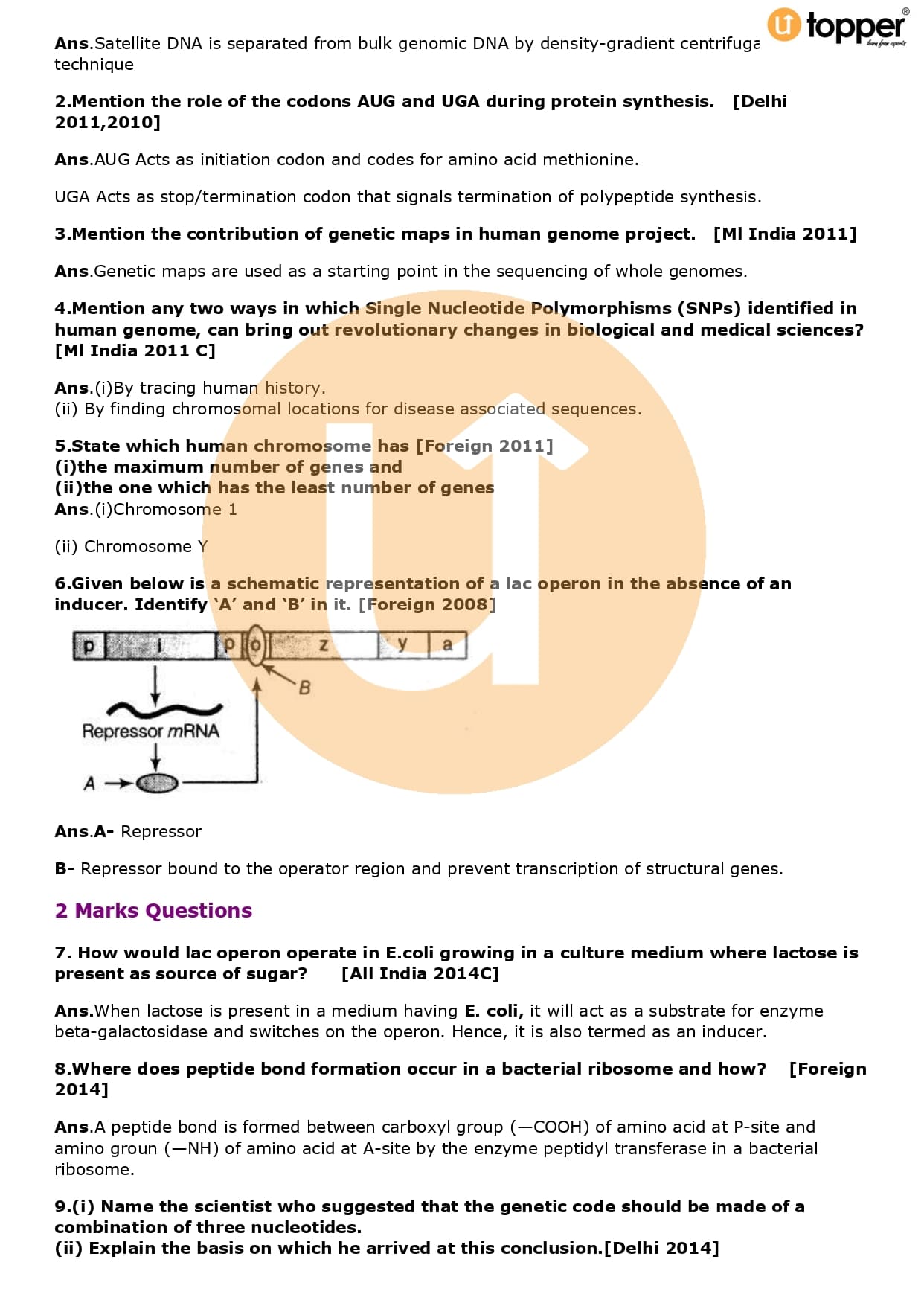 Class 12 Biology Important Question CBSE Chapter 5 – Molecular Basis of Inheritance