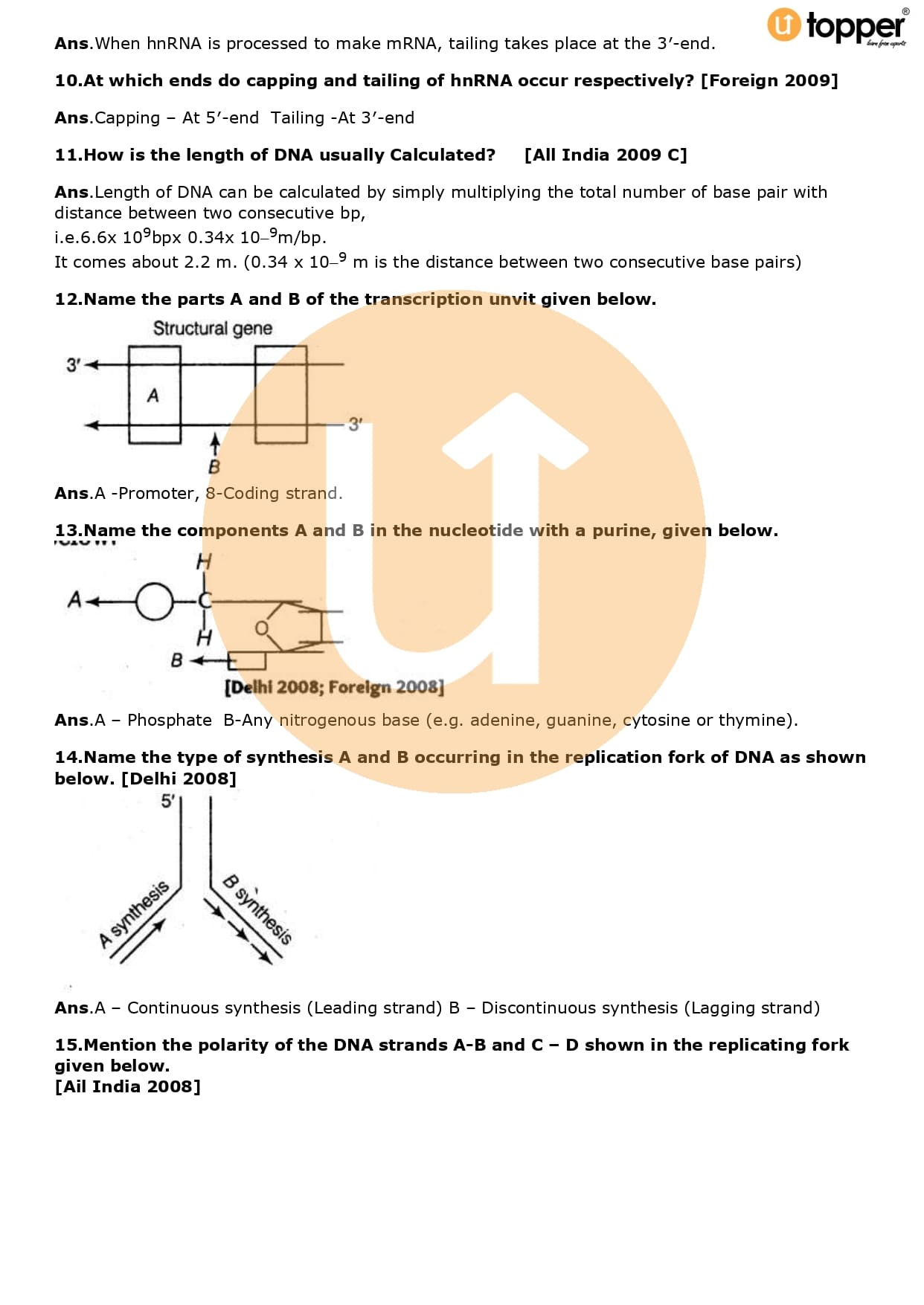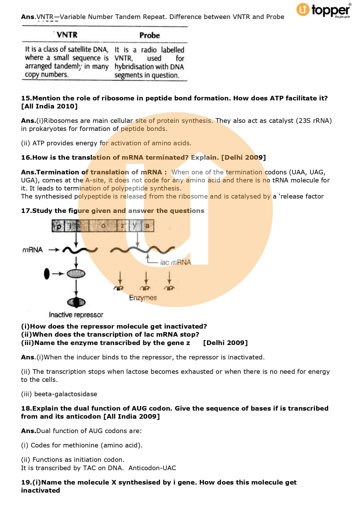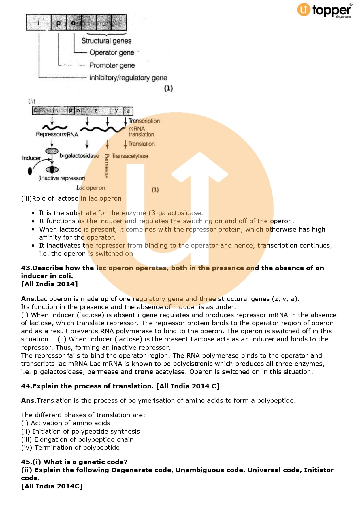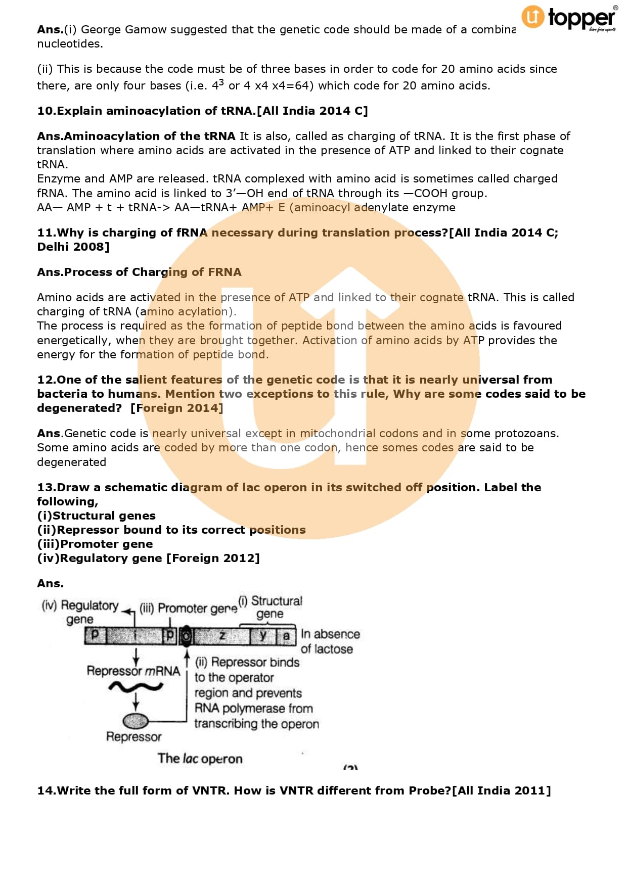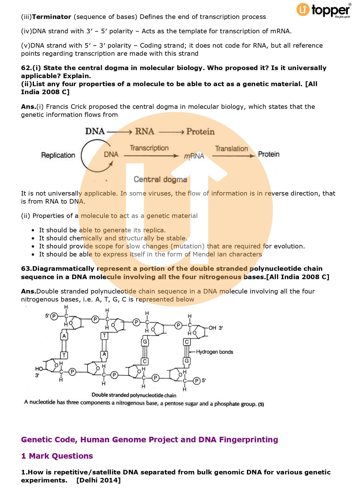 Class 12 Biology Important Question CBSE Chapter 5 – Molecular Basis of Inheritance