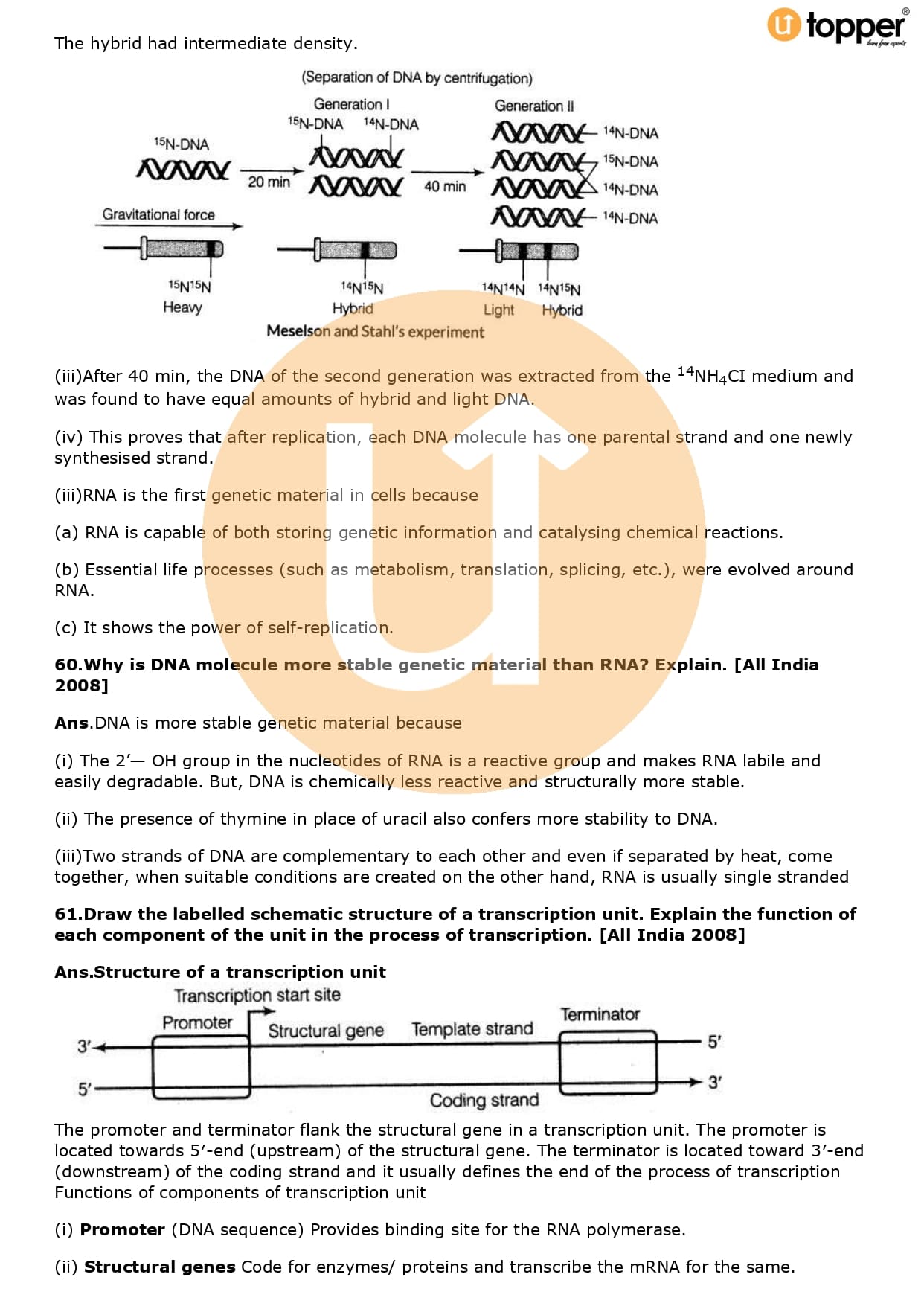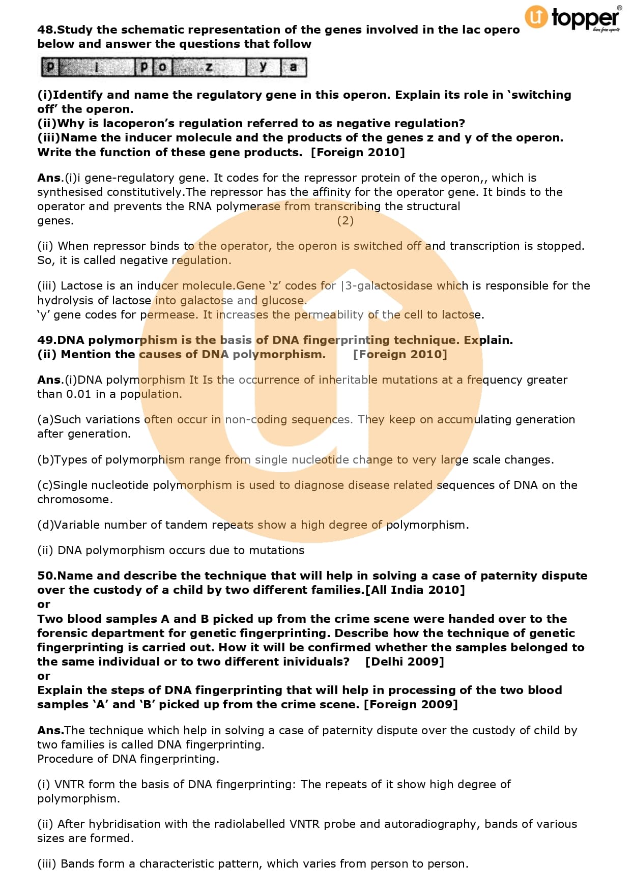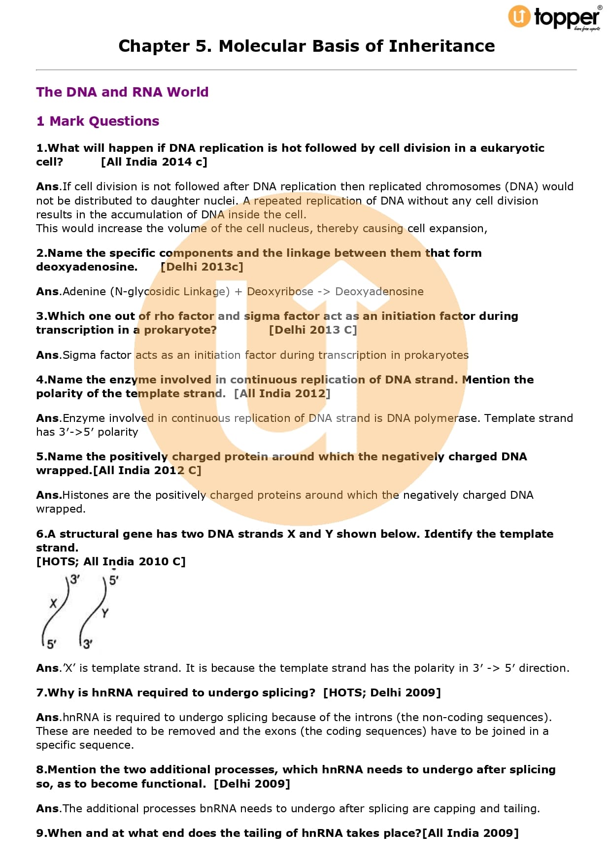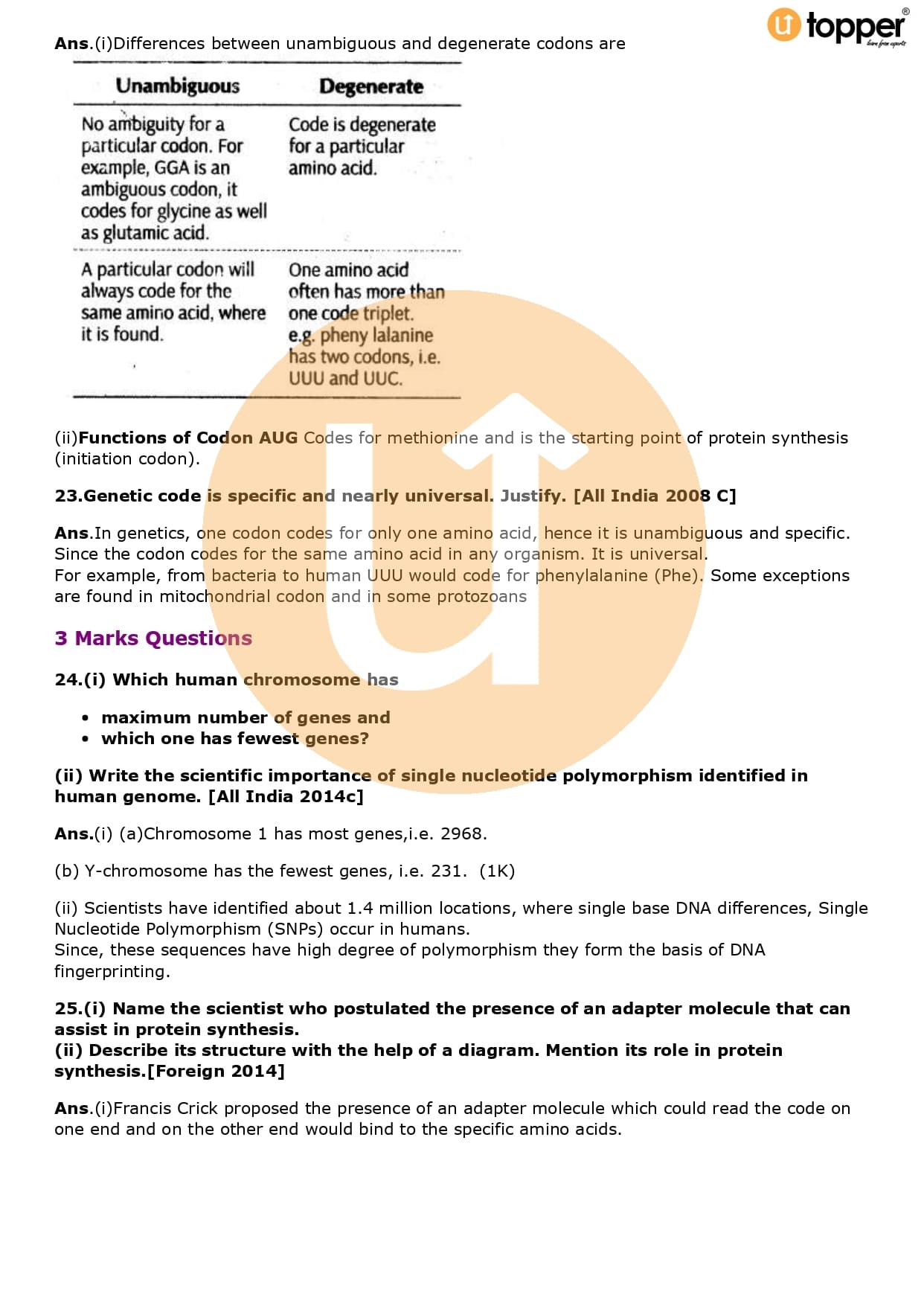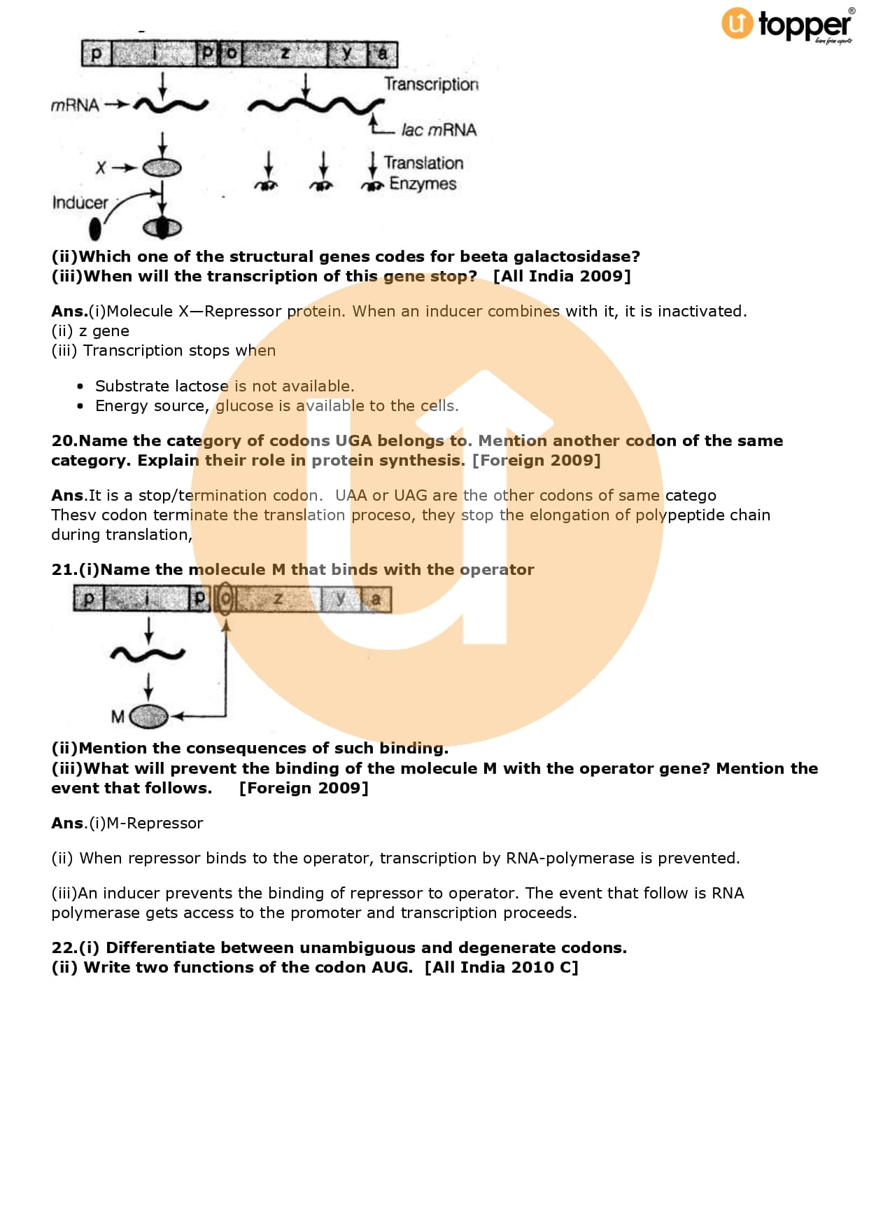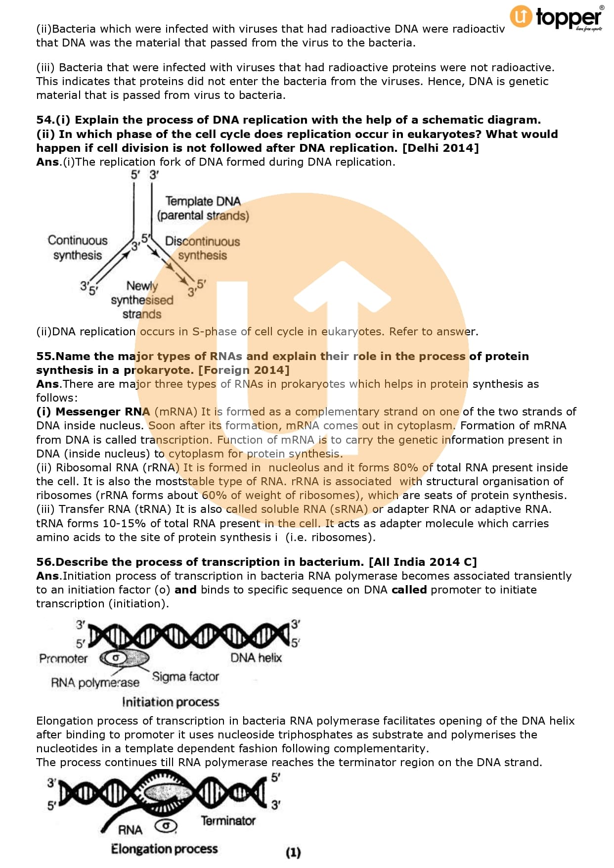 Class 12 Biology Important Question CBSE Chapter 5 – Molecular Basis of Inheritance