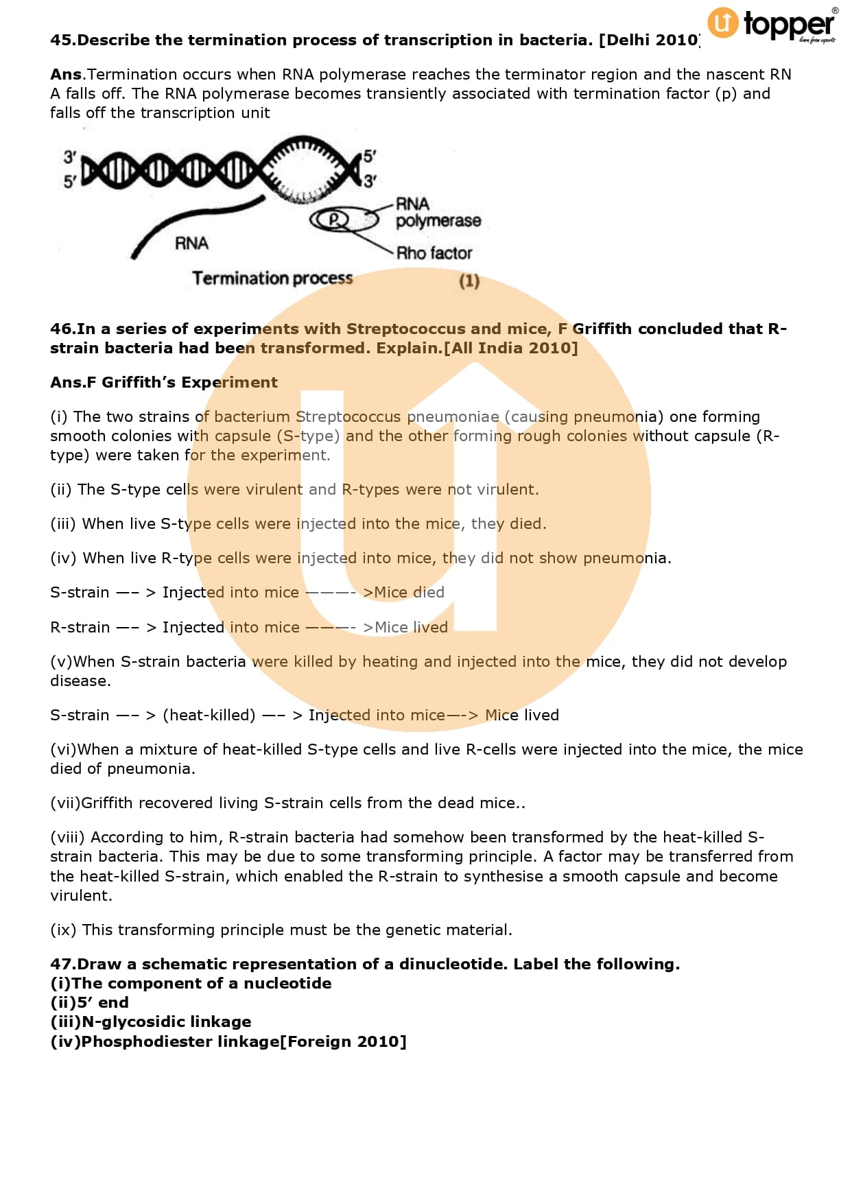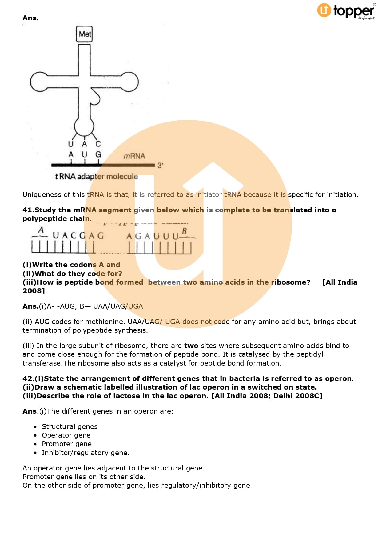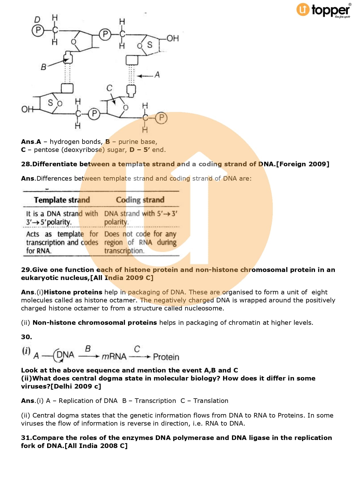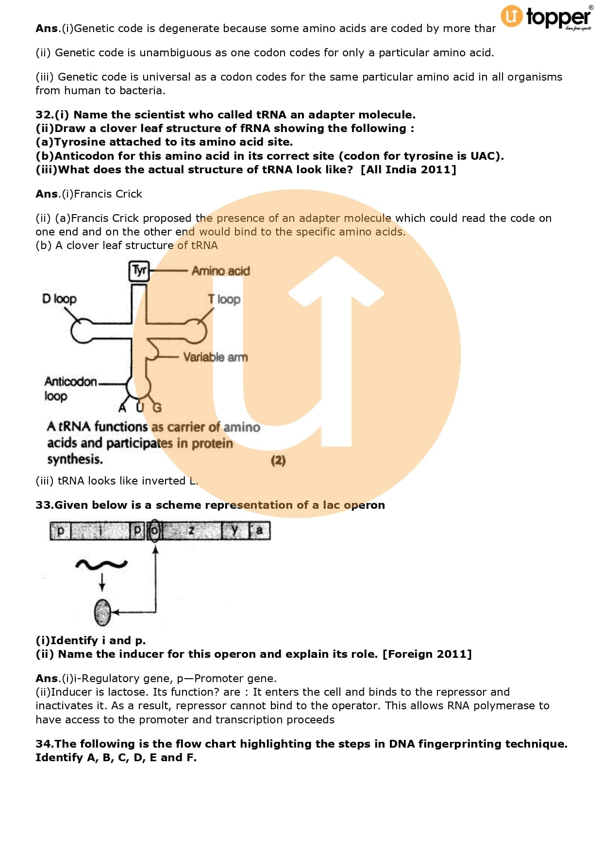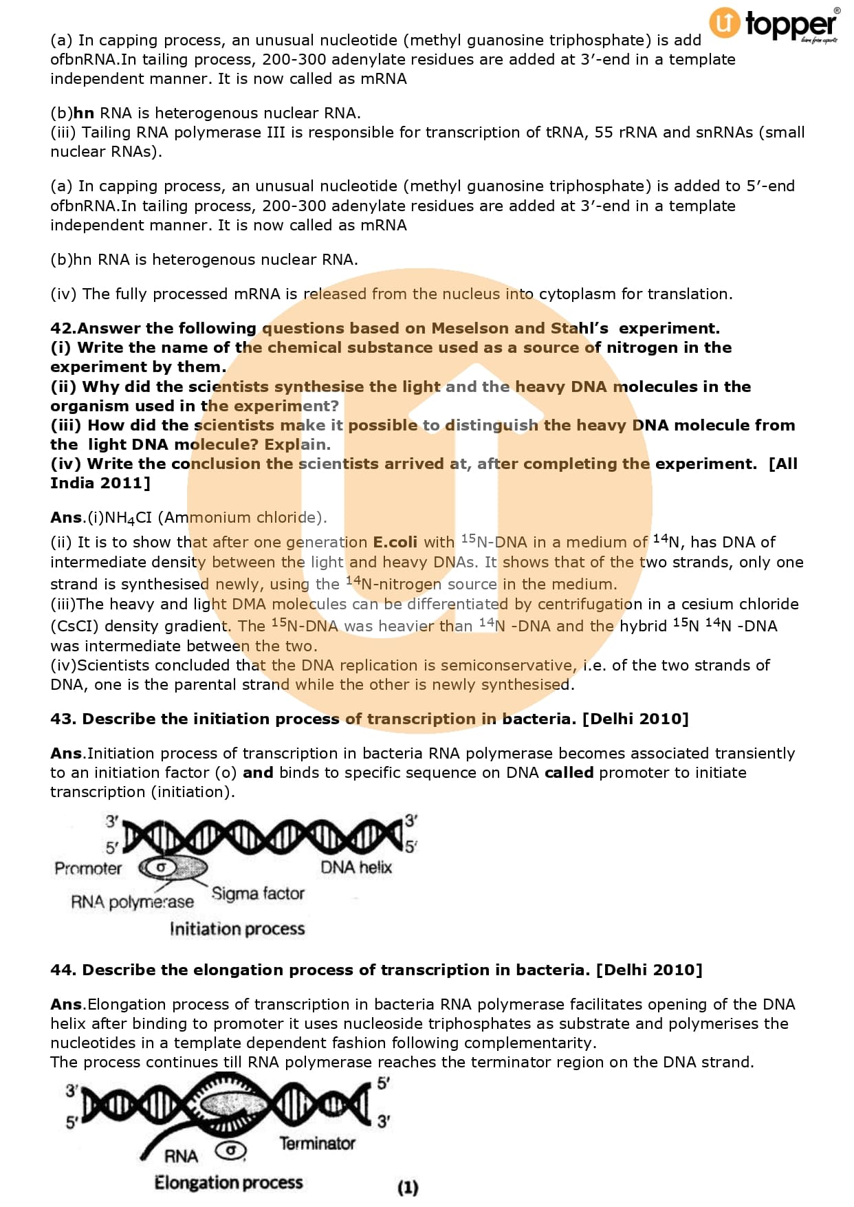 Class 12 Biology Important Question CBSE Chapter 5 – Molecular Basis of Inheritance