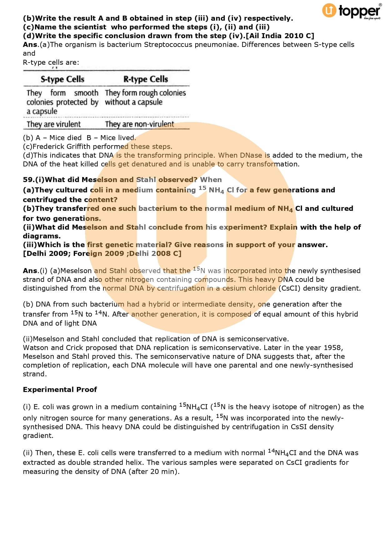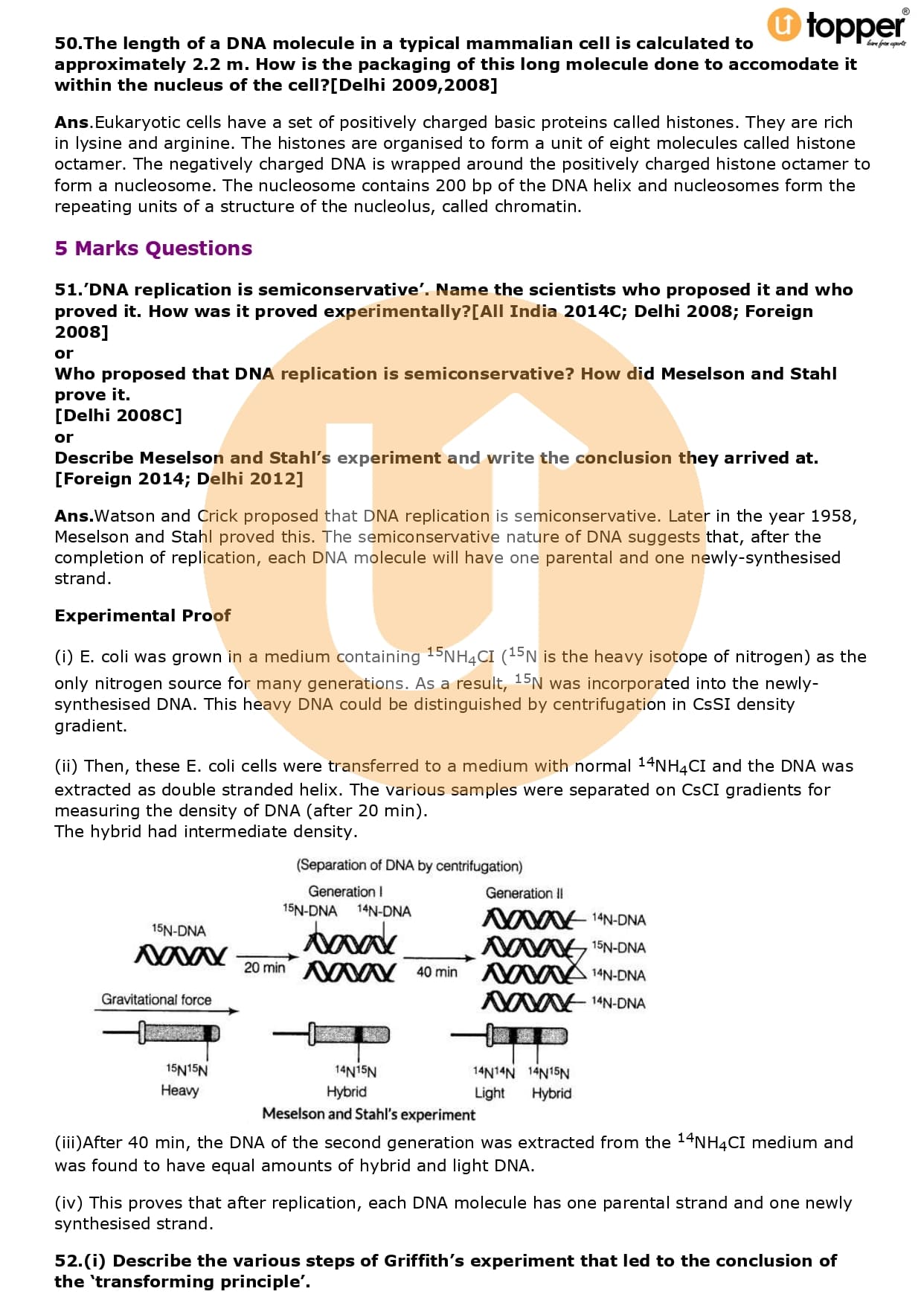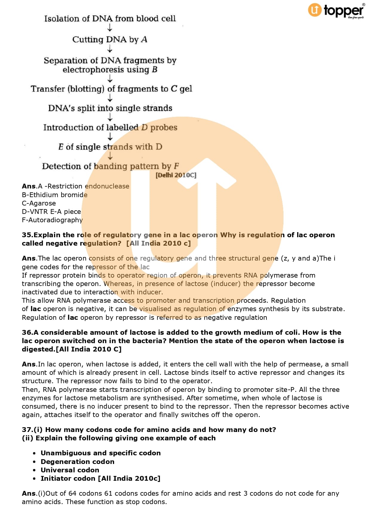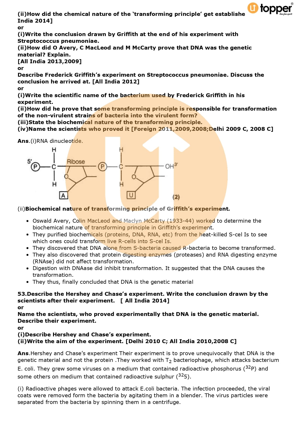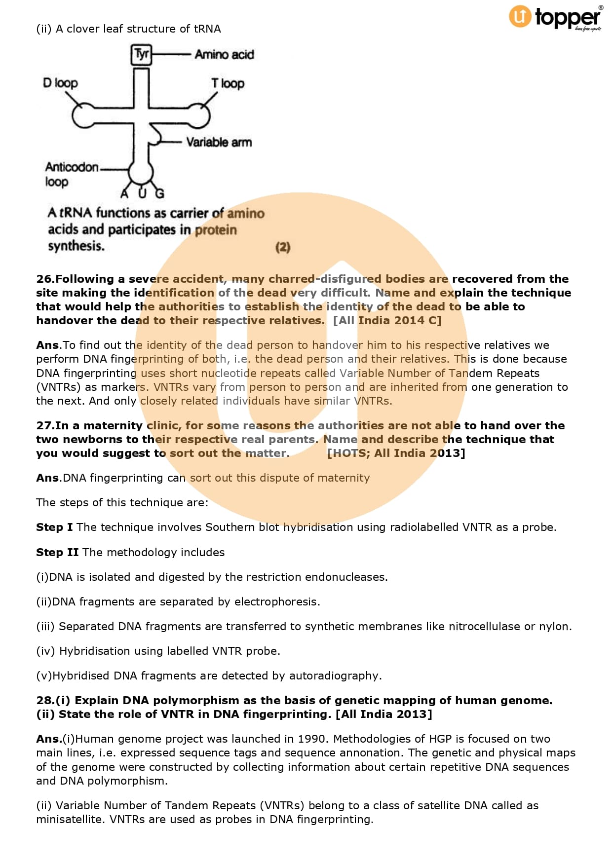 Class 12 Biology Important Question CBSE Chapter 5 – Molecular Basis of Inheritance