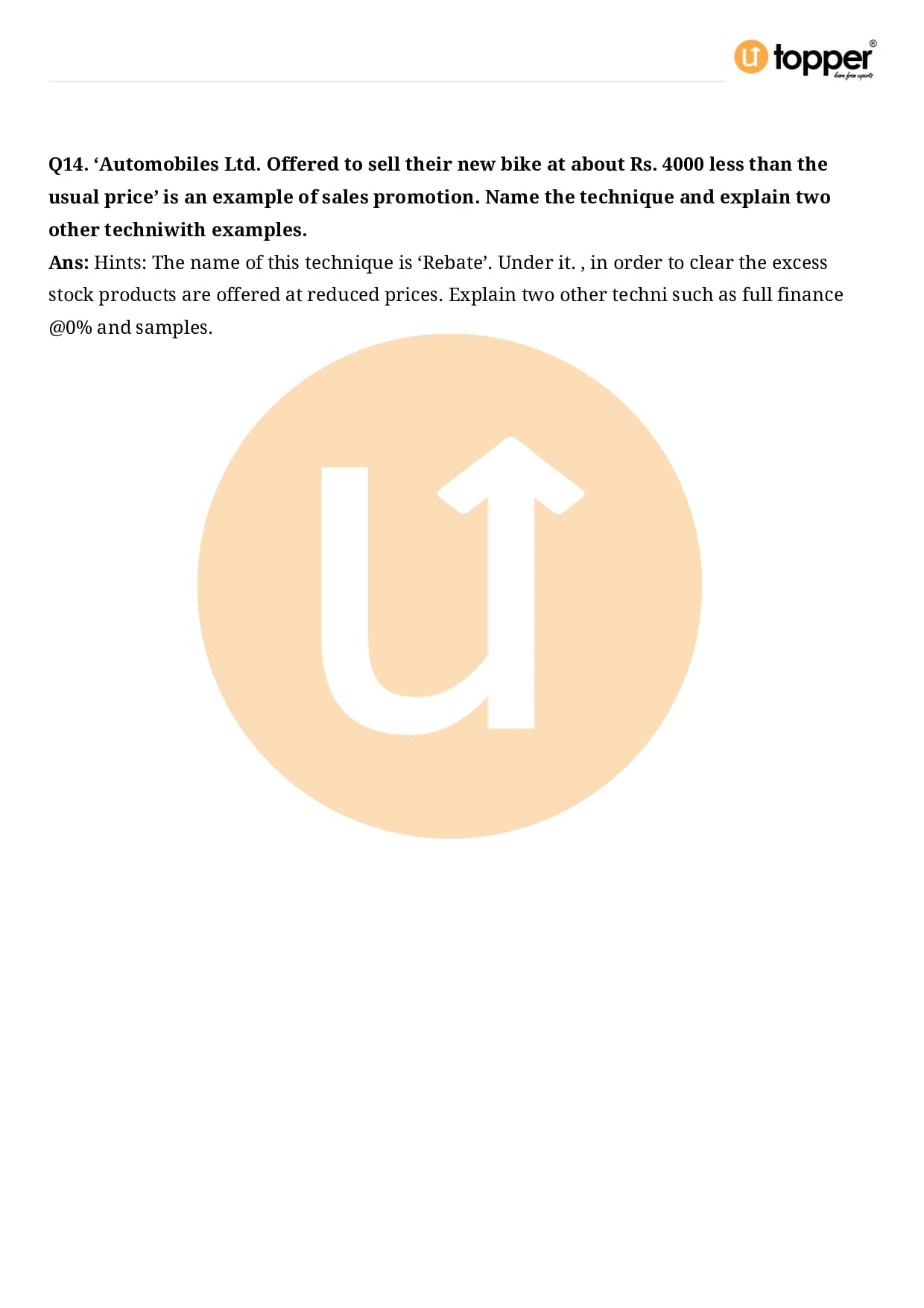 Class 12 Business Studies Important Question CBSE Chapter 11 – Marketing