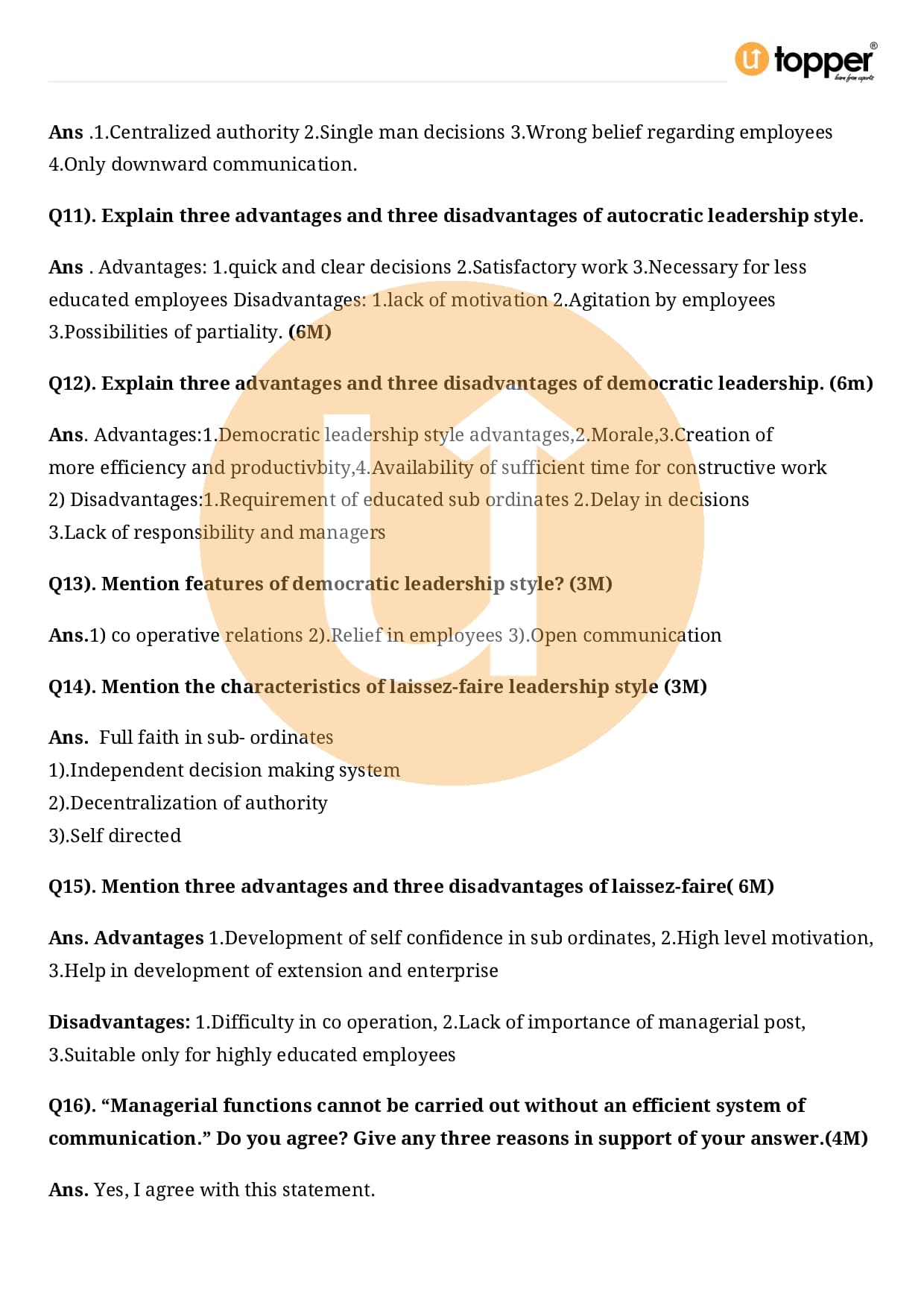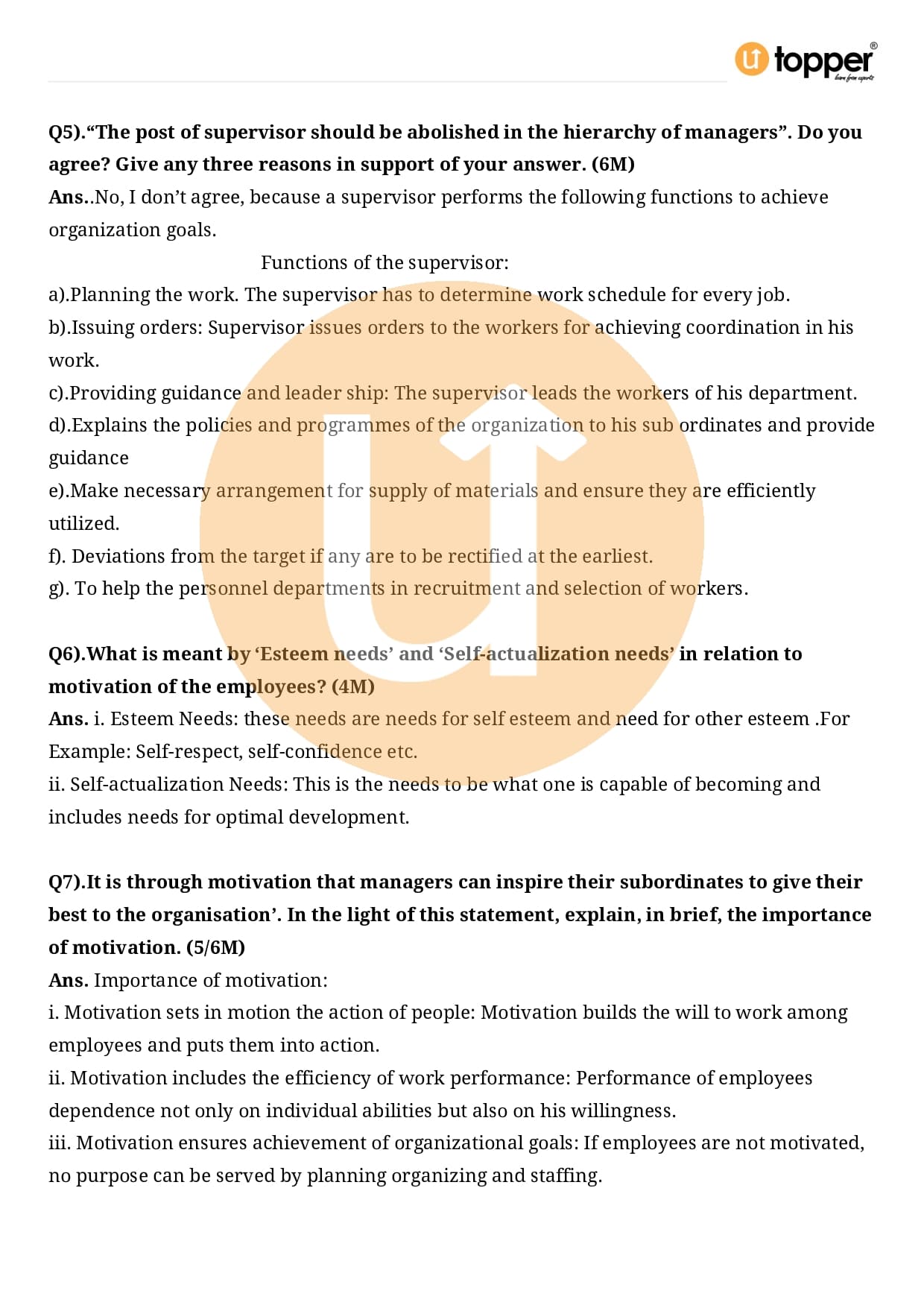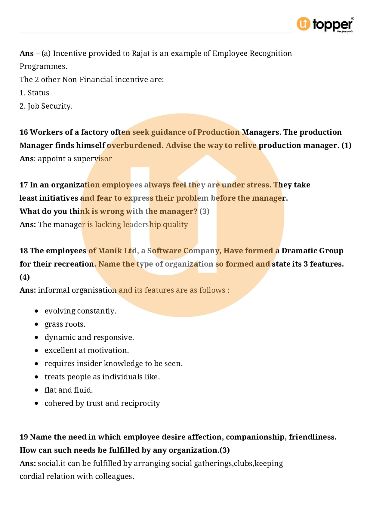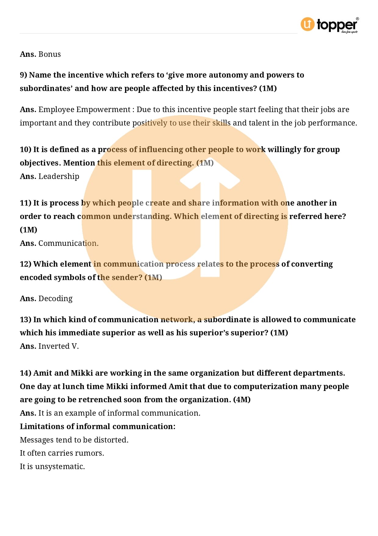 Class 12 Business Studies Important Question CBSE Chapter 7 – Directing