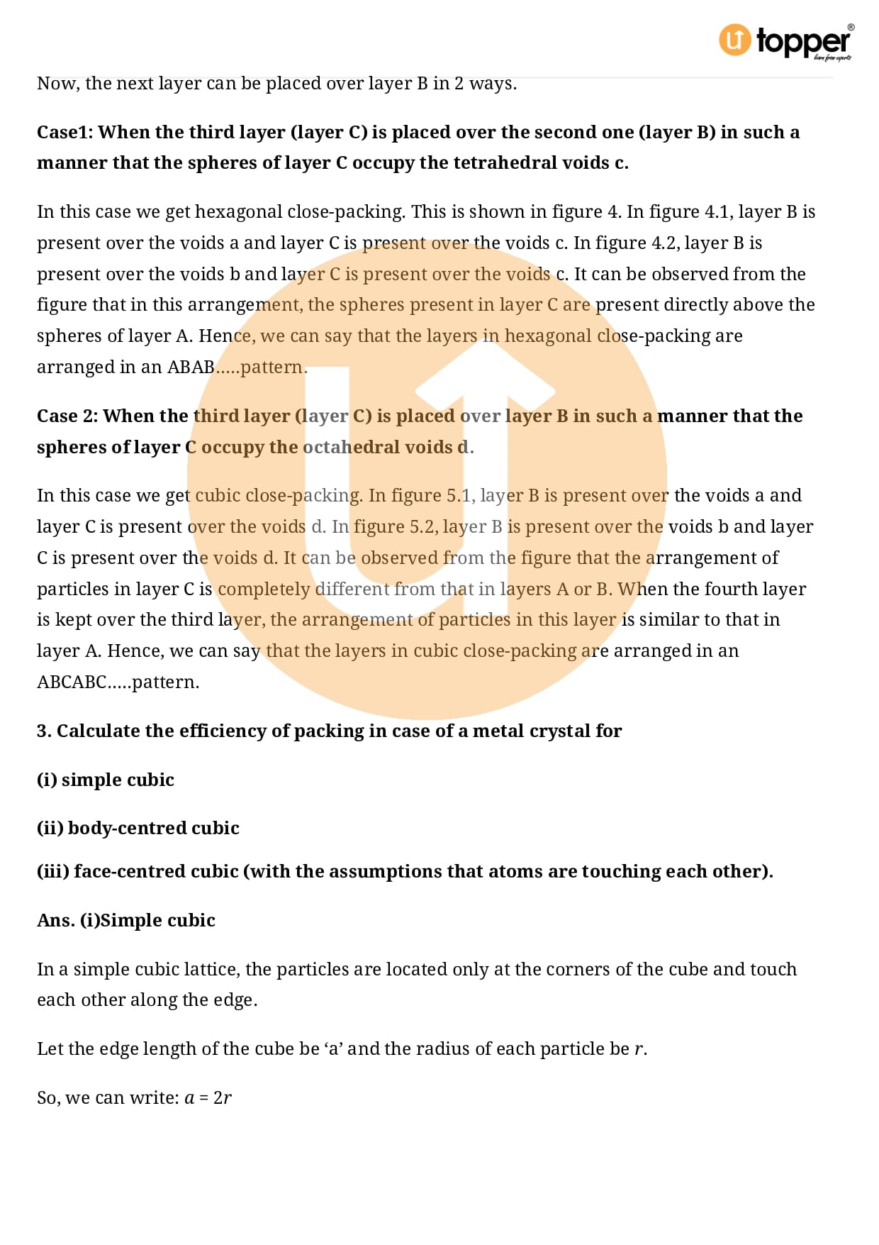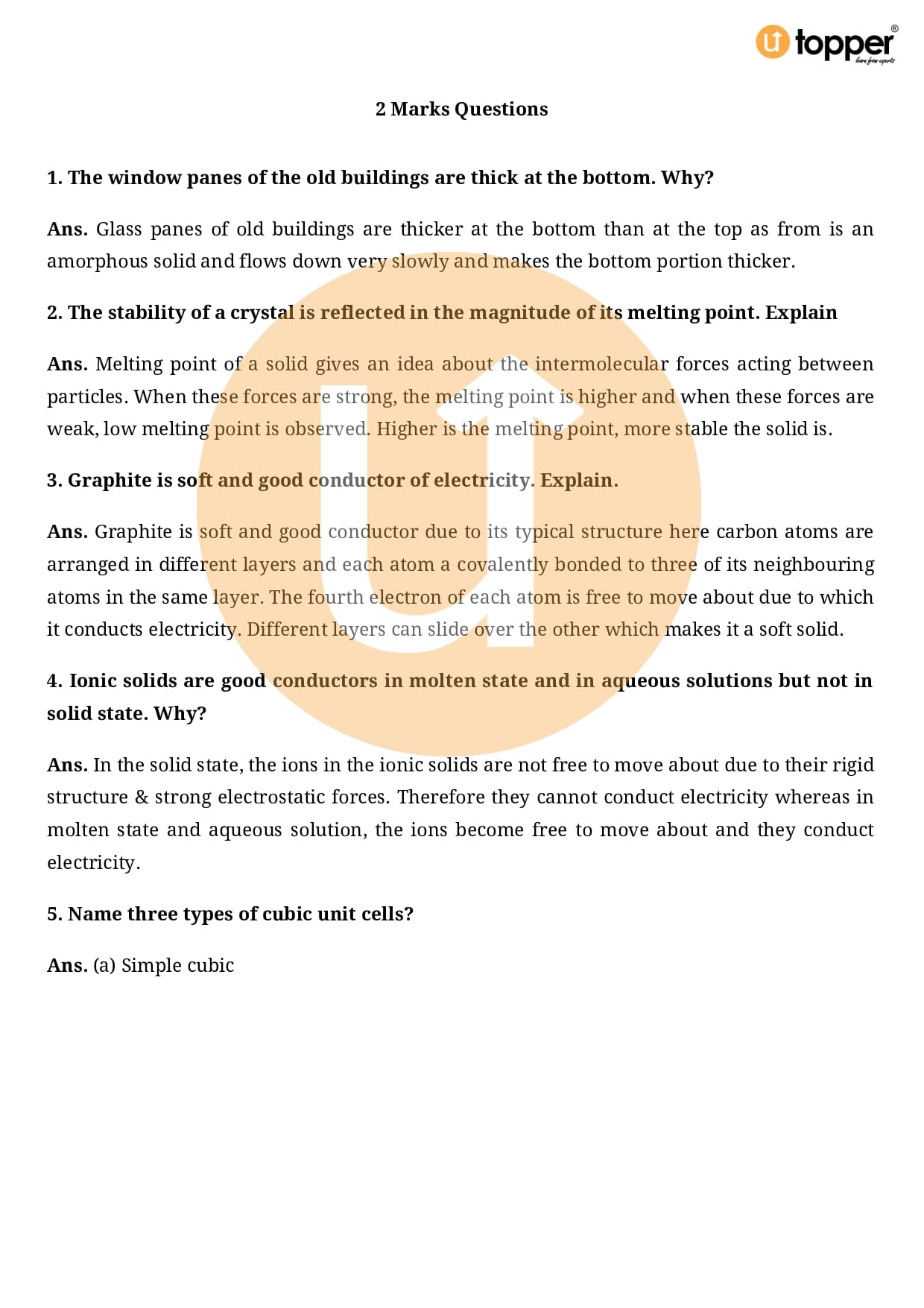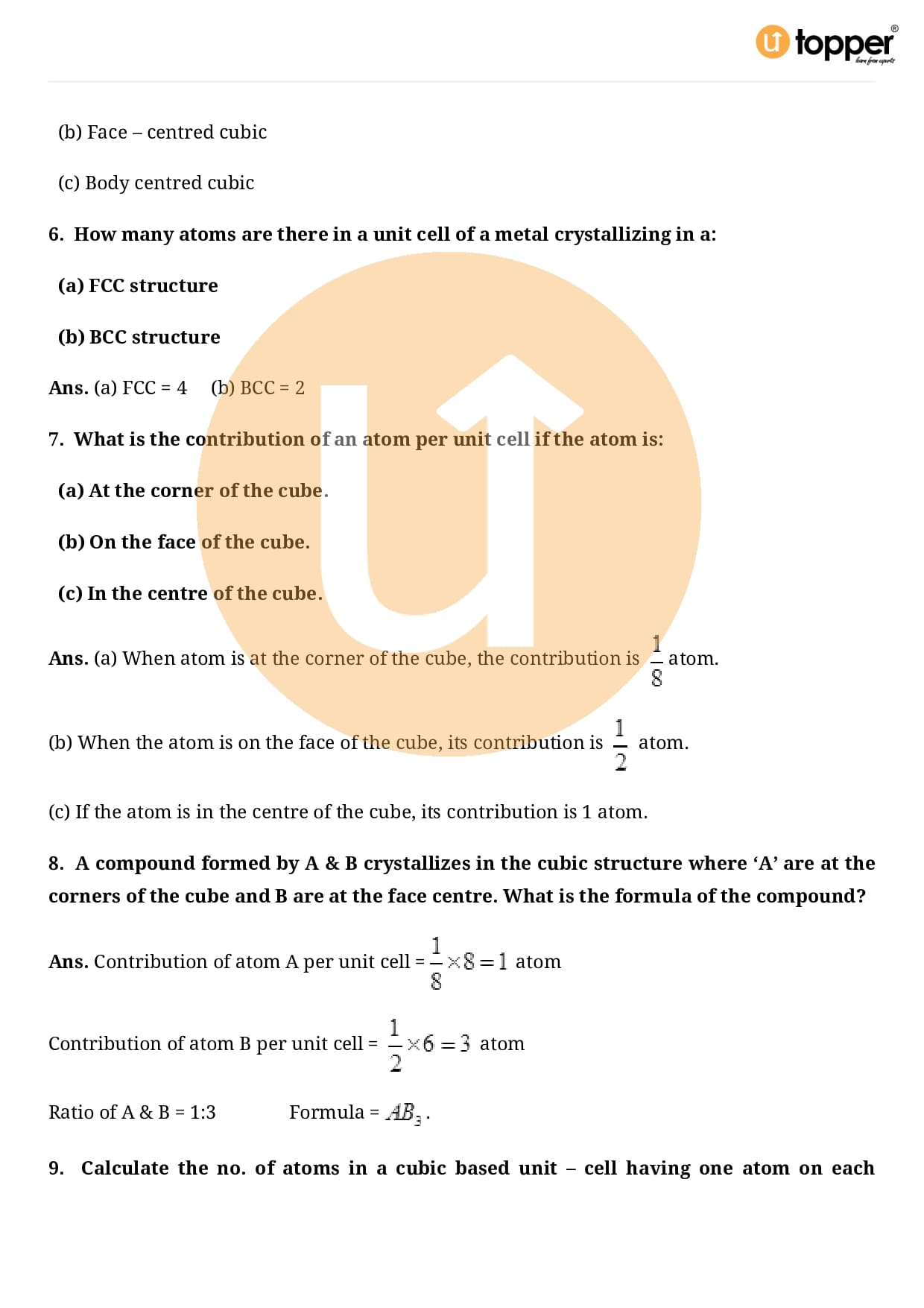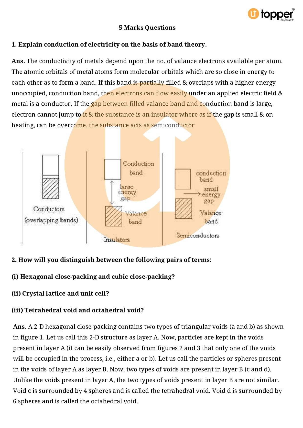 Class 12 Chemistry Important Question CBSE Chapter 1 – The Solid State