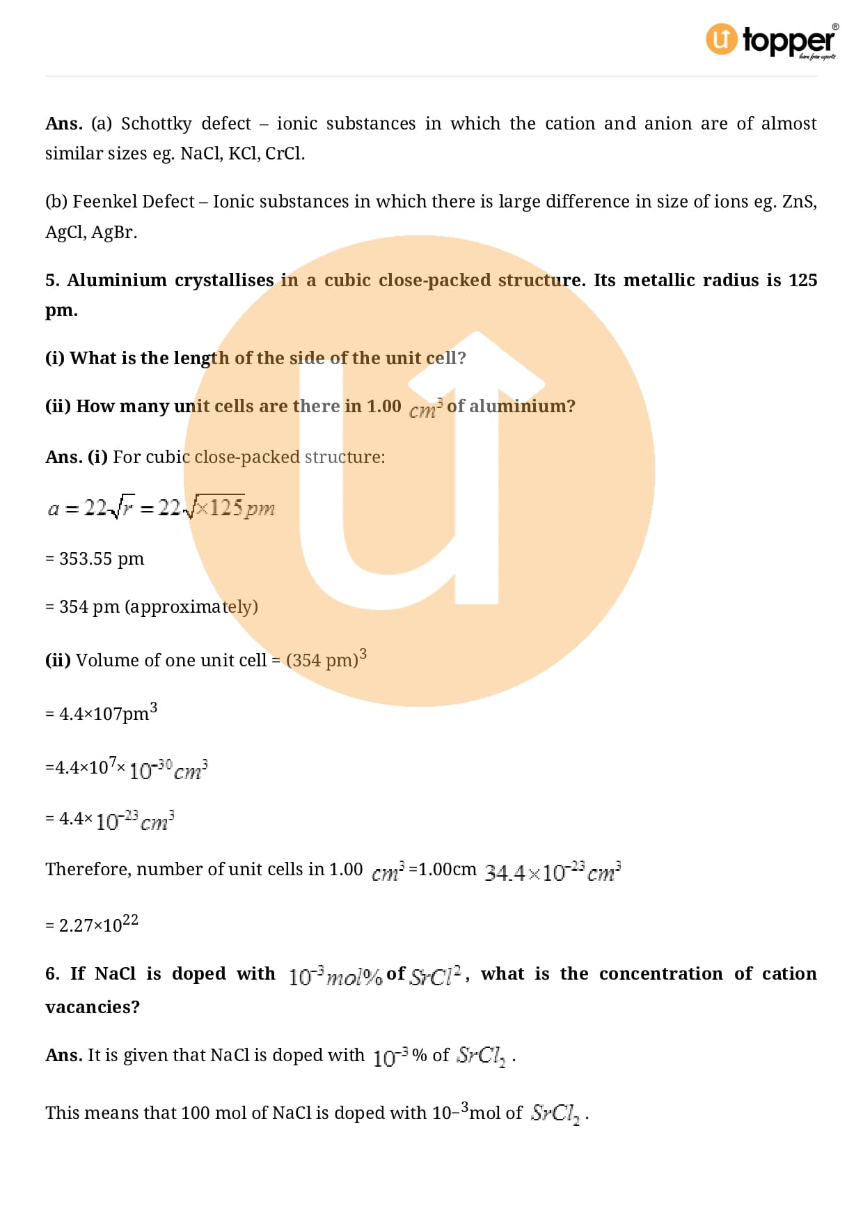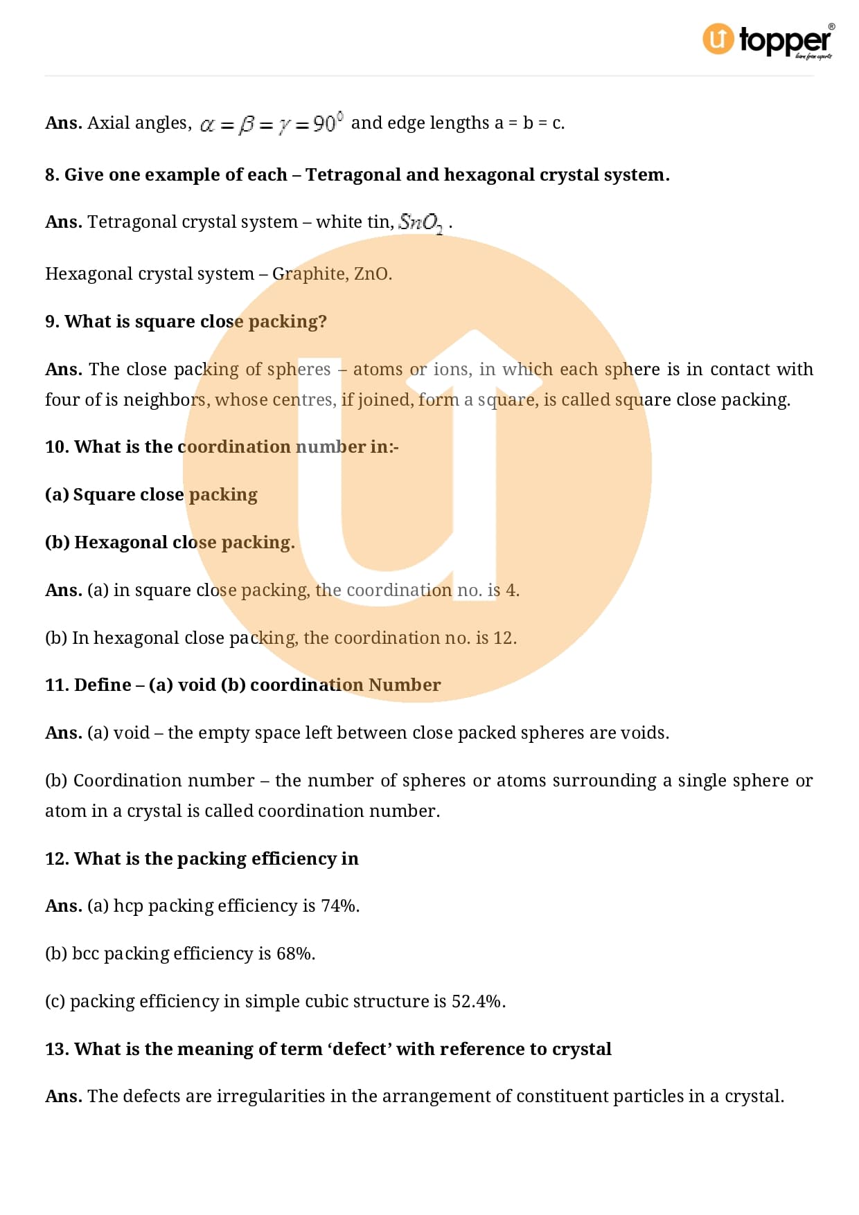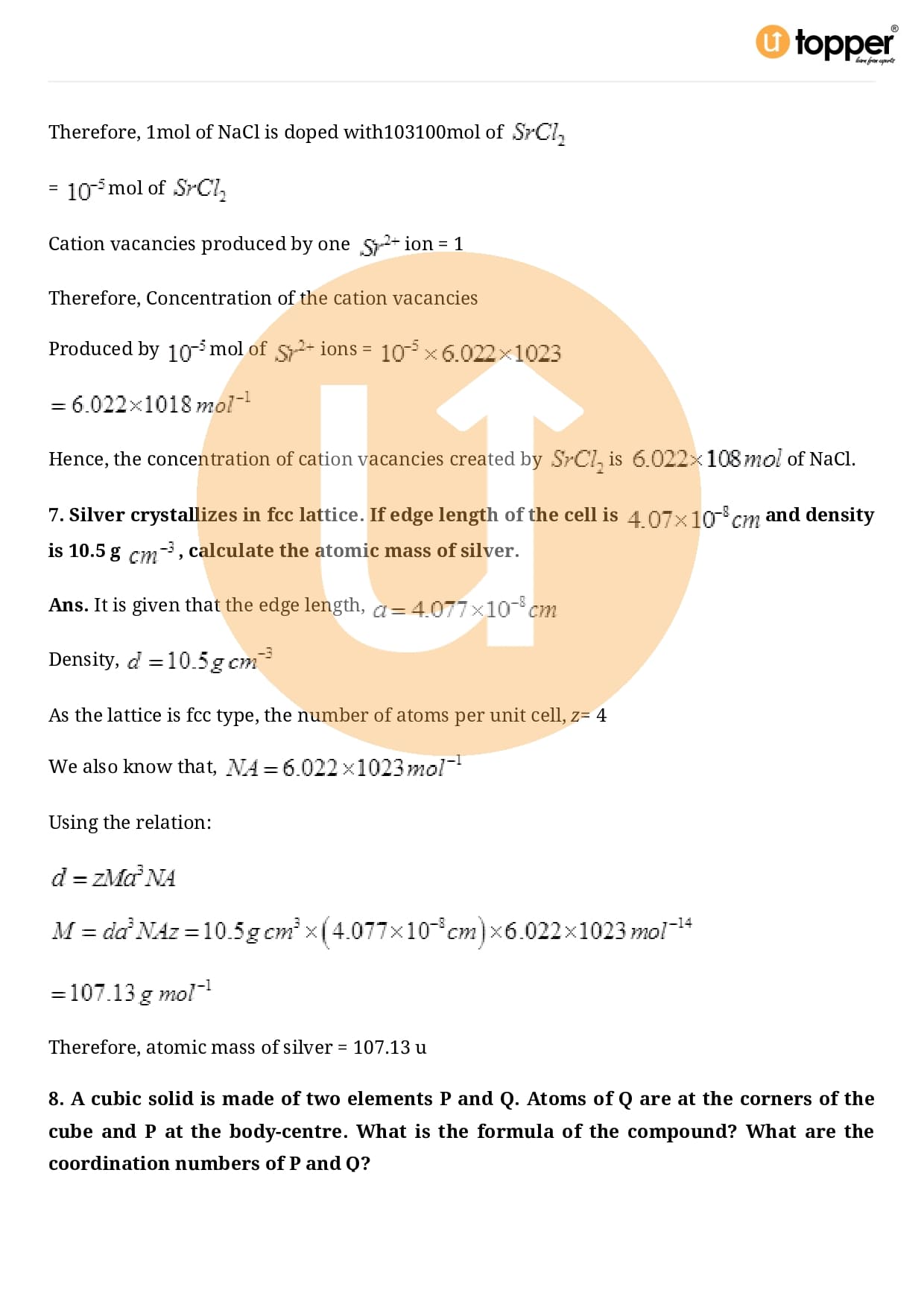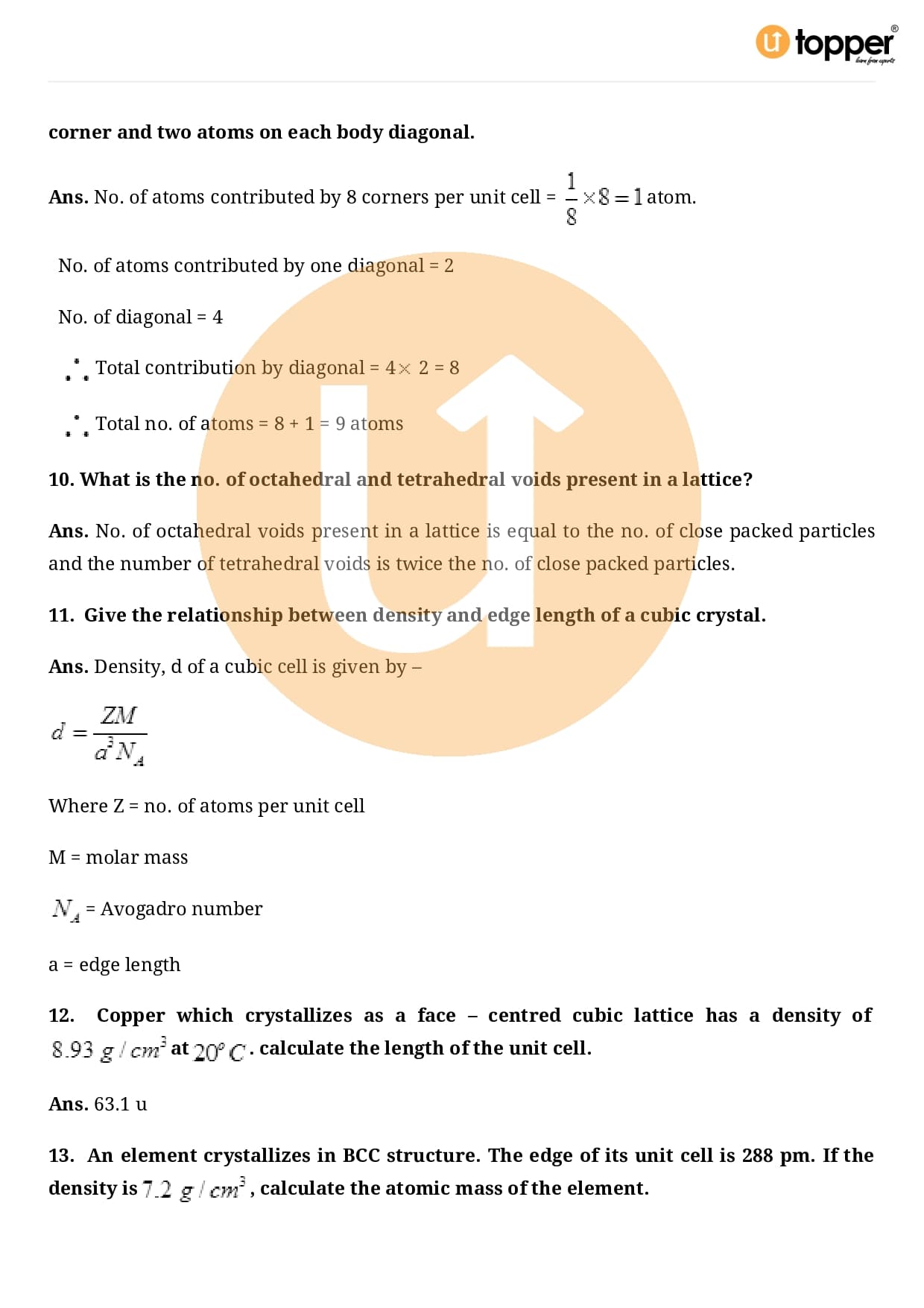 Class 12 Chemistry Important Question CBSE Chapter 1 – The Solid State