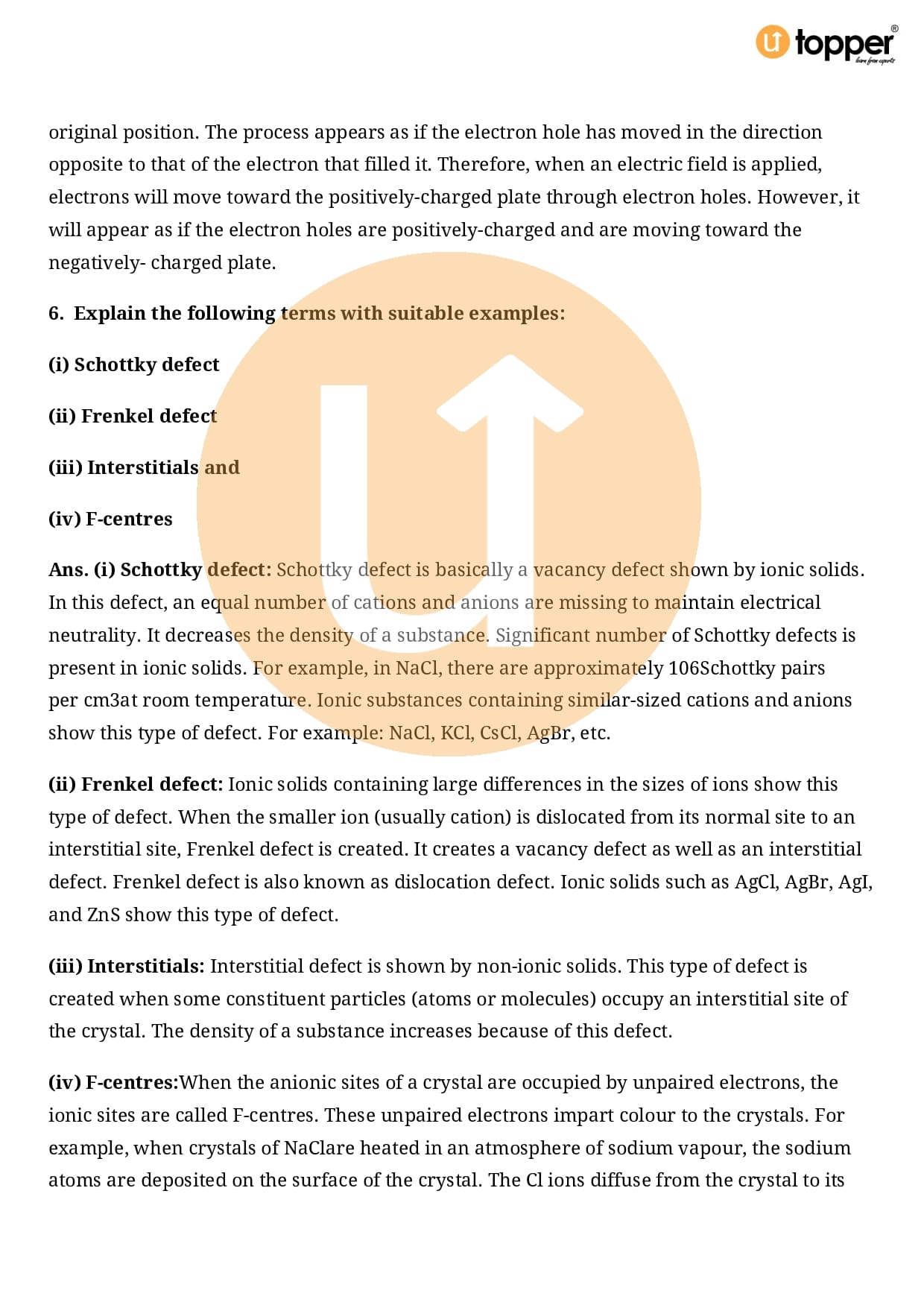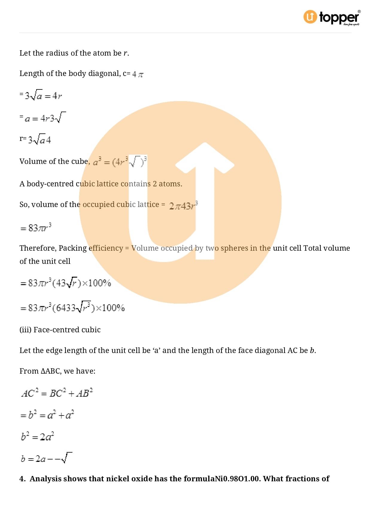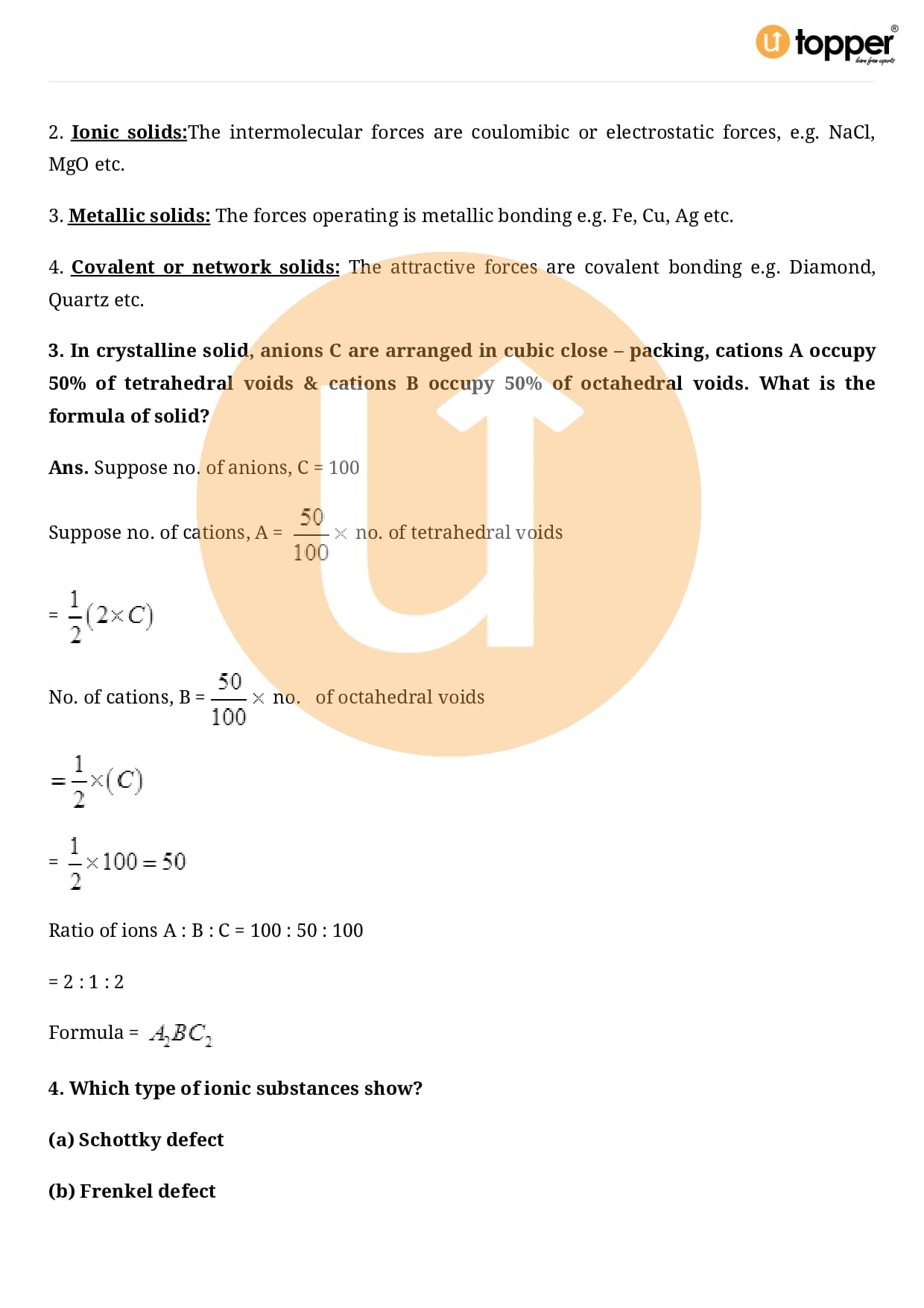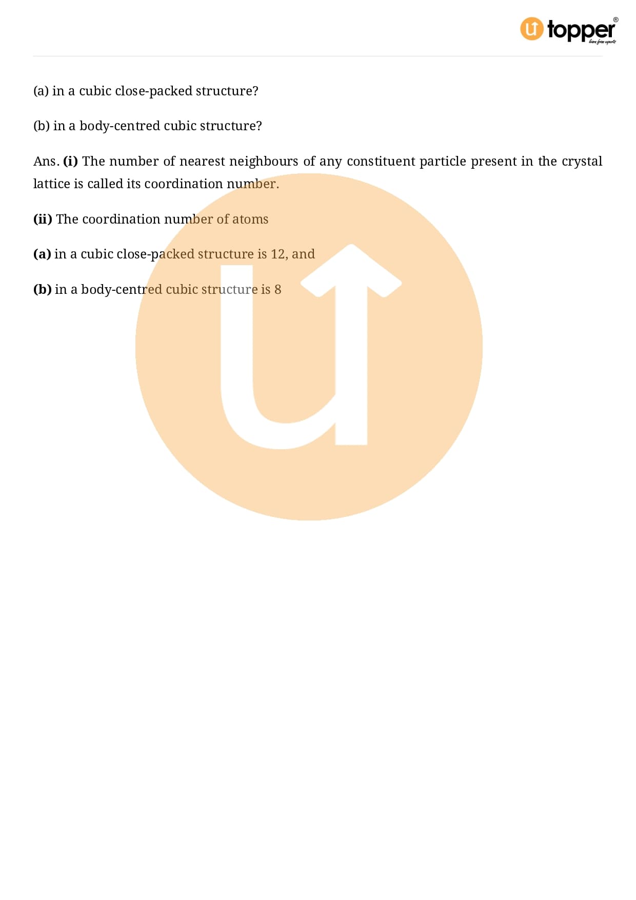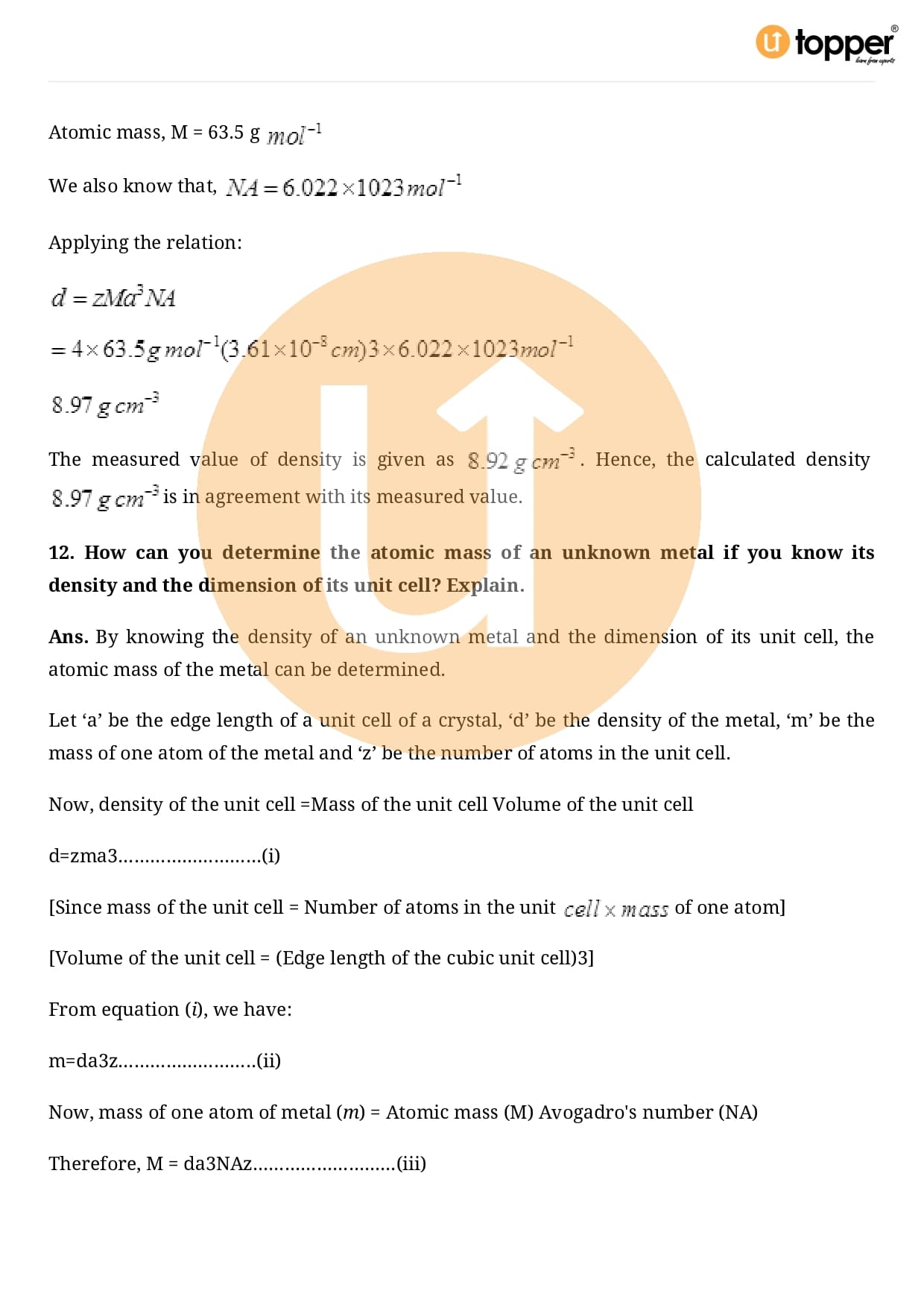 Class 12 Chemistry Important Question CBSE Chapter 1 – The Solid State