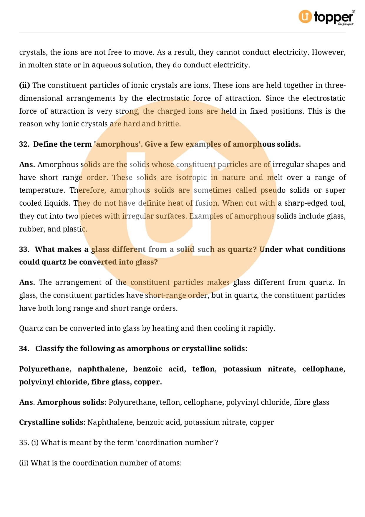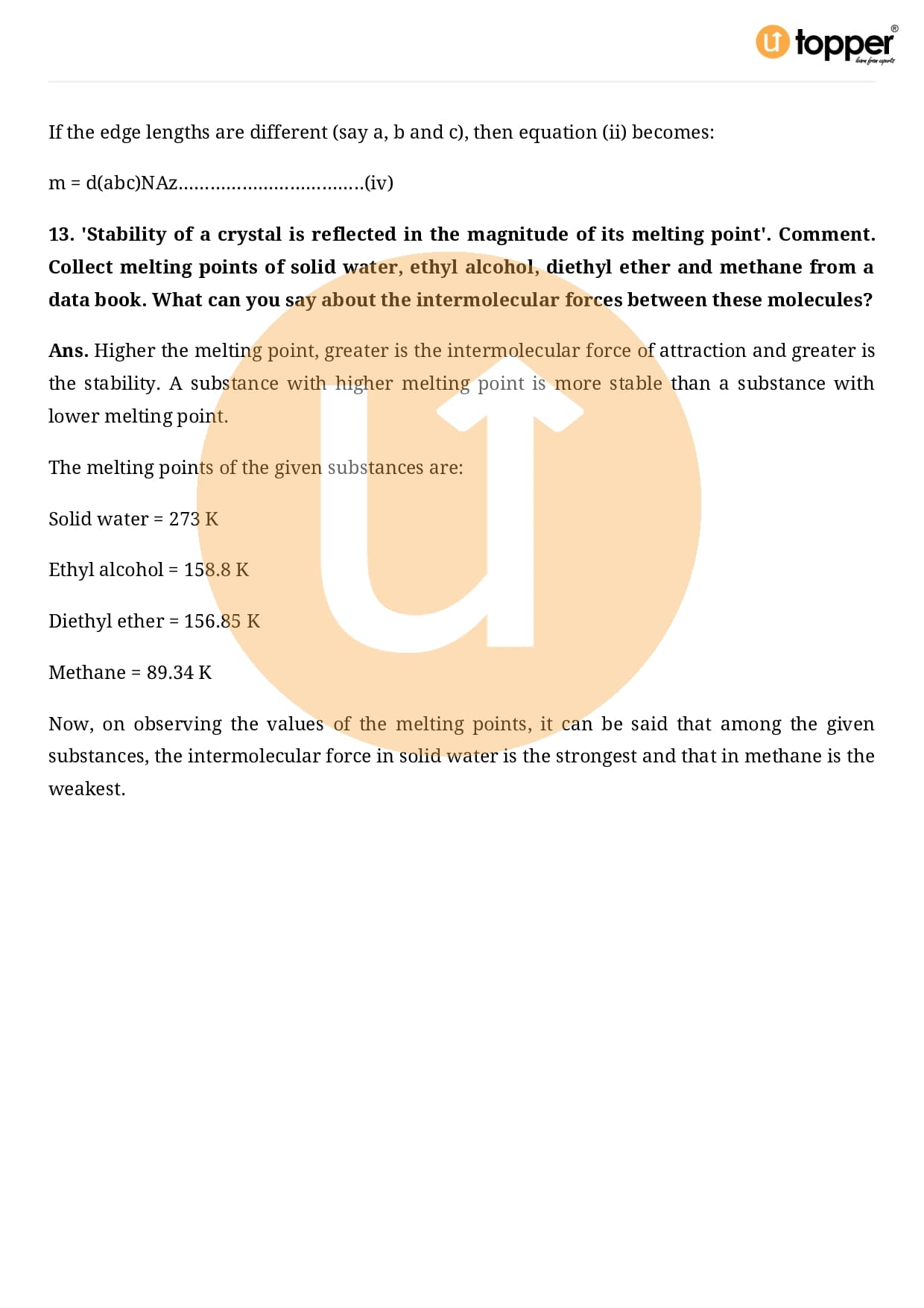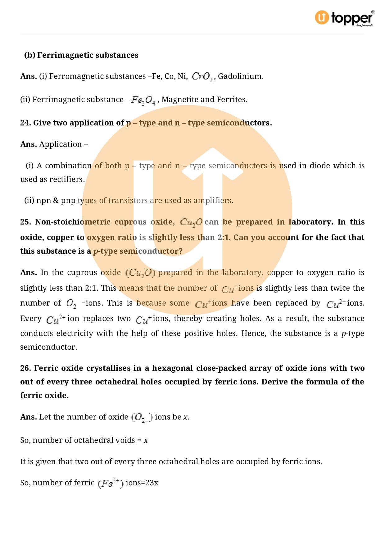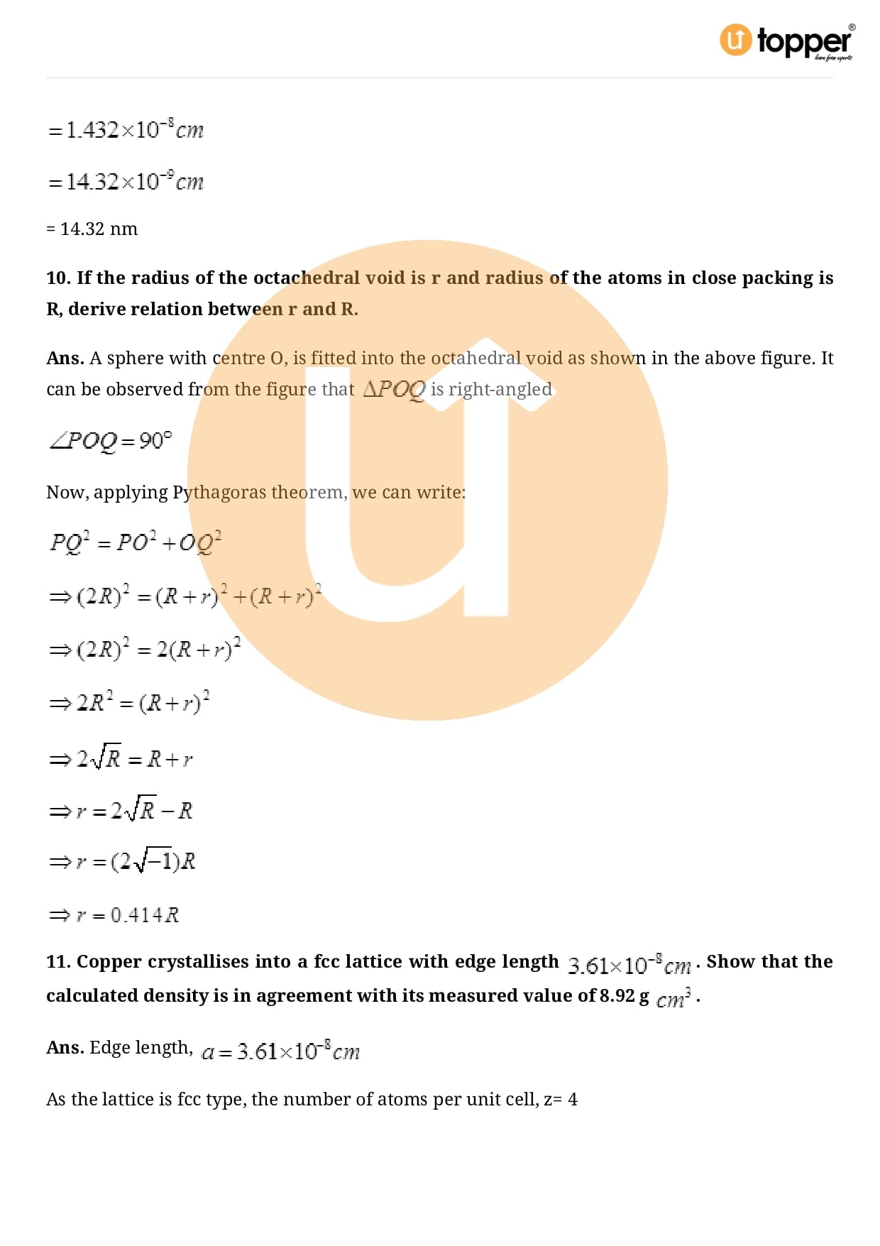 Class 12 Chemistry Important Question CBSE Chapter 1 – The Solid State