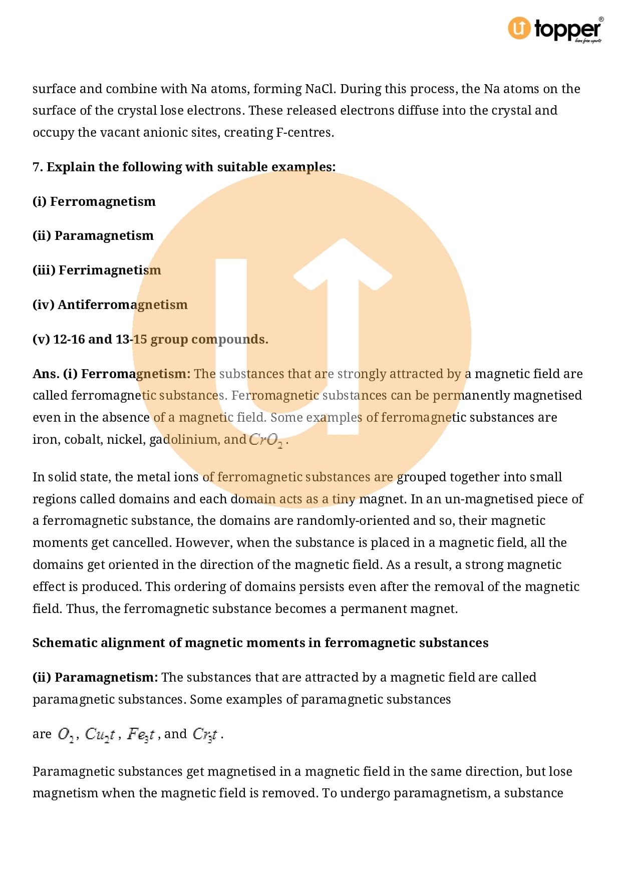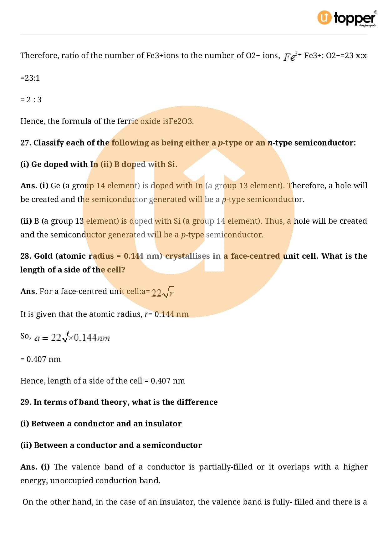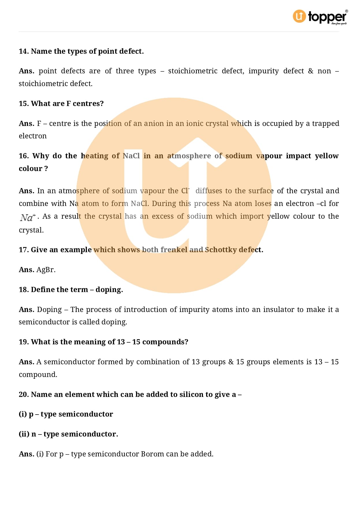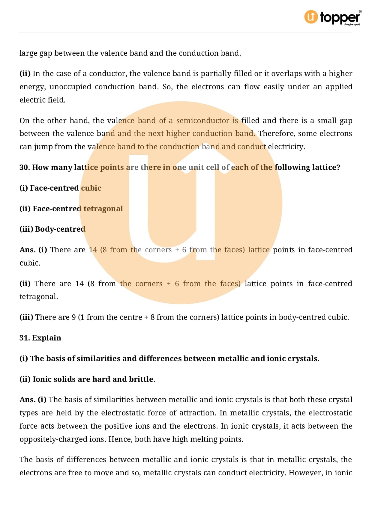 Class 12 Chemistry Important Question CBSE Chapter 1 – The Solid State