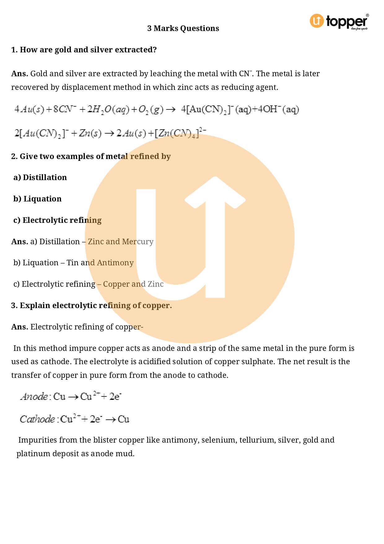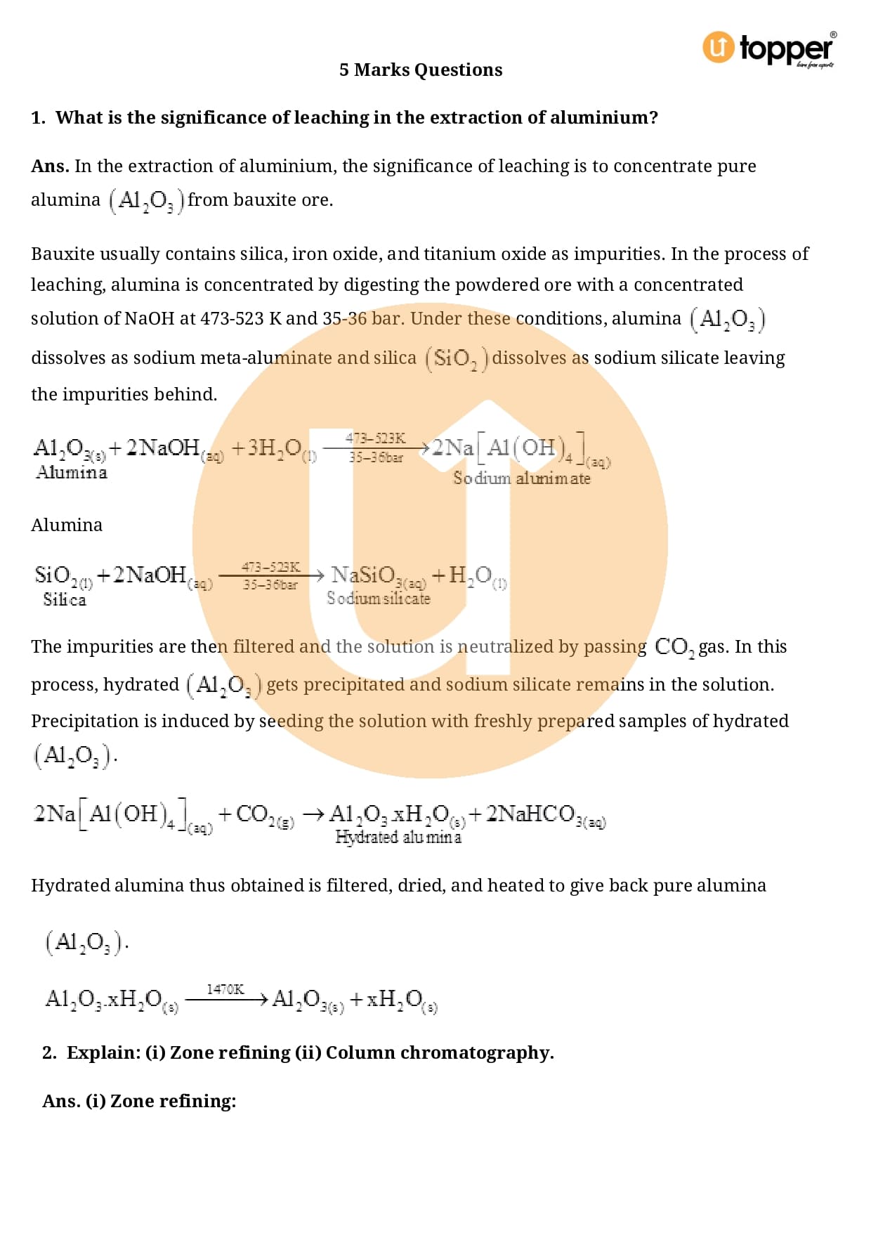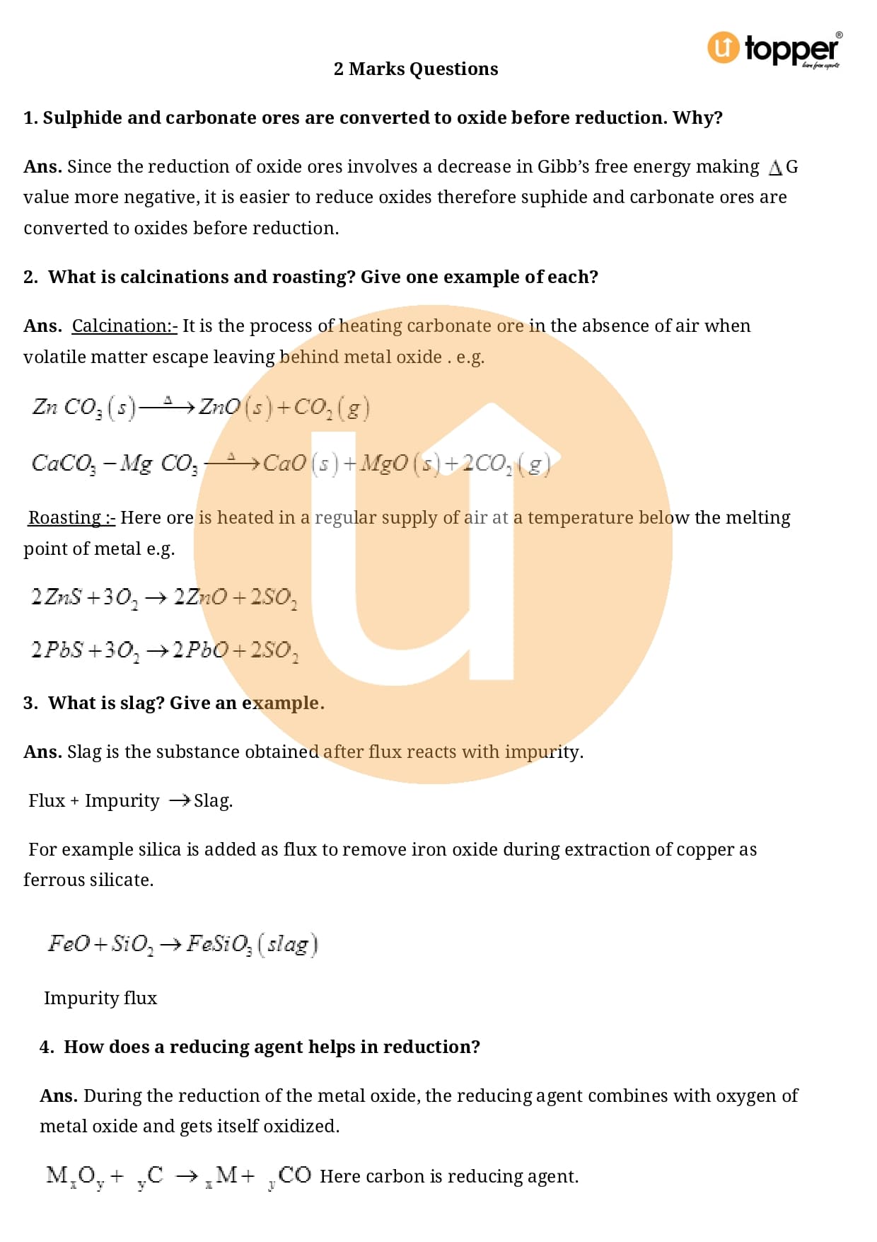 Class 12 Chemistry Important Question CBSE Chapter 6 – General Principles and Processes of Isolation of Elements