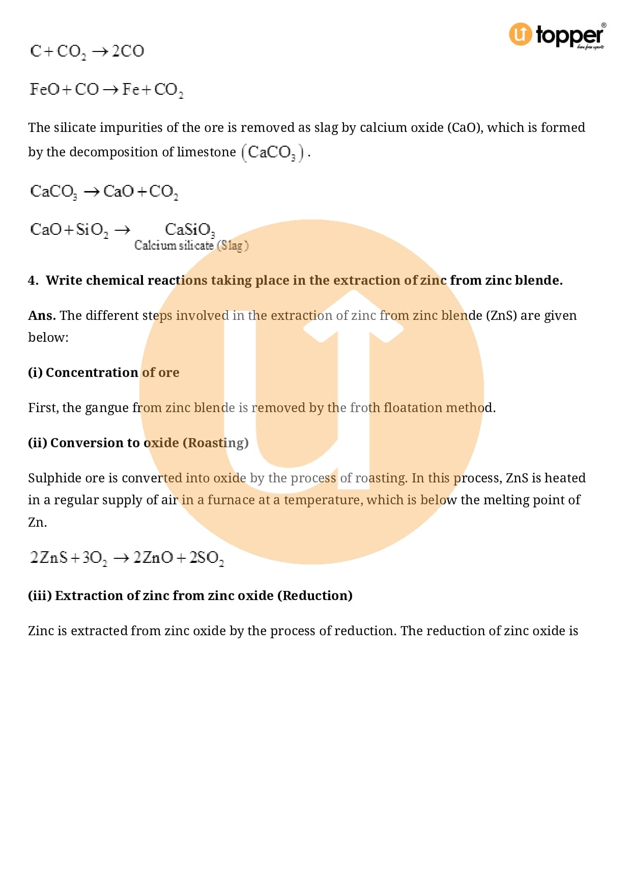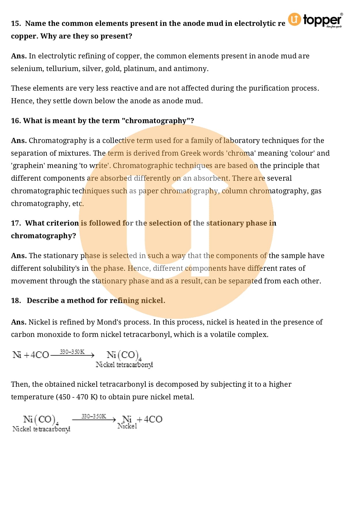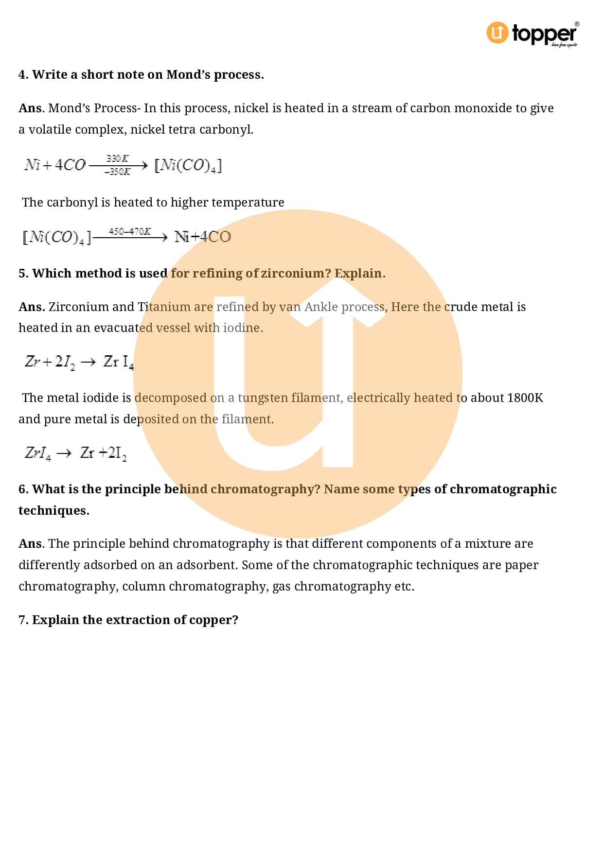 Class 12 Chemistry Important Question CBSE Chapter 6 – General Principles and Processes of Isolation of Elements