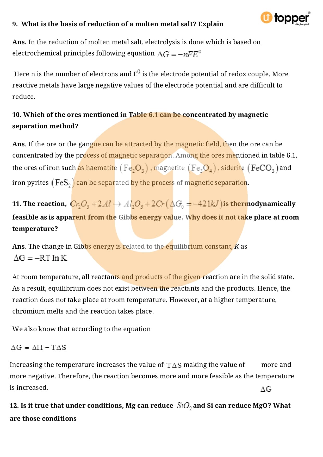 Chapter 6 – General Principles and Processes of Isolation of Elements