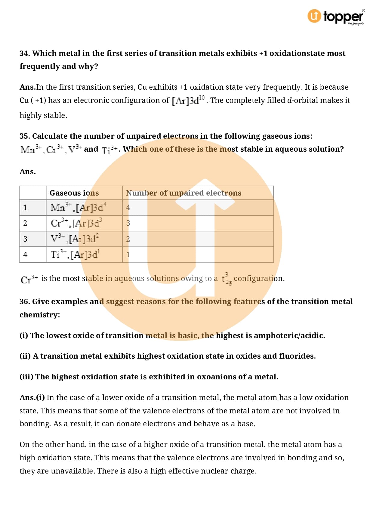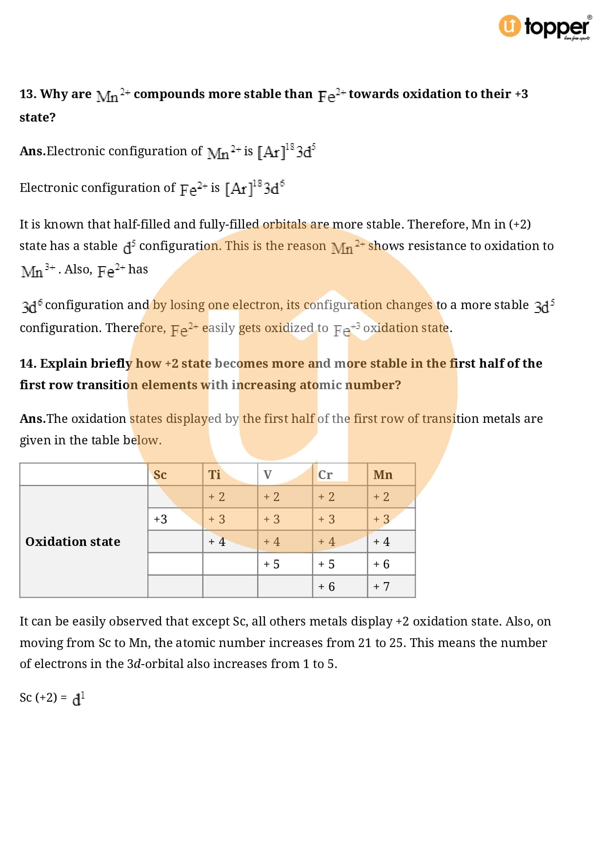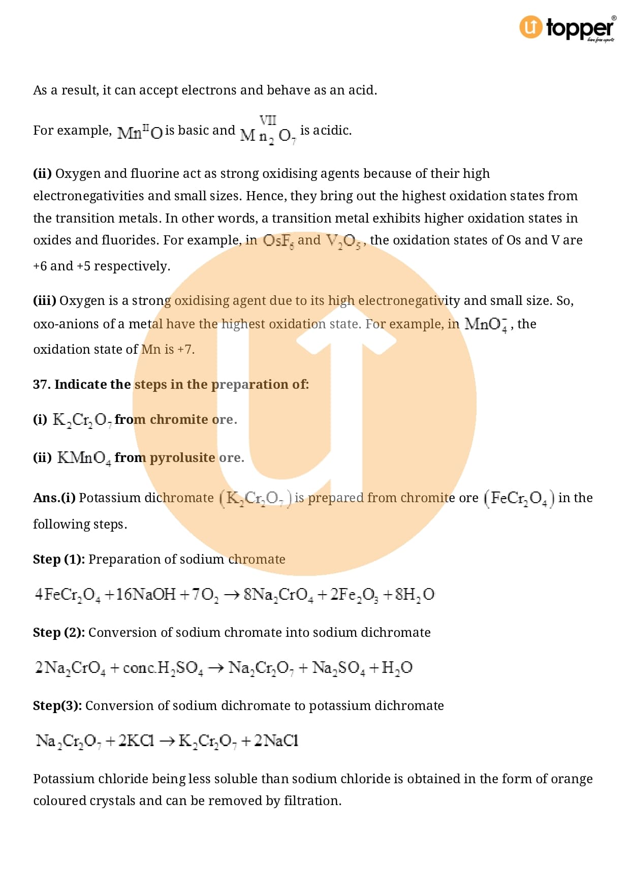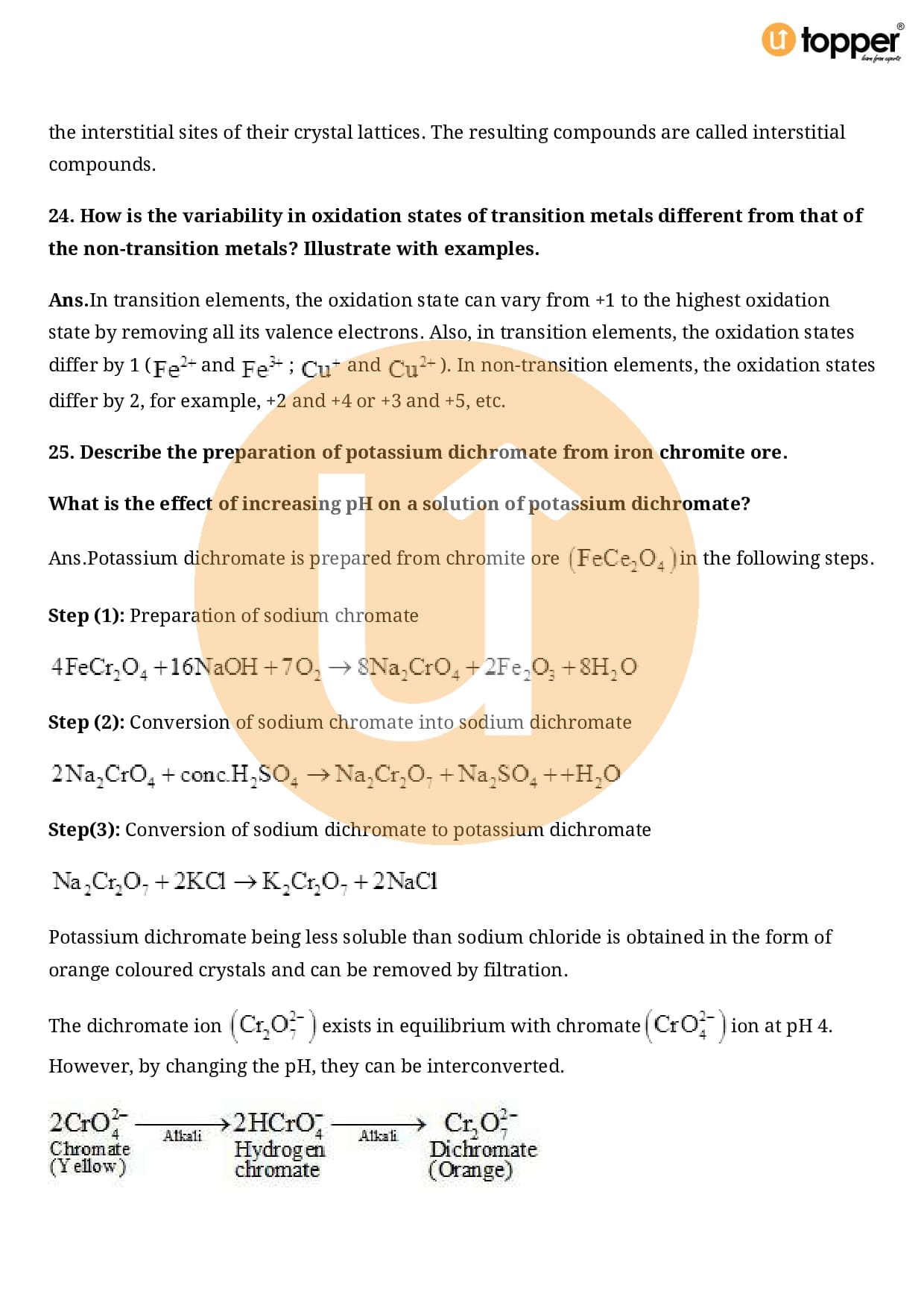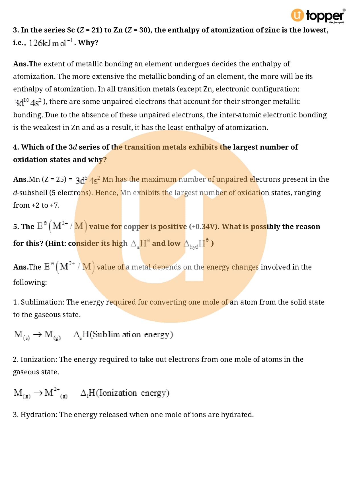 Class 12 Chemistry Important Question CBSE Chapter 8 – The d and f Block Elements